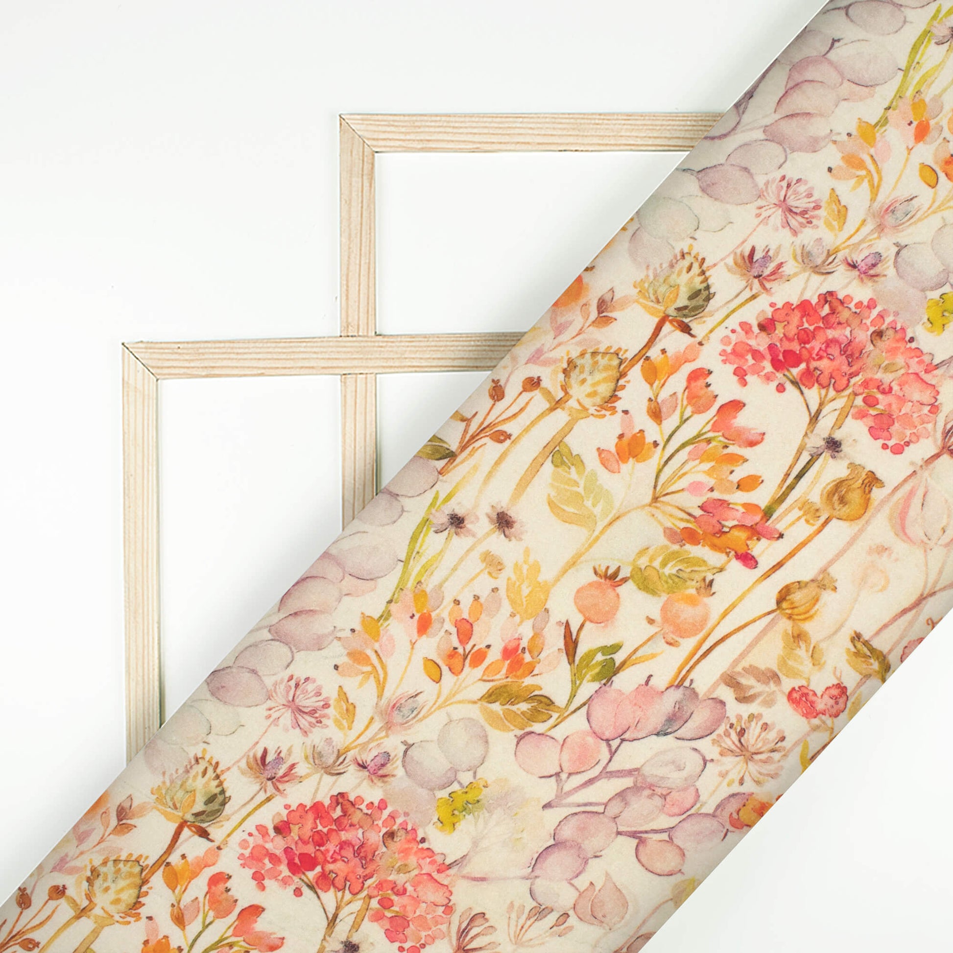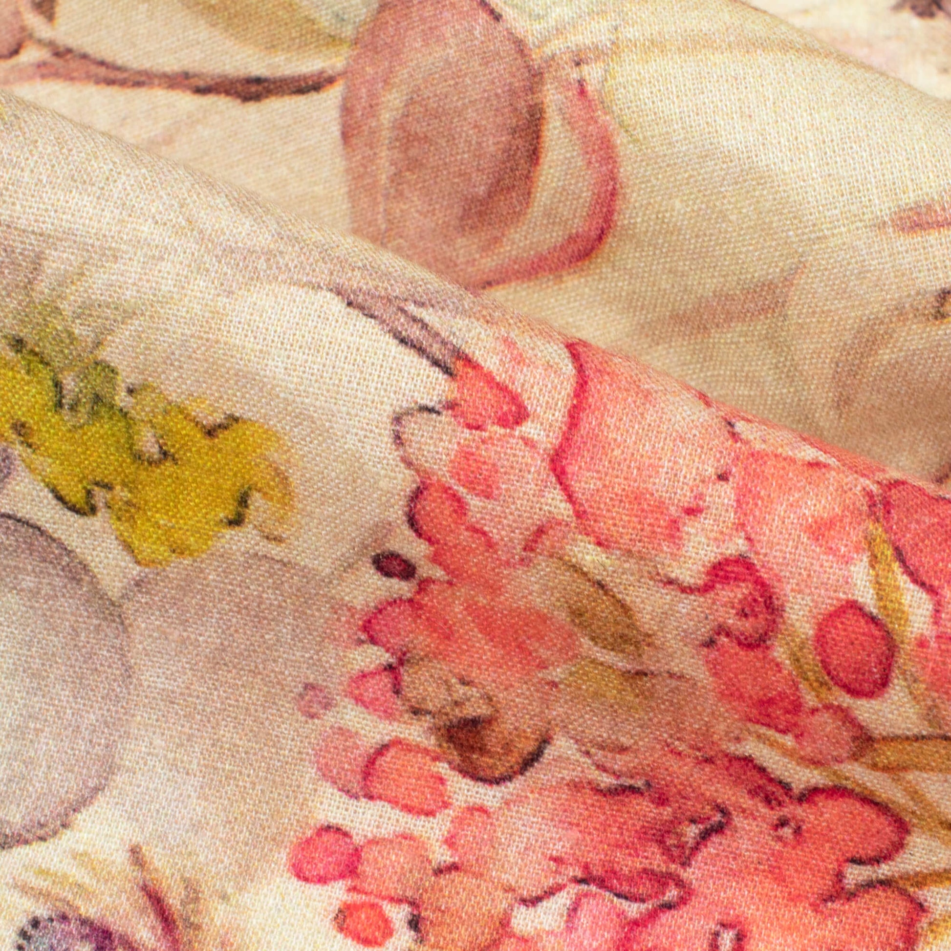 Banana Yellow And Orange Floral Digital Print Cotton Cambric Fabric