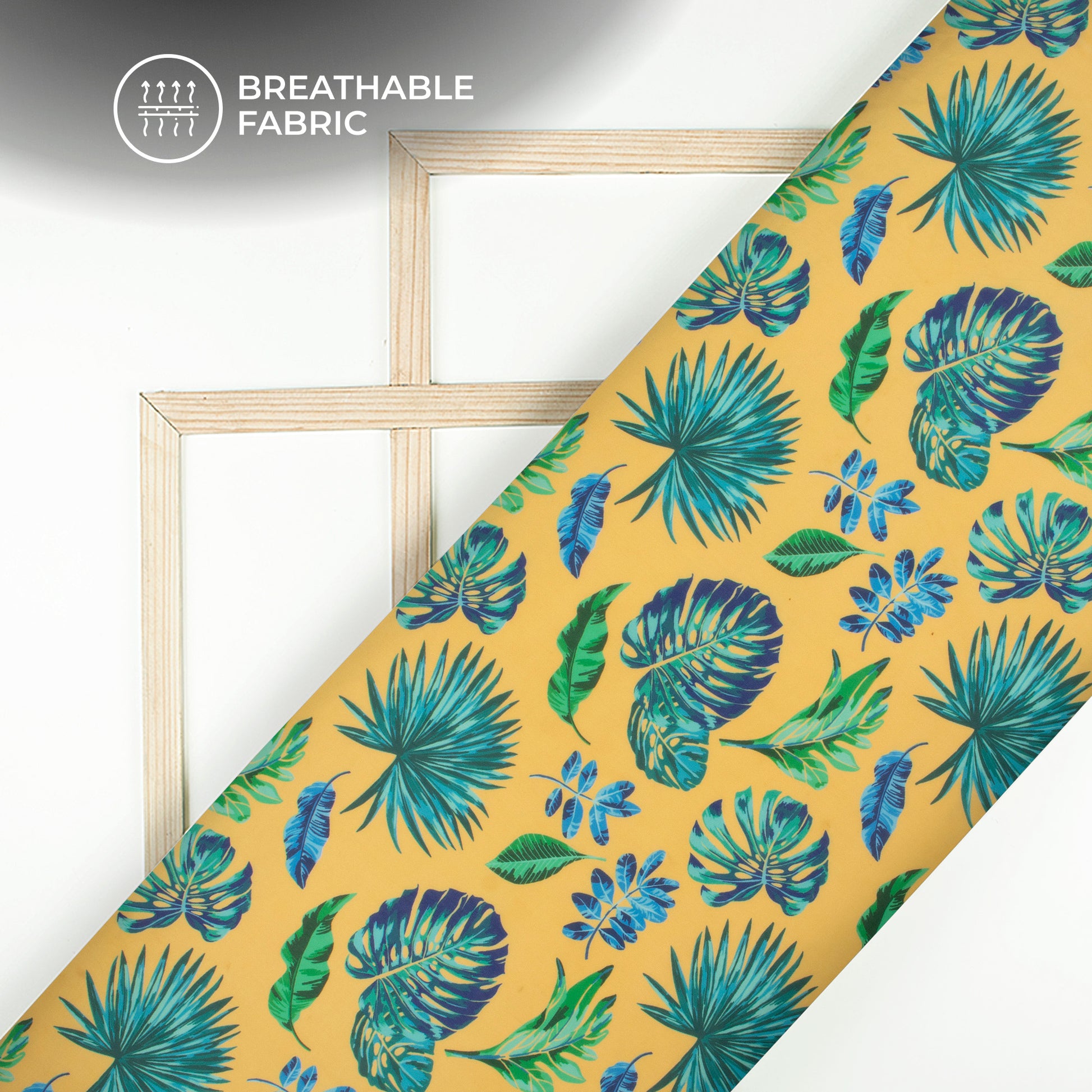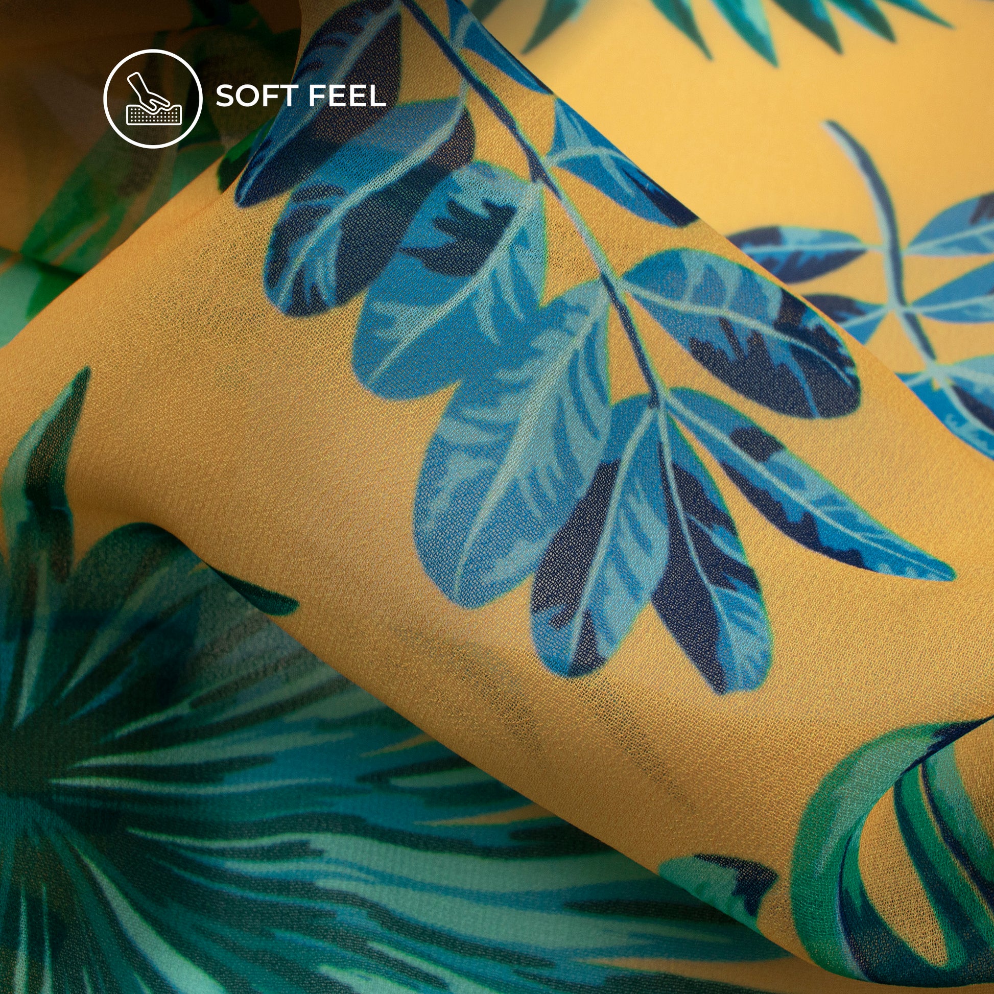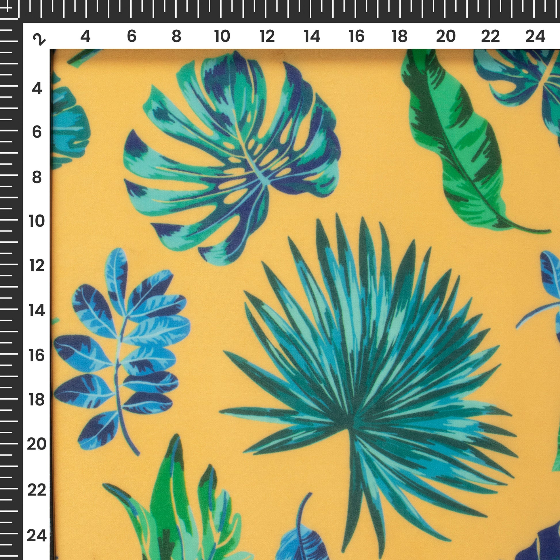 Banana Yellow Green Leaf Digital Print Georgette Fabric