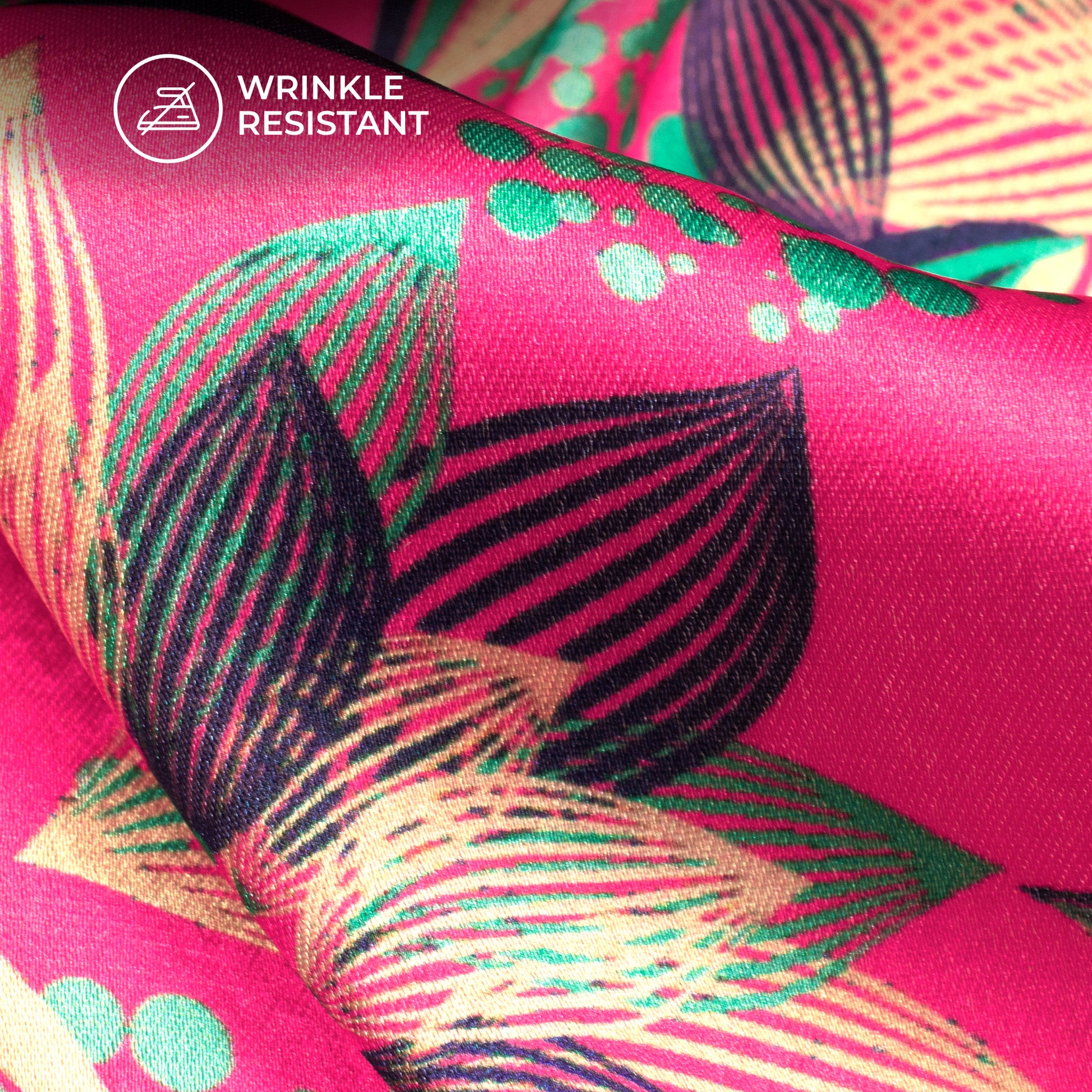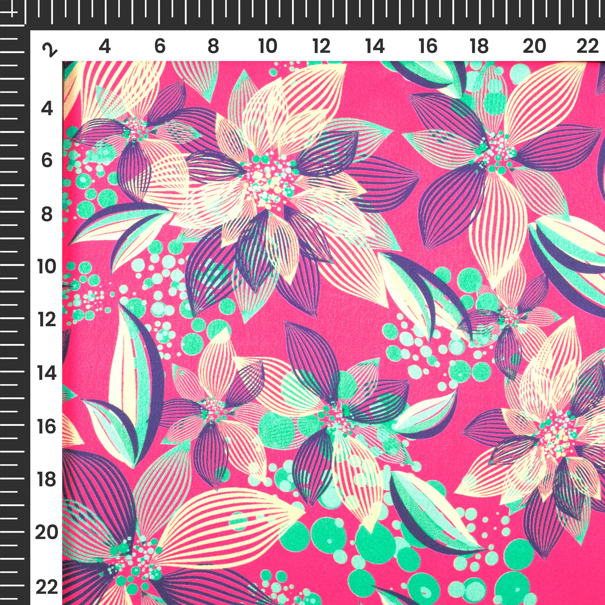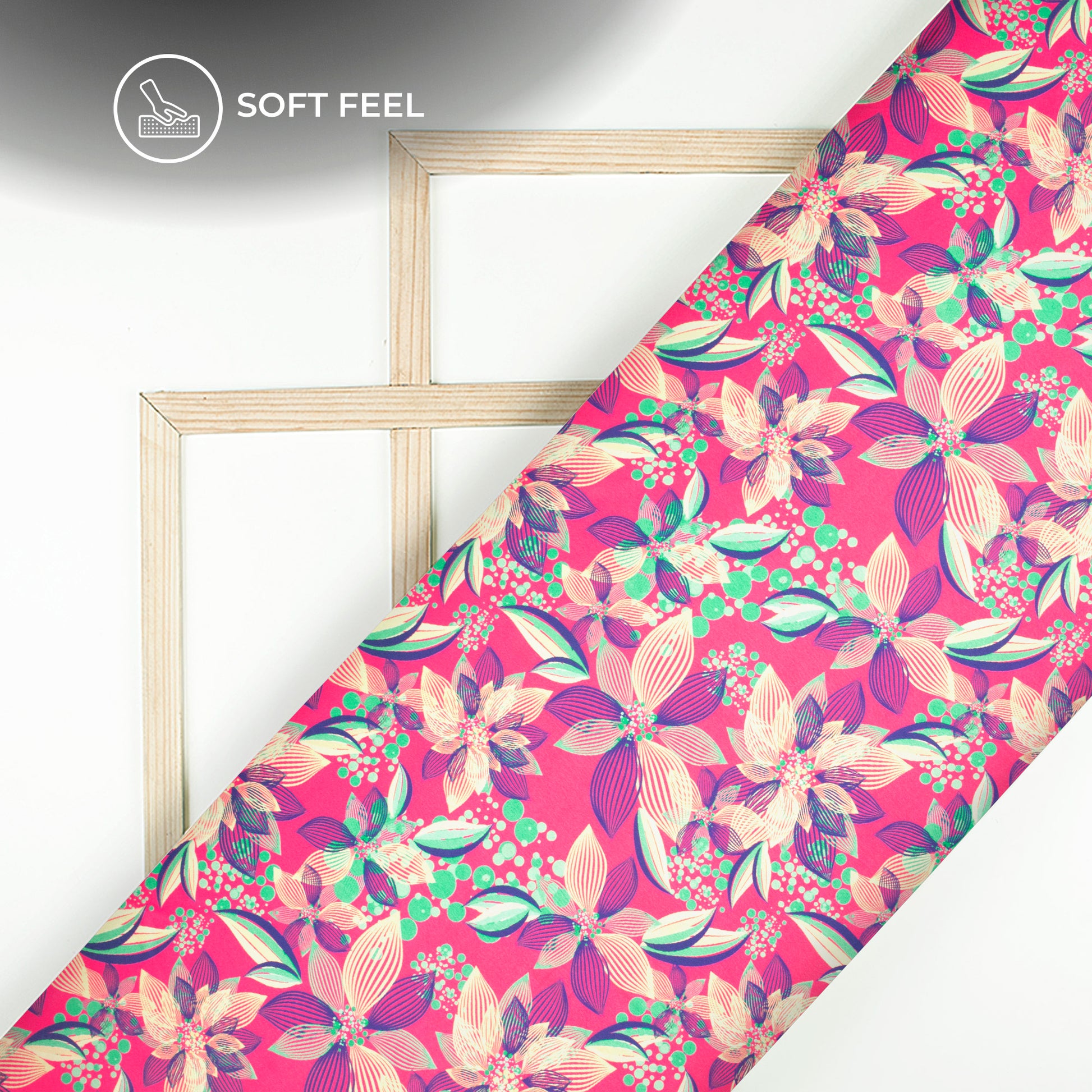 Barbie Pink Floral Digital Print Japan Satin Fabric
