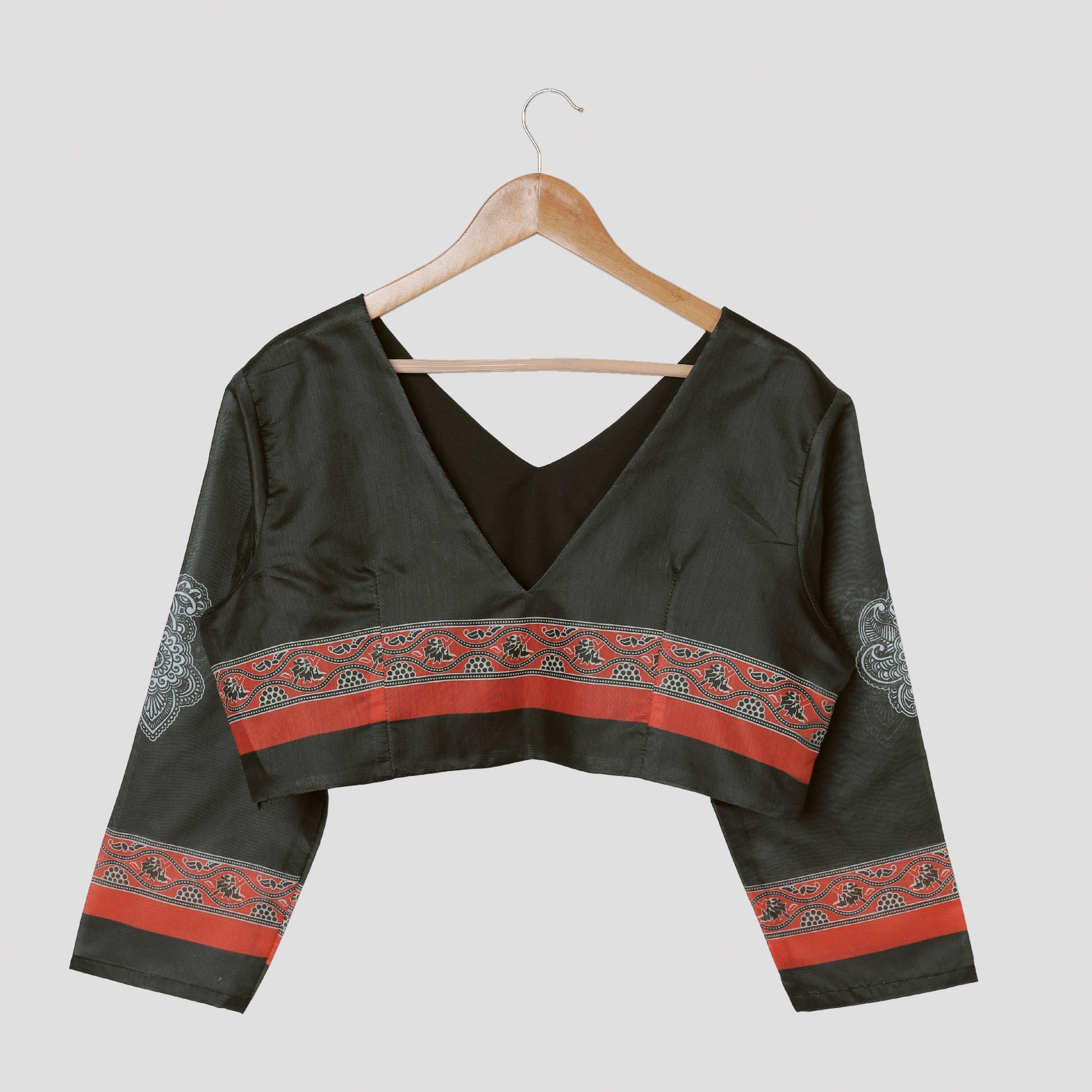 Beautiful Ajarakh Print Full Sleeve Chanderi Blouse