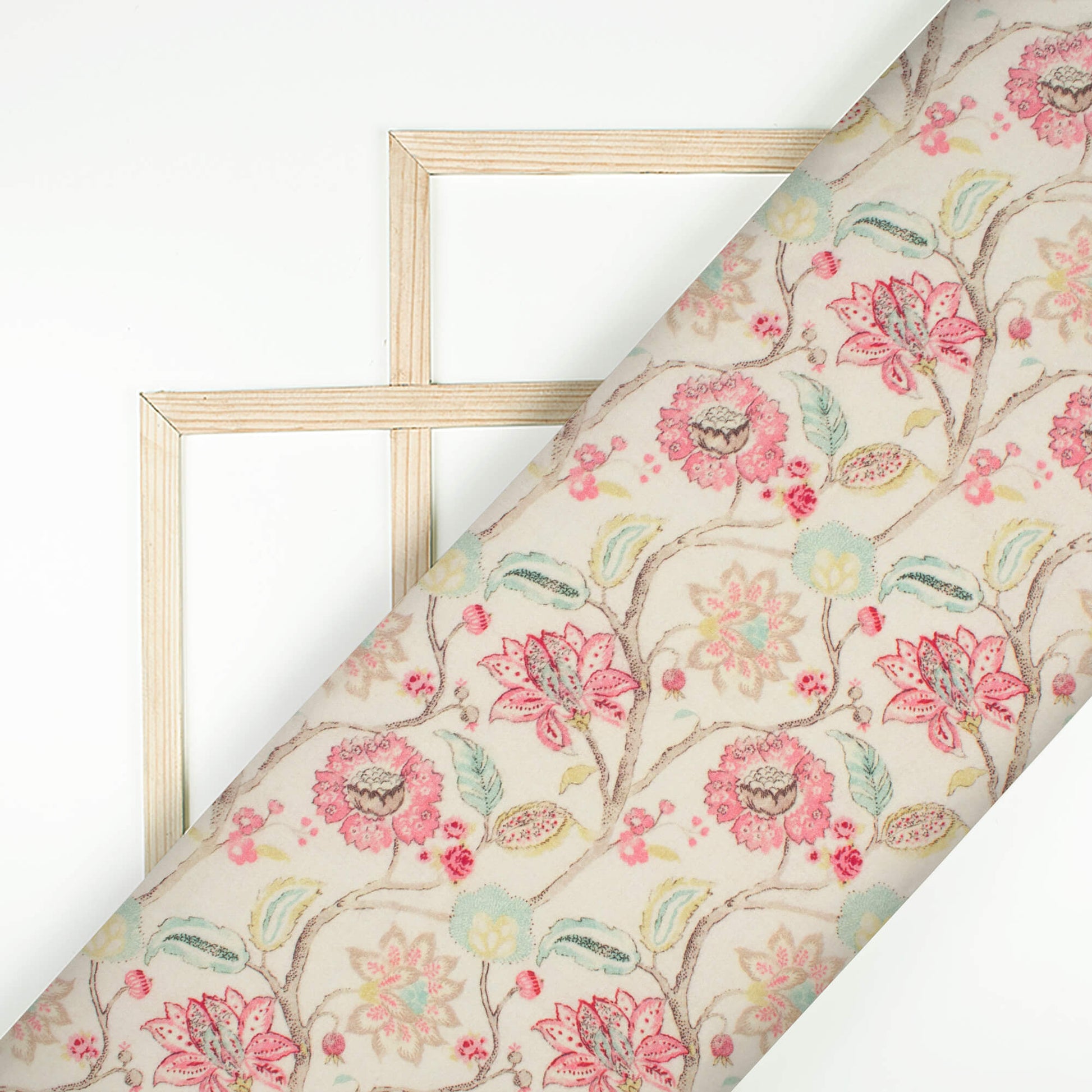 Beautiful Blush Pink Floral Digital Print Cotton Cambric Fabric
