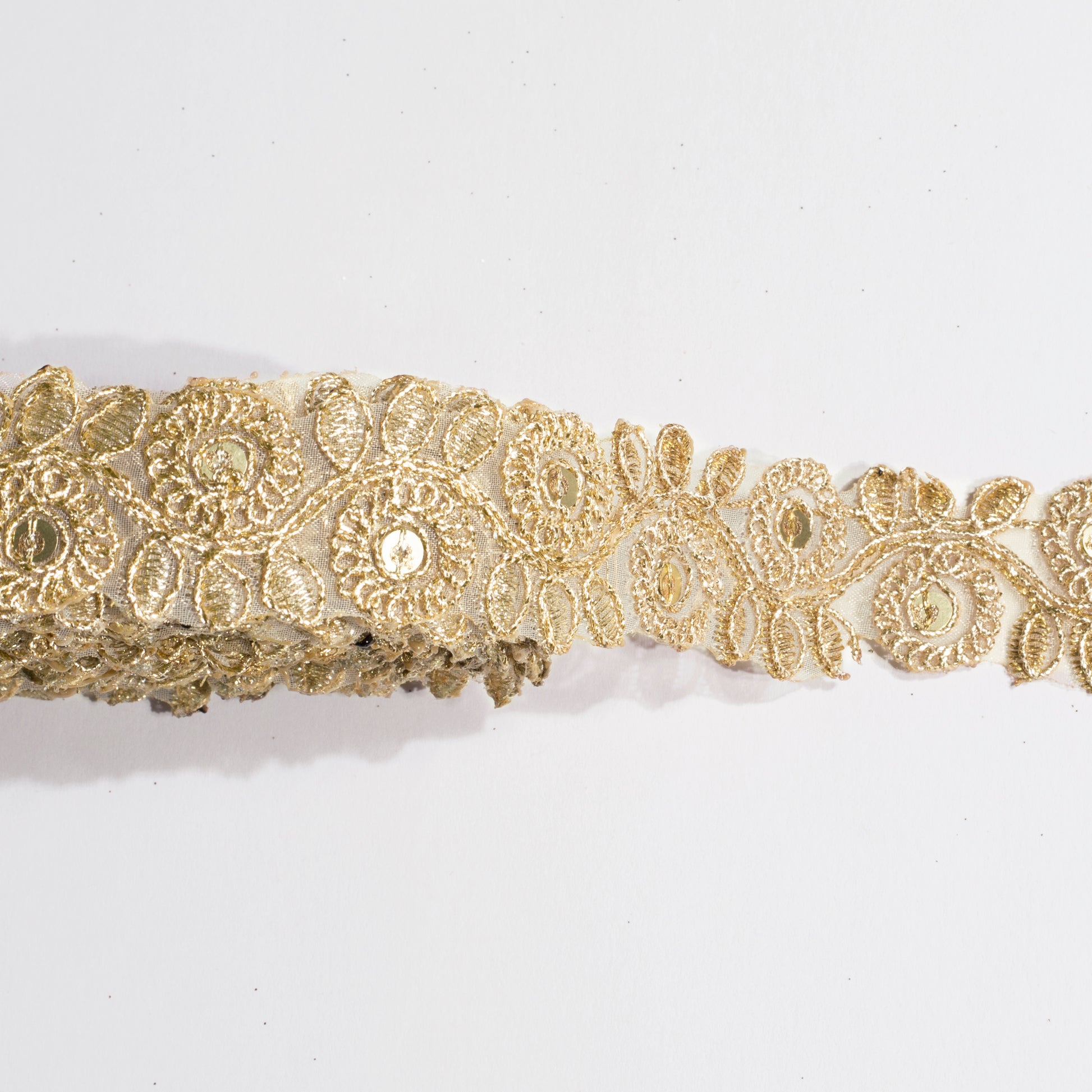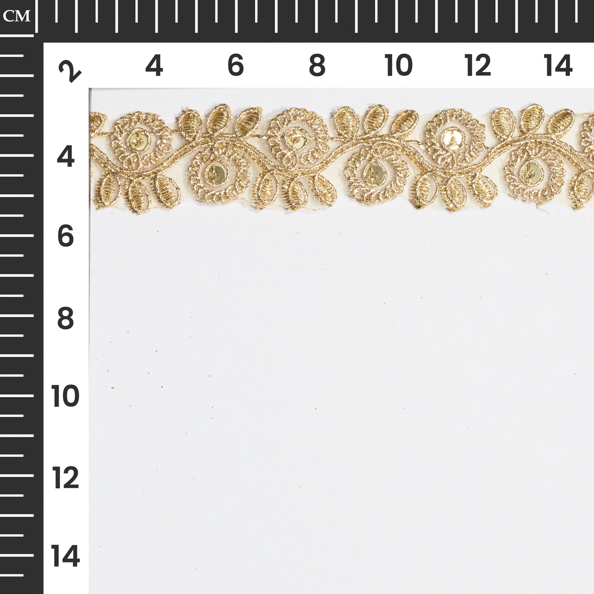 Beautiful Gold Floral Cutwork Zari Sequins Thread Work Net Lace (9 MTR)