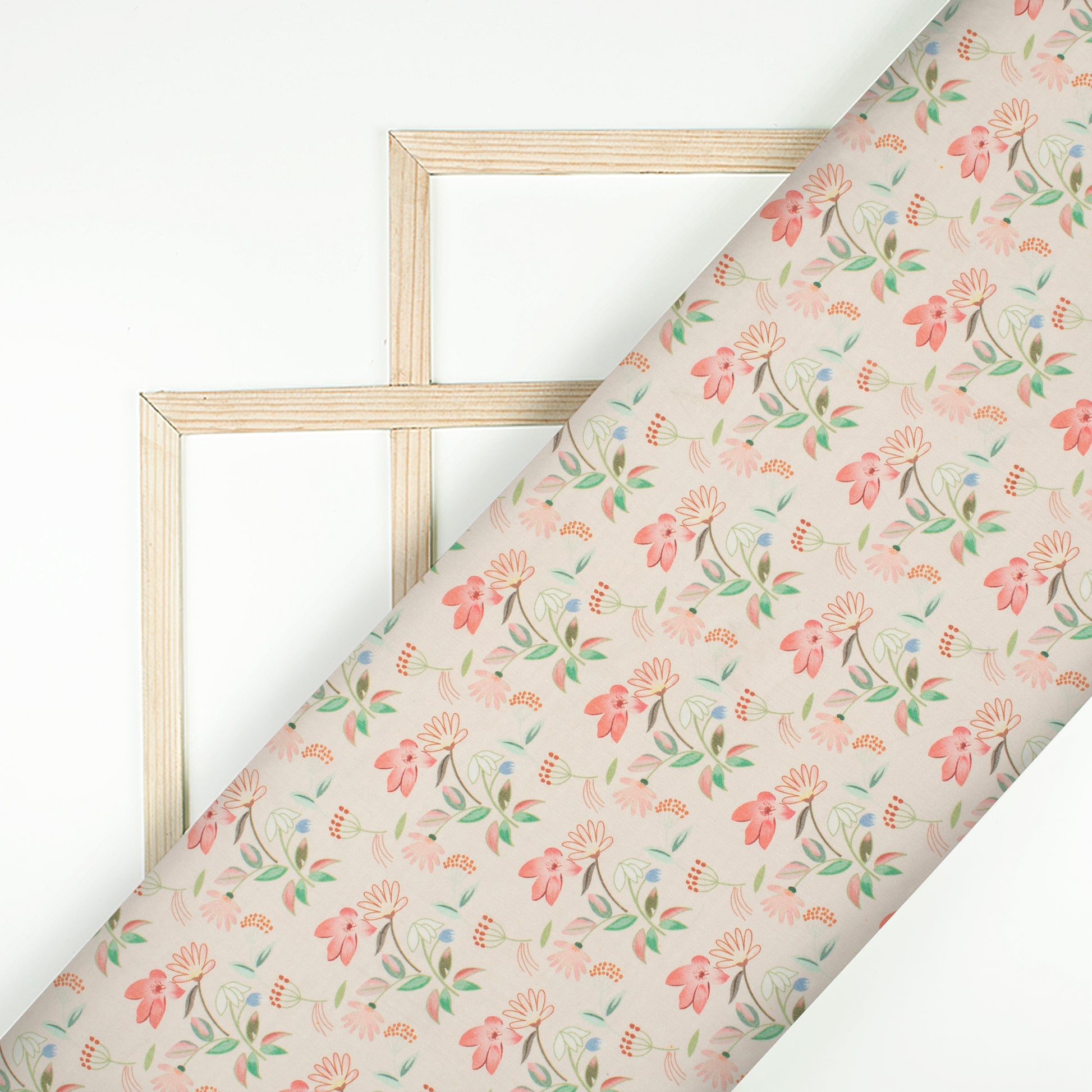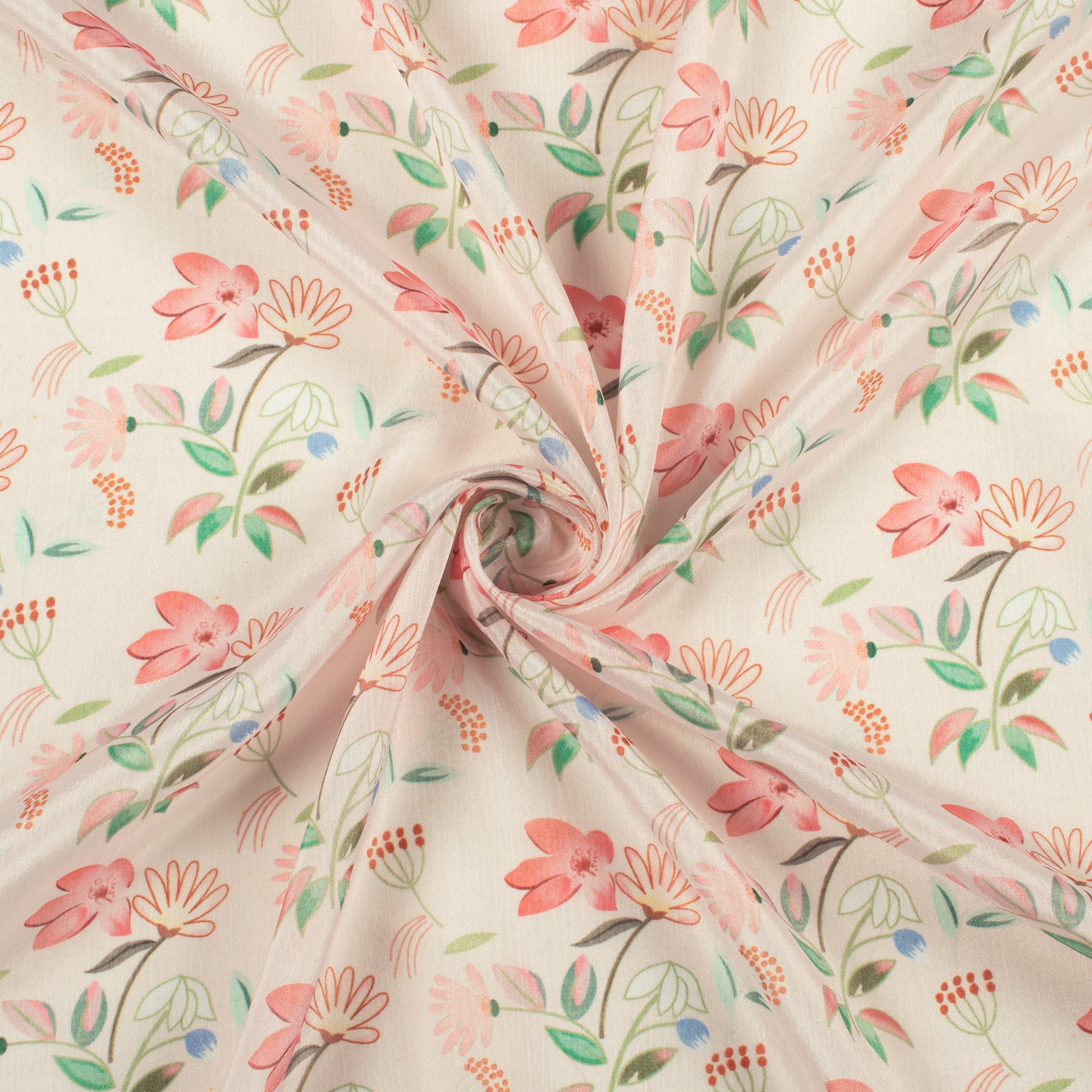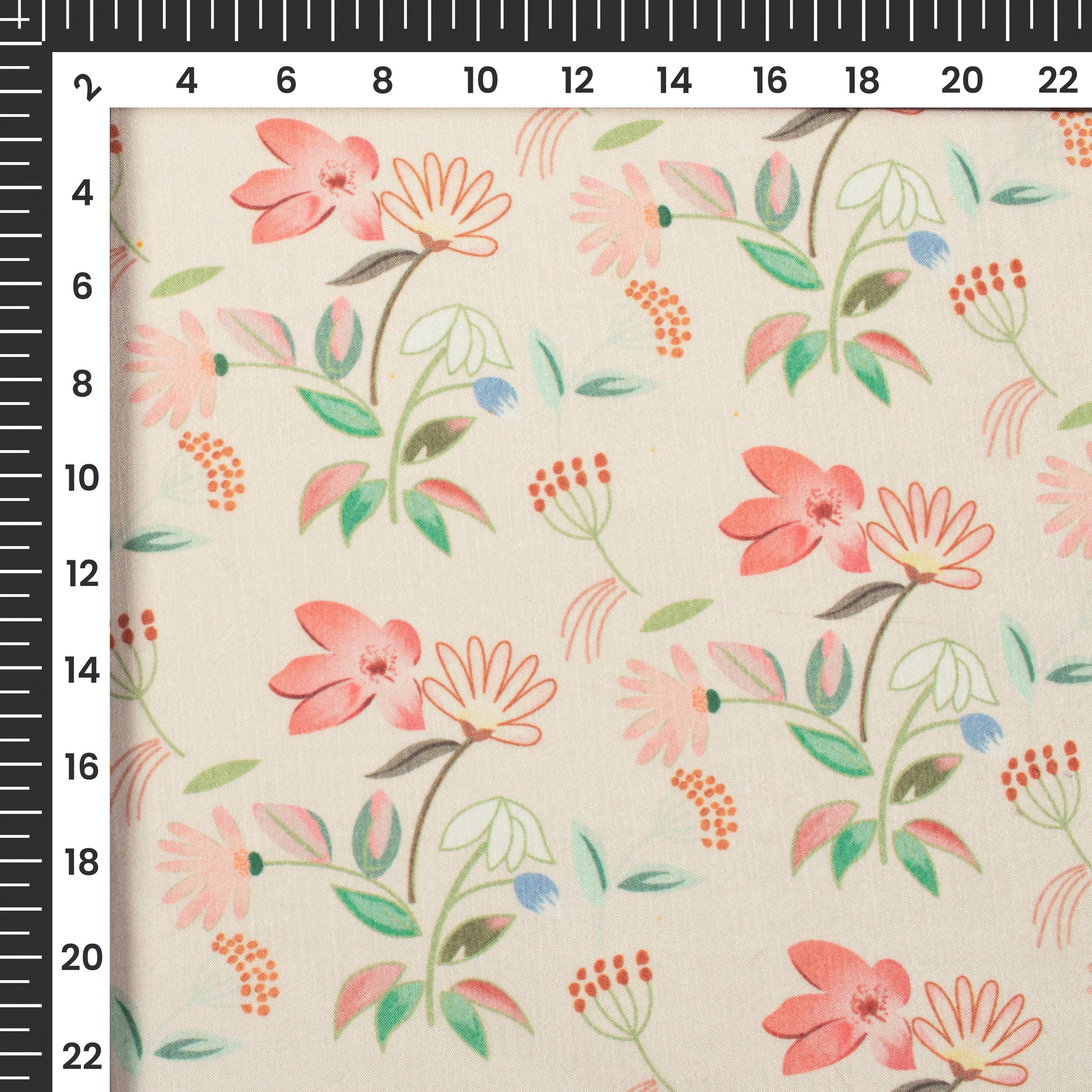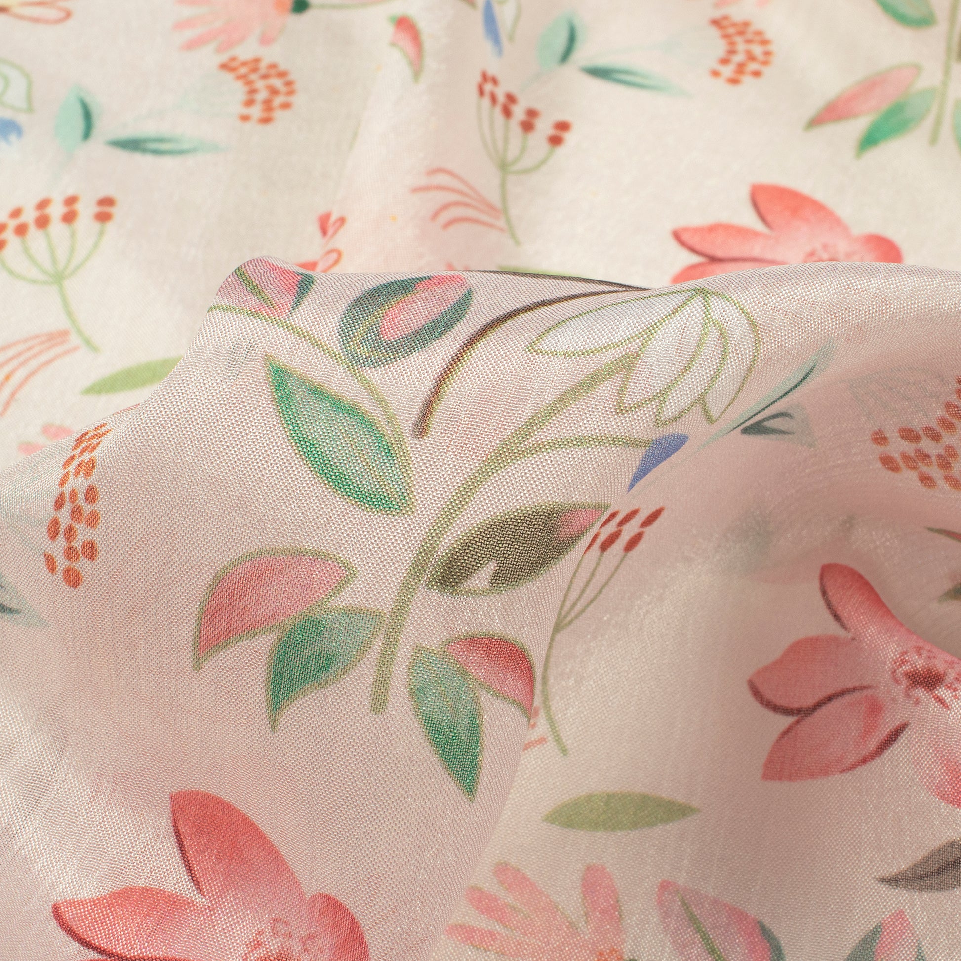 Beautiful Pink Floral Digital Print Poly Chinnon Chiffon Fabric