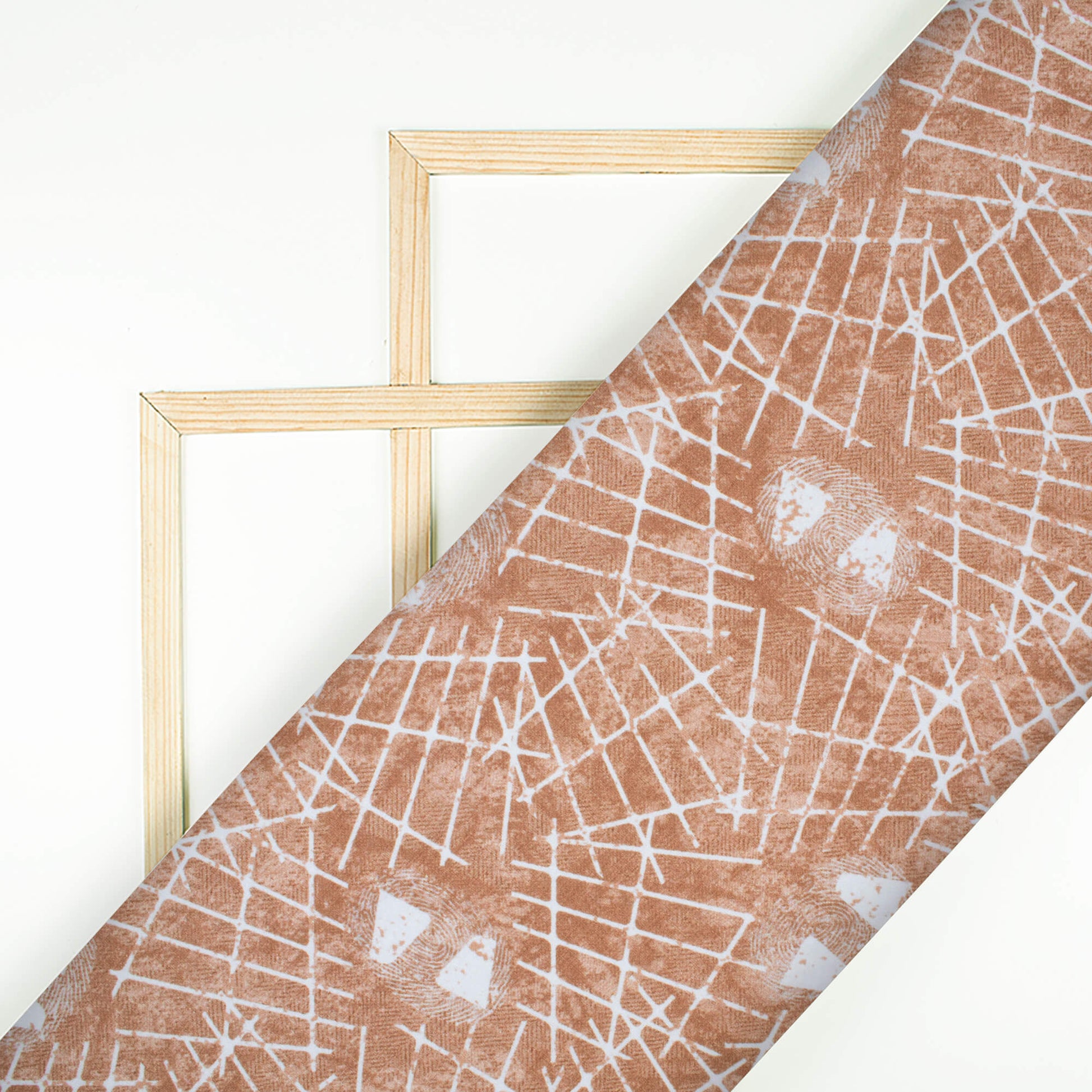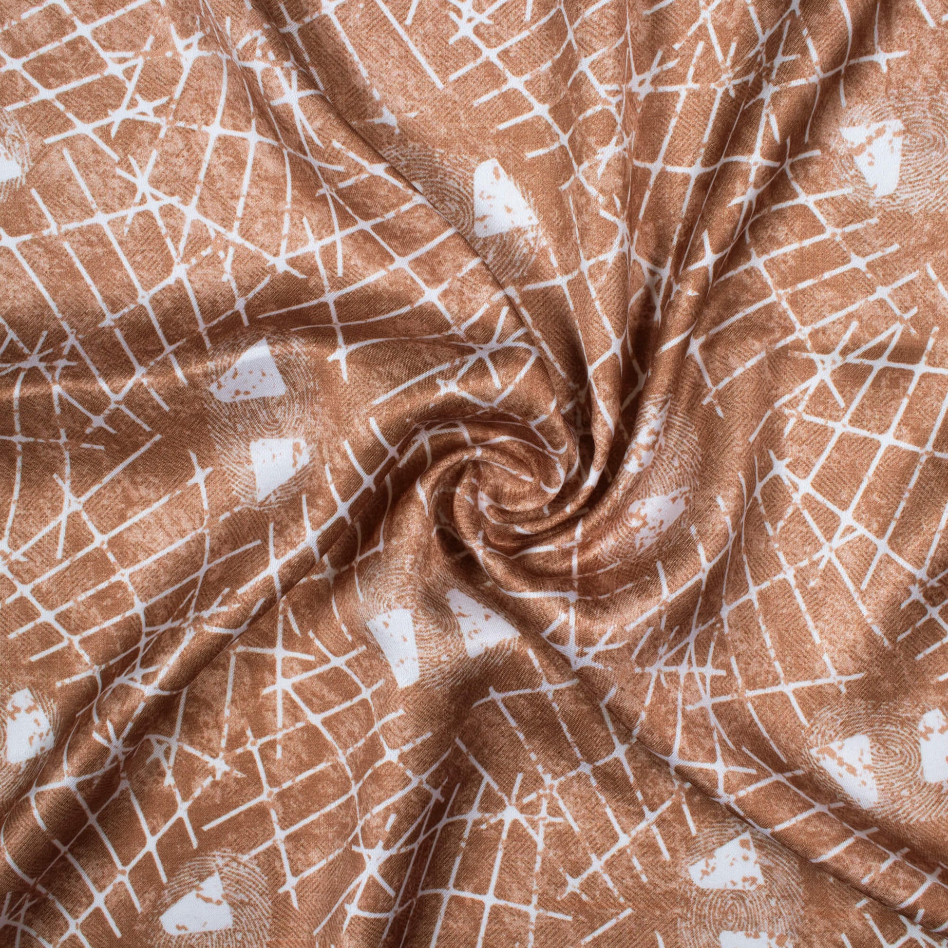 Beaver Brown And White Abstract Pattern Digital Print Crepe Silk Fabric