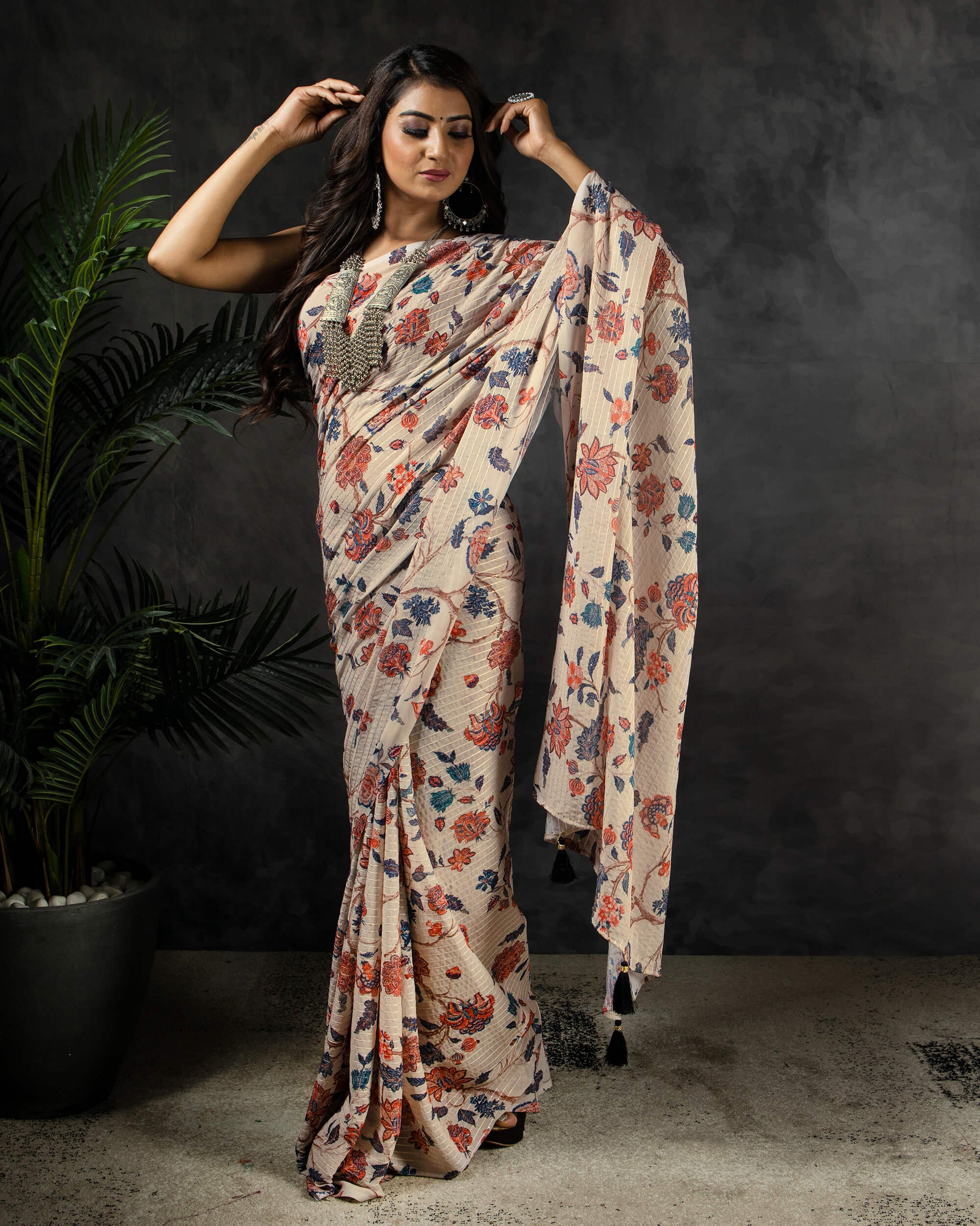 Fabcurate's saree collection will upgrade your dressing style. Highly rated fabrics such as Liquid Organza, Japan satin, Chinon Chiffon, Uppada Silk, Georgette, have been drawn into gorgeous sarees. Wear a class and be a trend maker, with these new sets of sarees. These fabrics are durable, have good drapability, soft when touching such as silk.