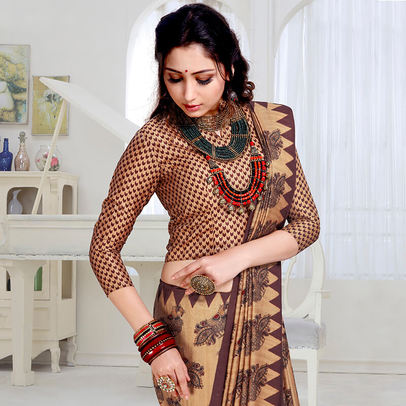 Fabcurate’s Saree collection has heritage roots with a contemporary flair. The famous Kalamkari pattern digital print on artificial Tussar Silk gives modern look to the sarees lovers. The fabric is lightweight and silky in nature, which will be easy to wear in any season. Fill your wardrobe with this exclusive saree and flaunt it on any occasion.