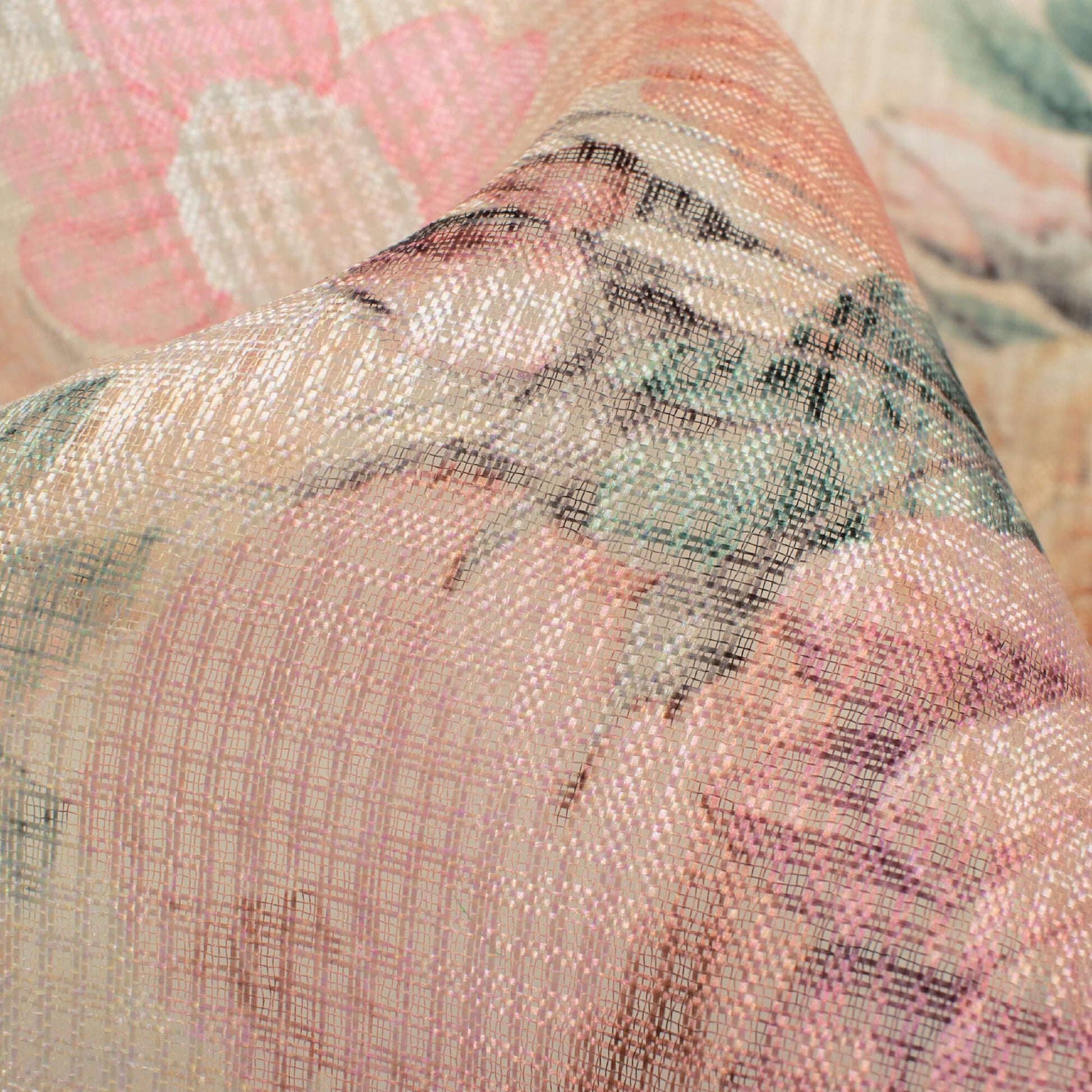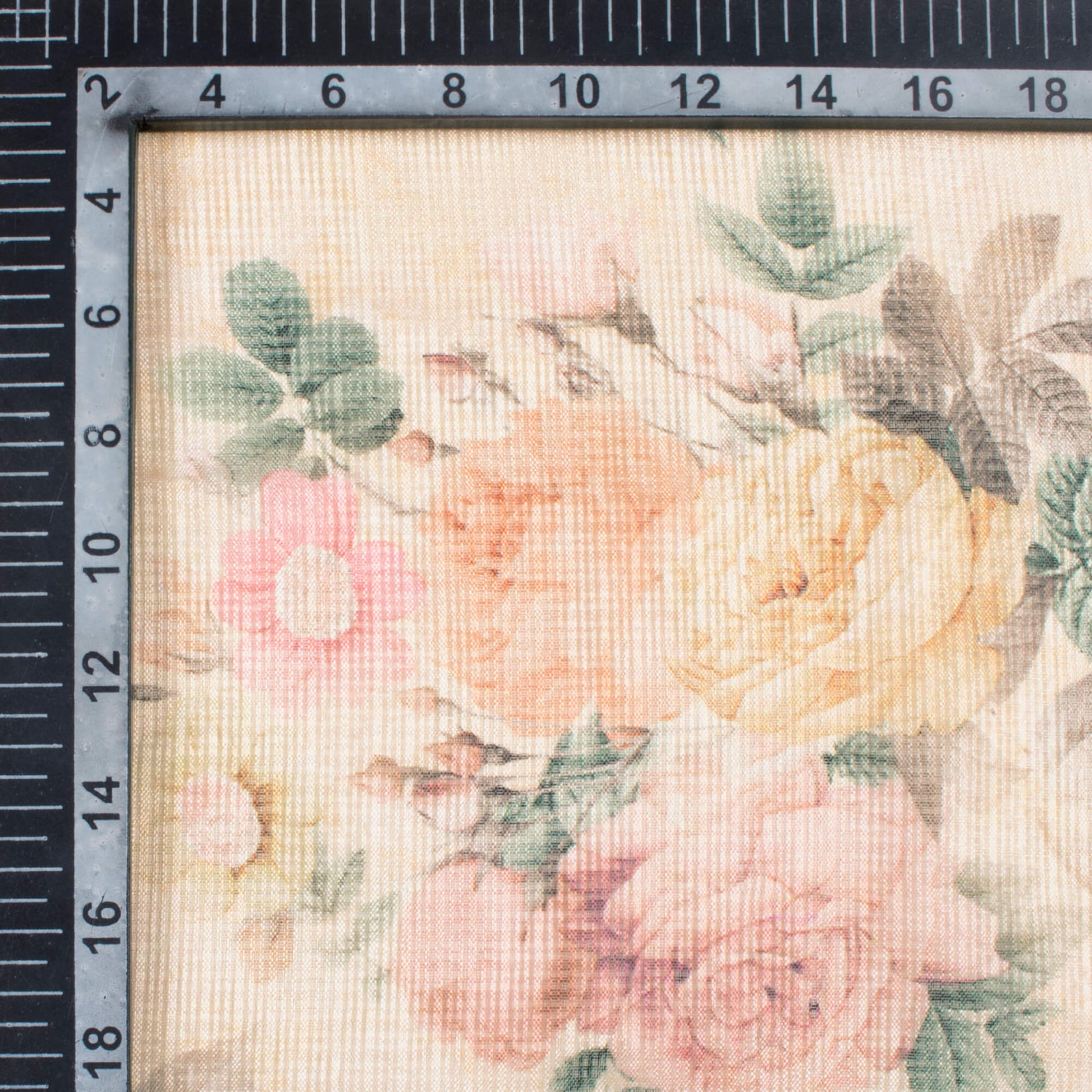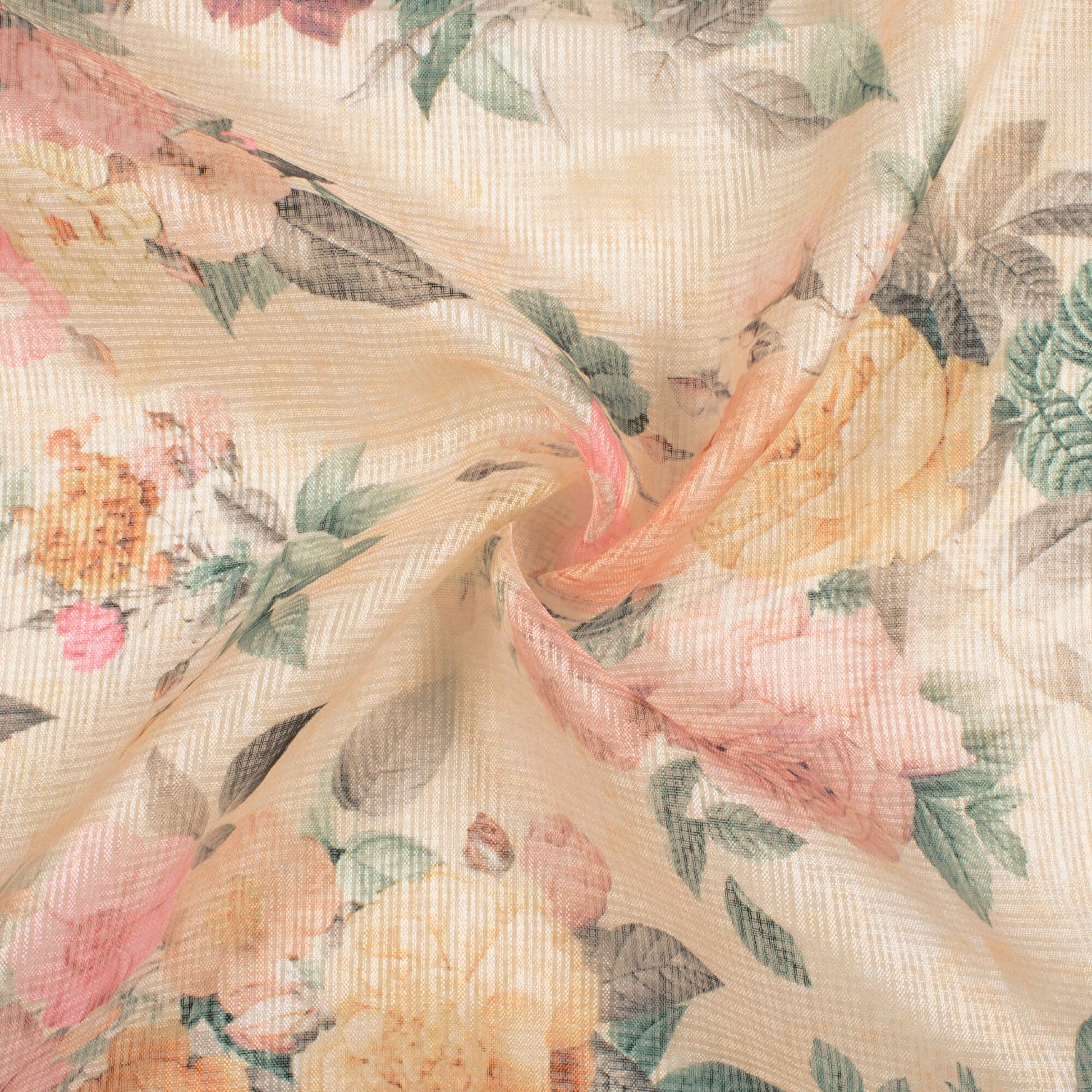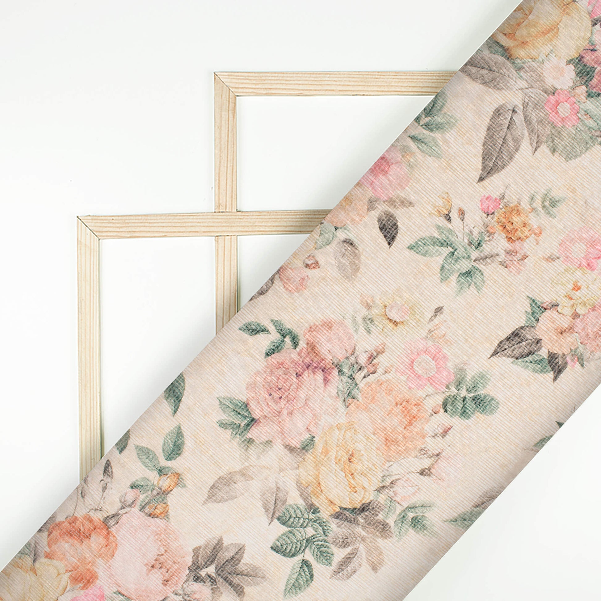 Beige And Dusty Brown Floral Pattern Digital Print Kota Doria Fabric
