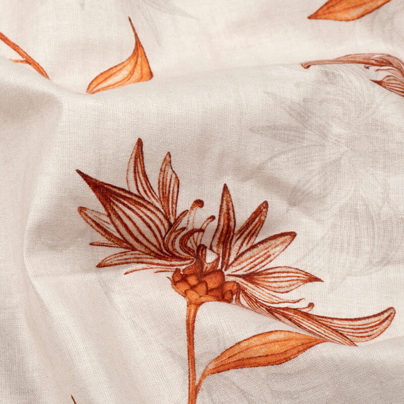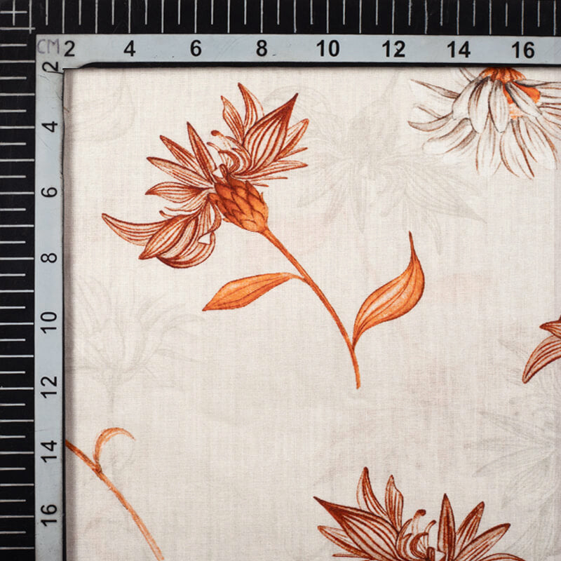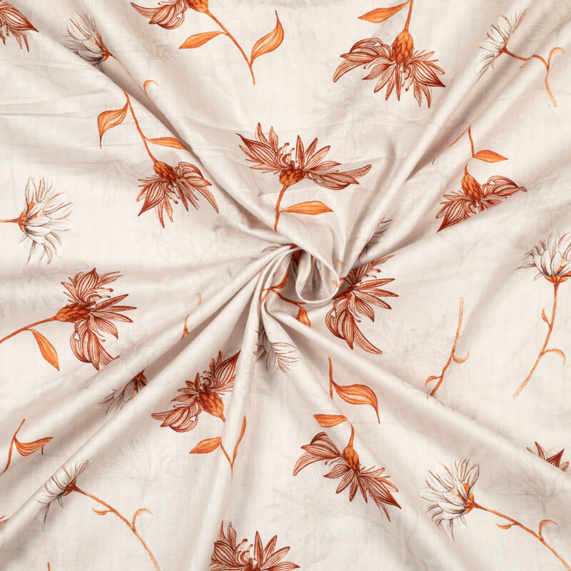 Beige And Orange Floral Pattern Digital Print Cotton Cambric Fabric