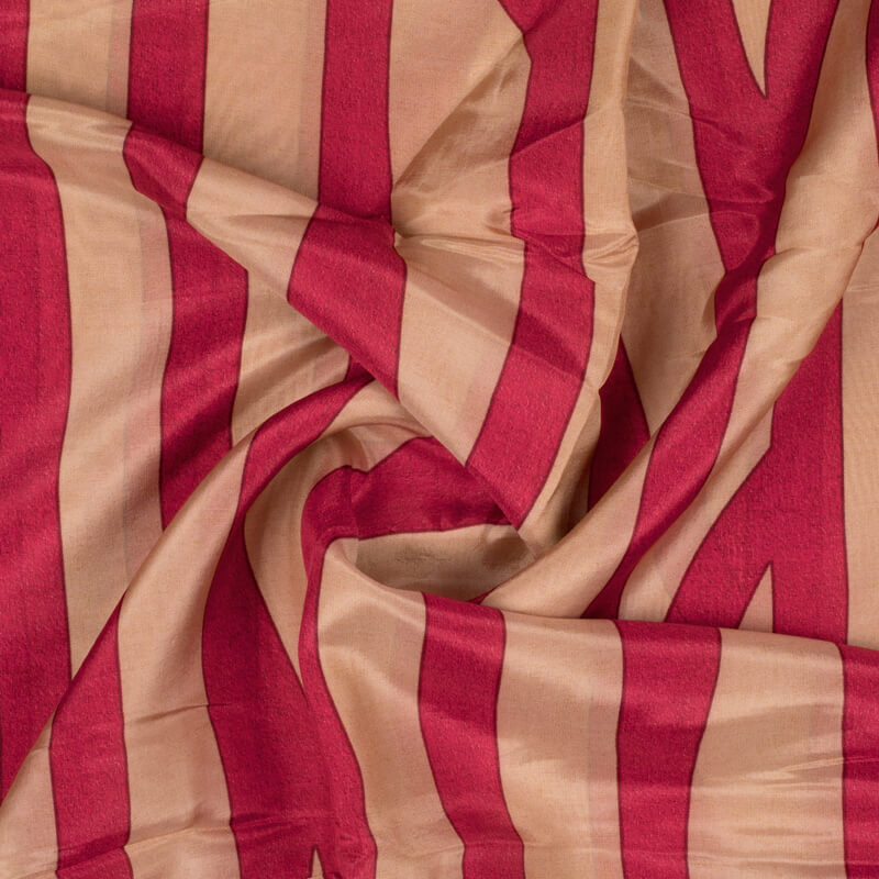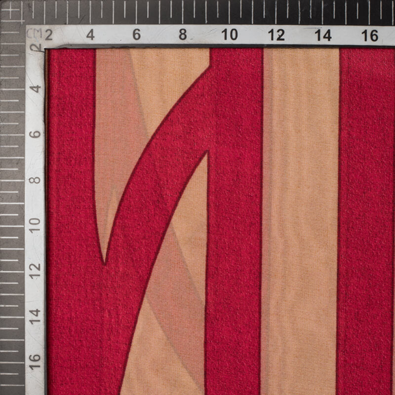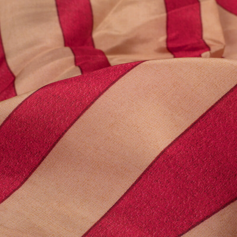 Beige And Red Stripes Pattern Digital Print Viscose Uppada Silk Fabric