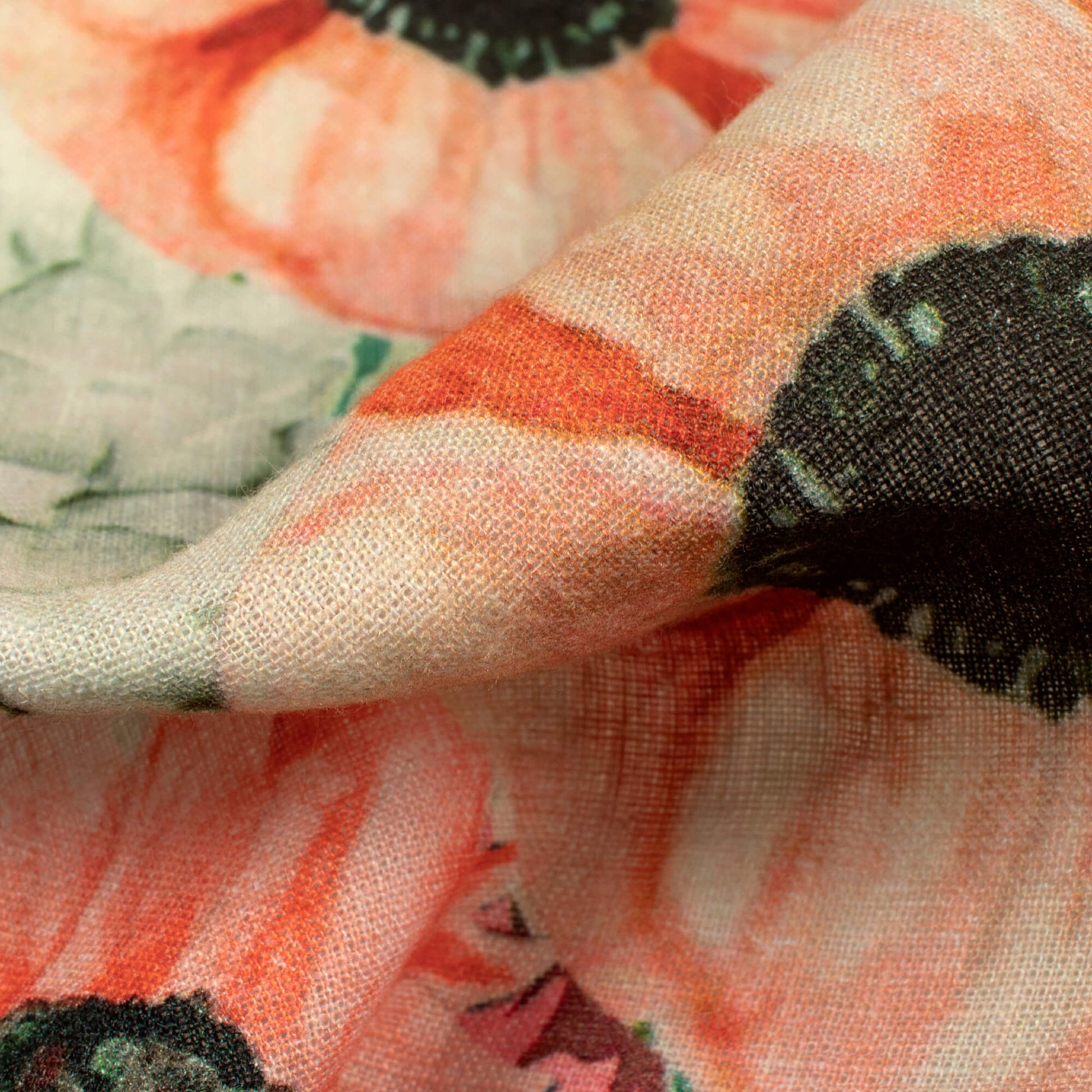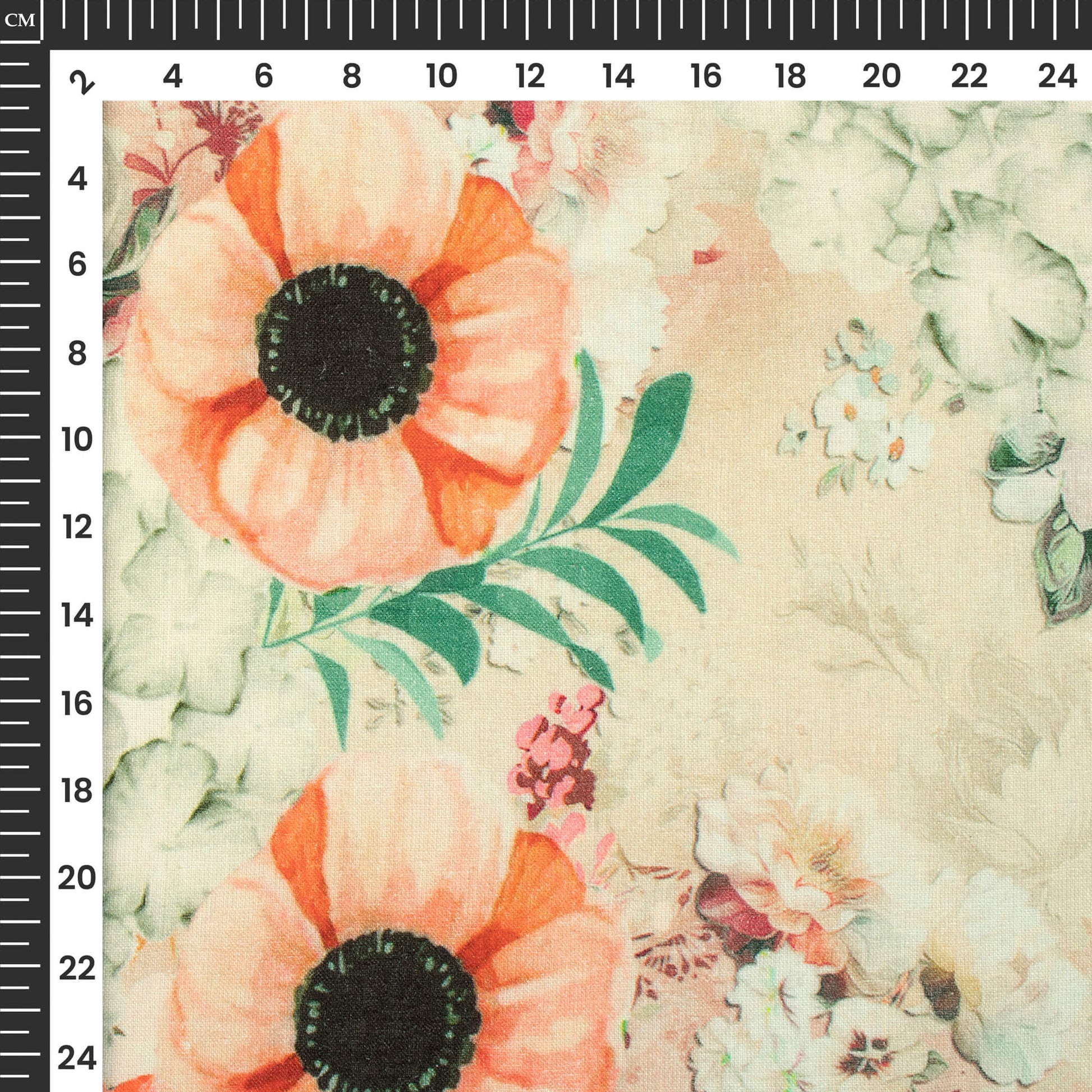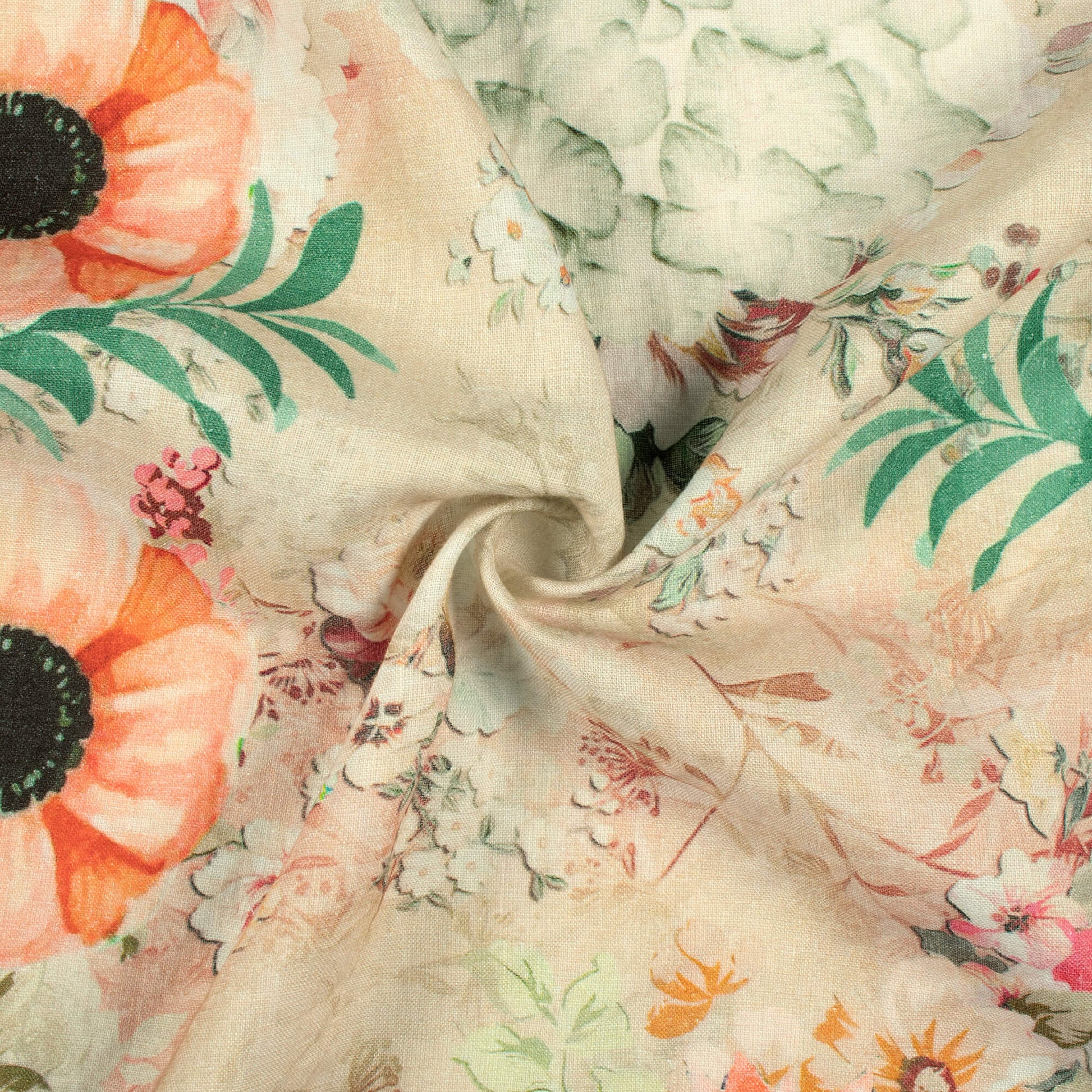 Beige Floral Digital Print Premium Swiss Linen Fabric