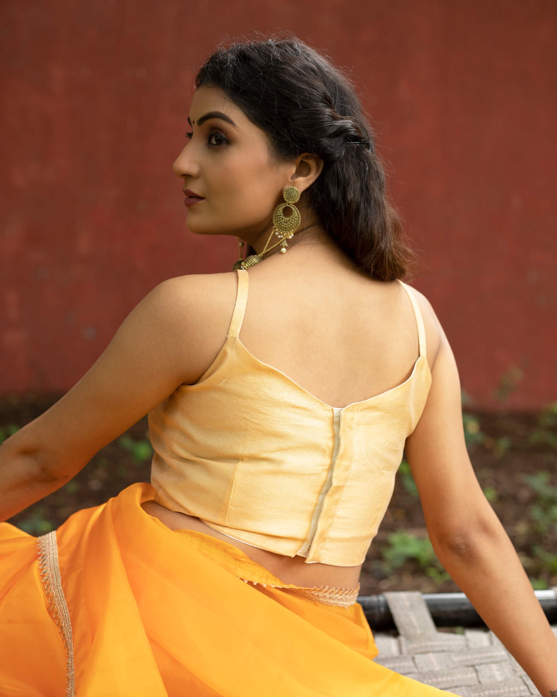Fabcurate’s blouse collection is perfect for you to have a great vibe day. This plain blouse features a V-neckline, is sleevless with a back hook closure that looks flourishing. Match it with the sarees and make a statement with your style.
