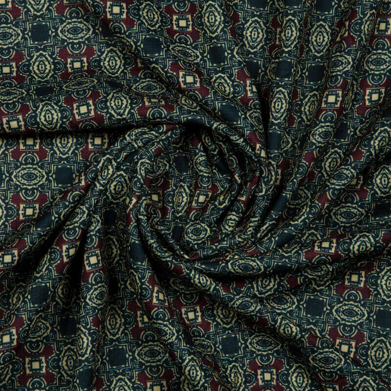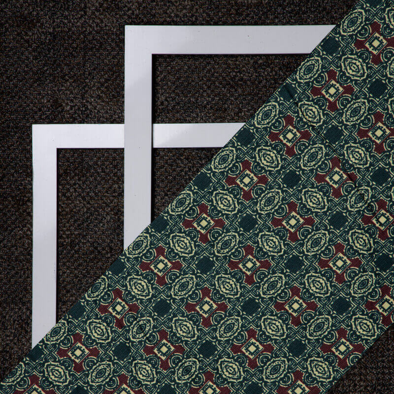 Bottle Green Traditional Pattern Digital Print Jute Fabric