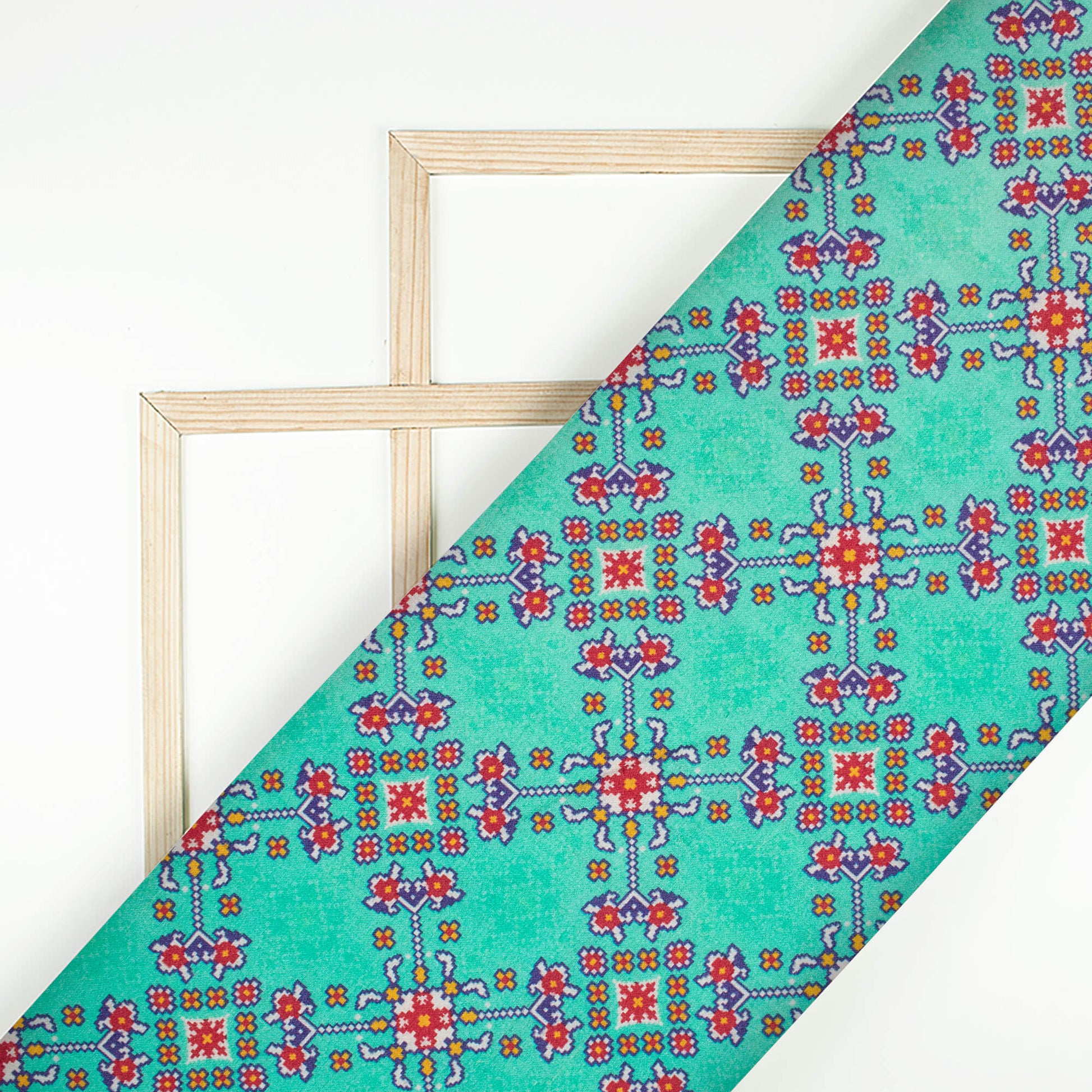 Turquoise And Sangria Red Patolaa Pattern Digital Print Viscose Rayon Fabric (Width 58 Inches)