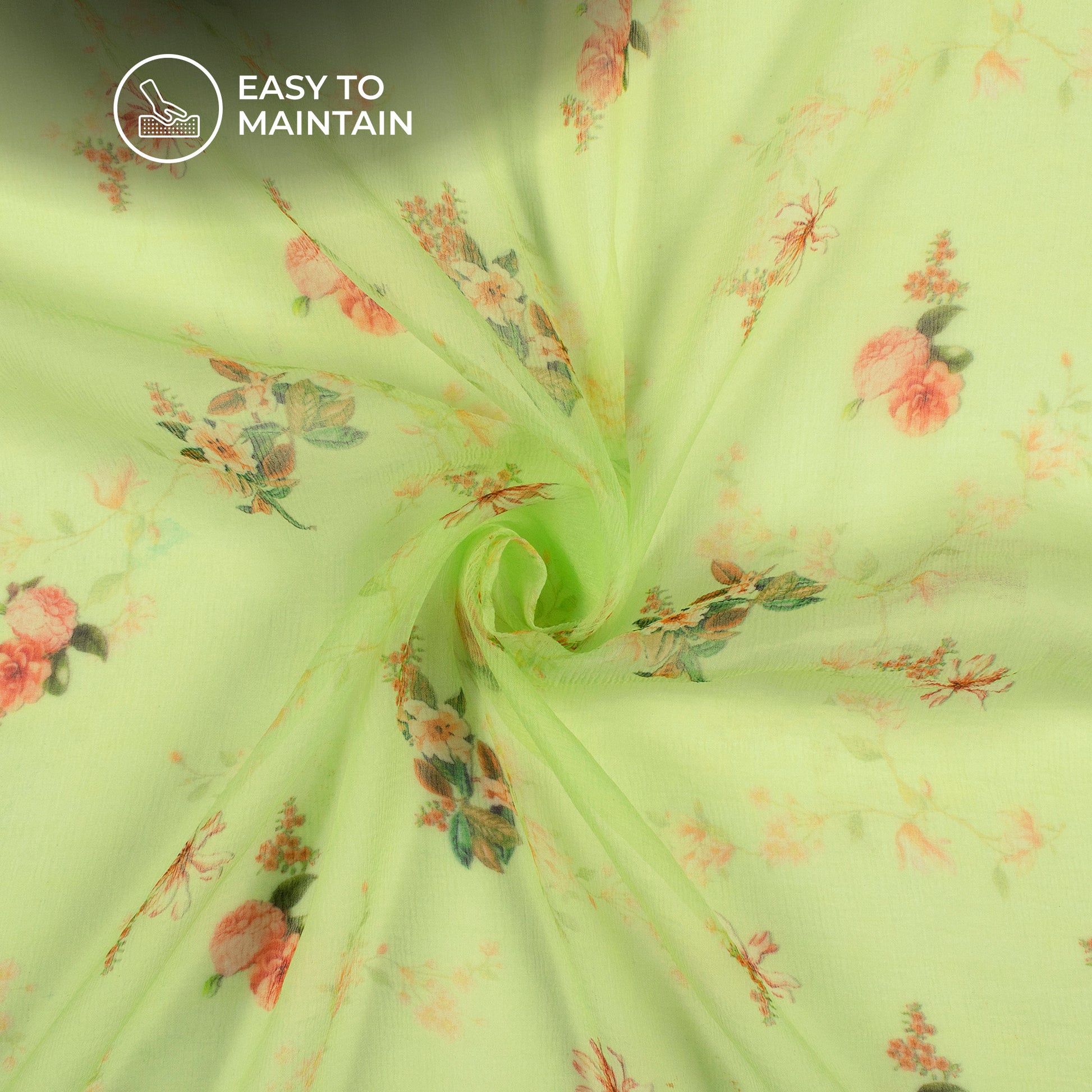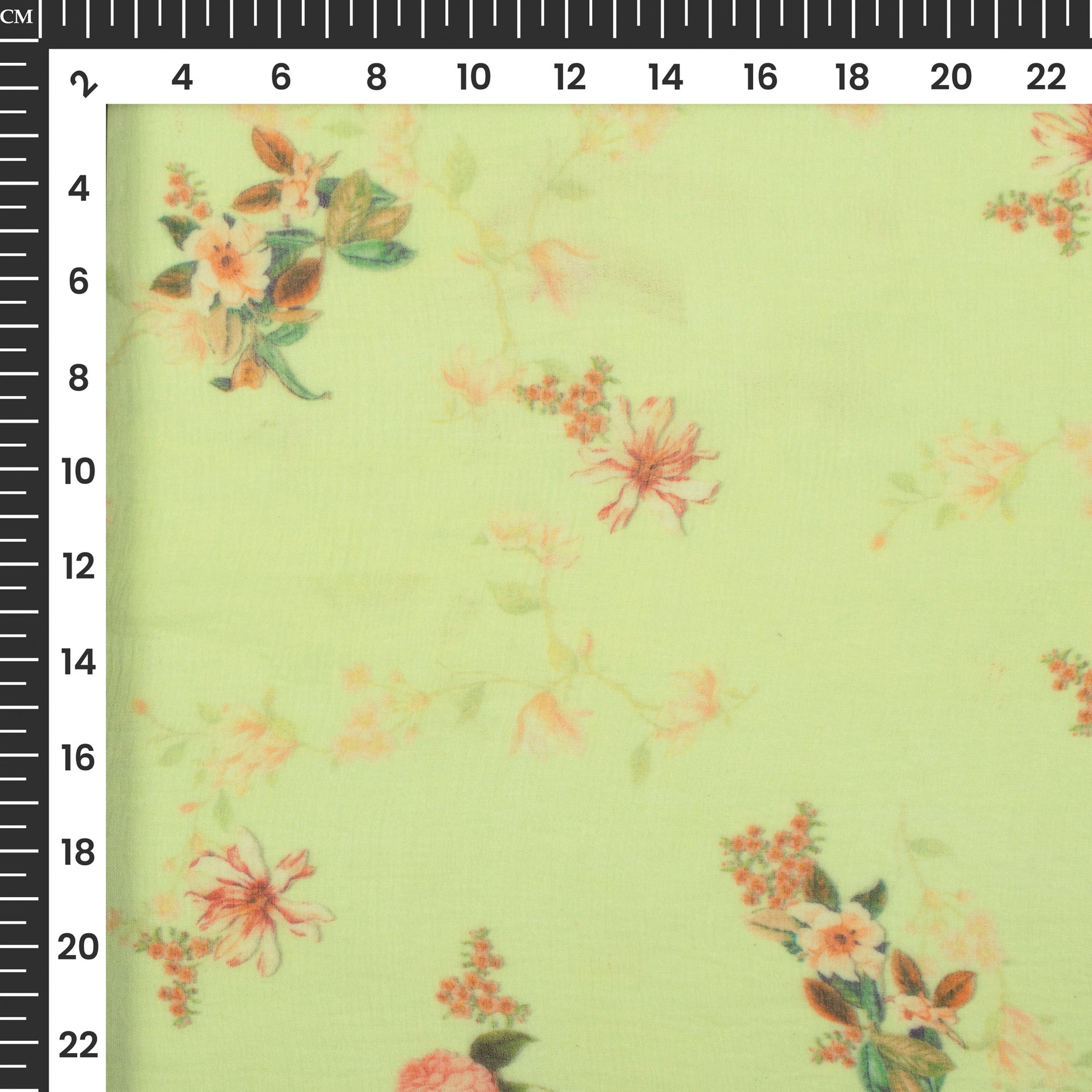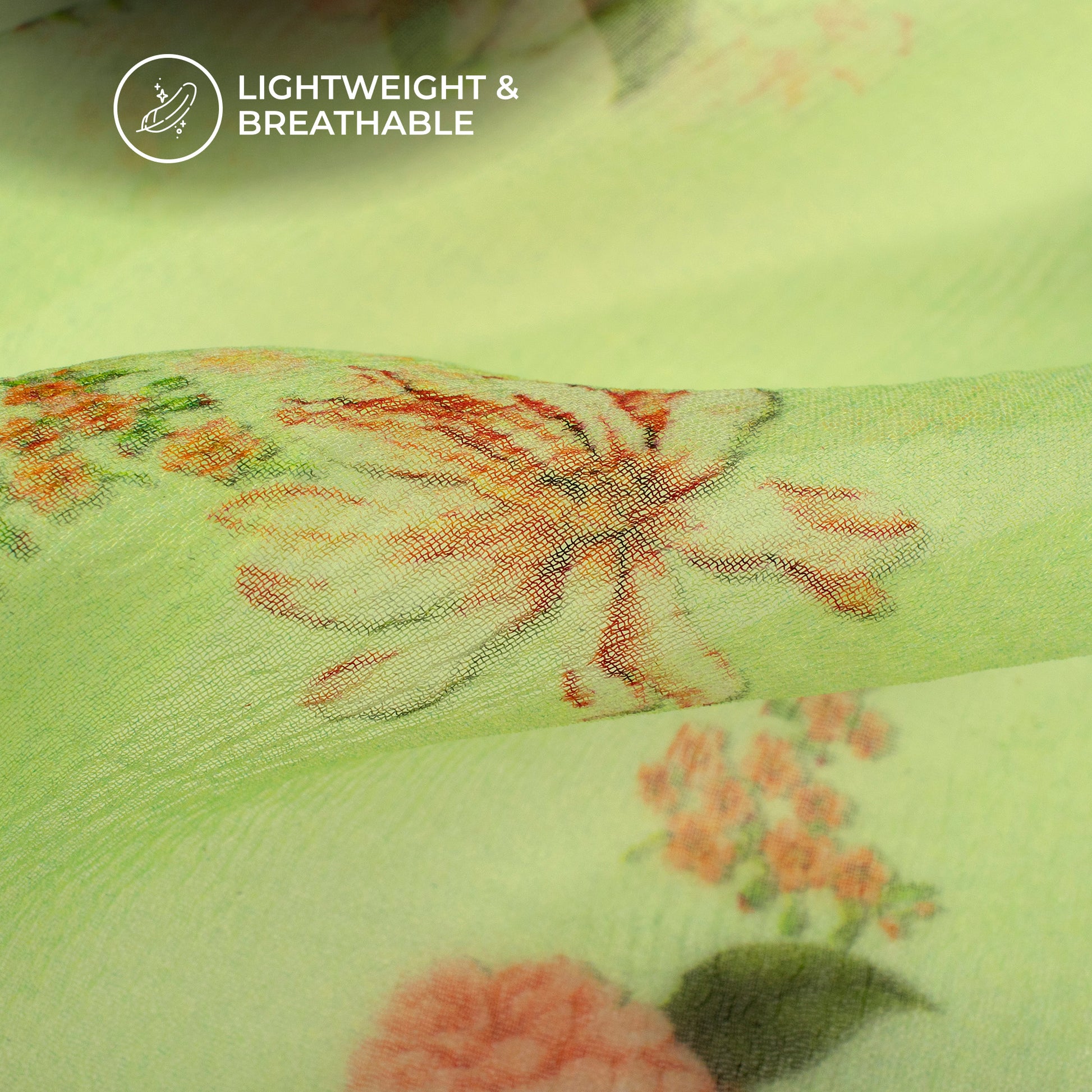 Trendy Peach Floral Digital Print Bemberg Chiffon Fabric