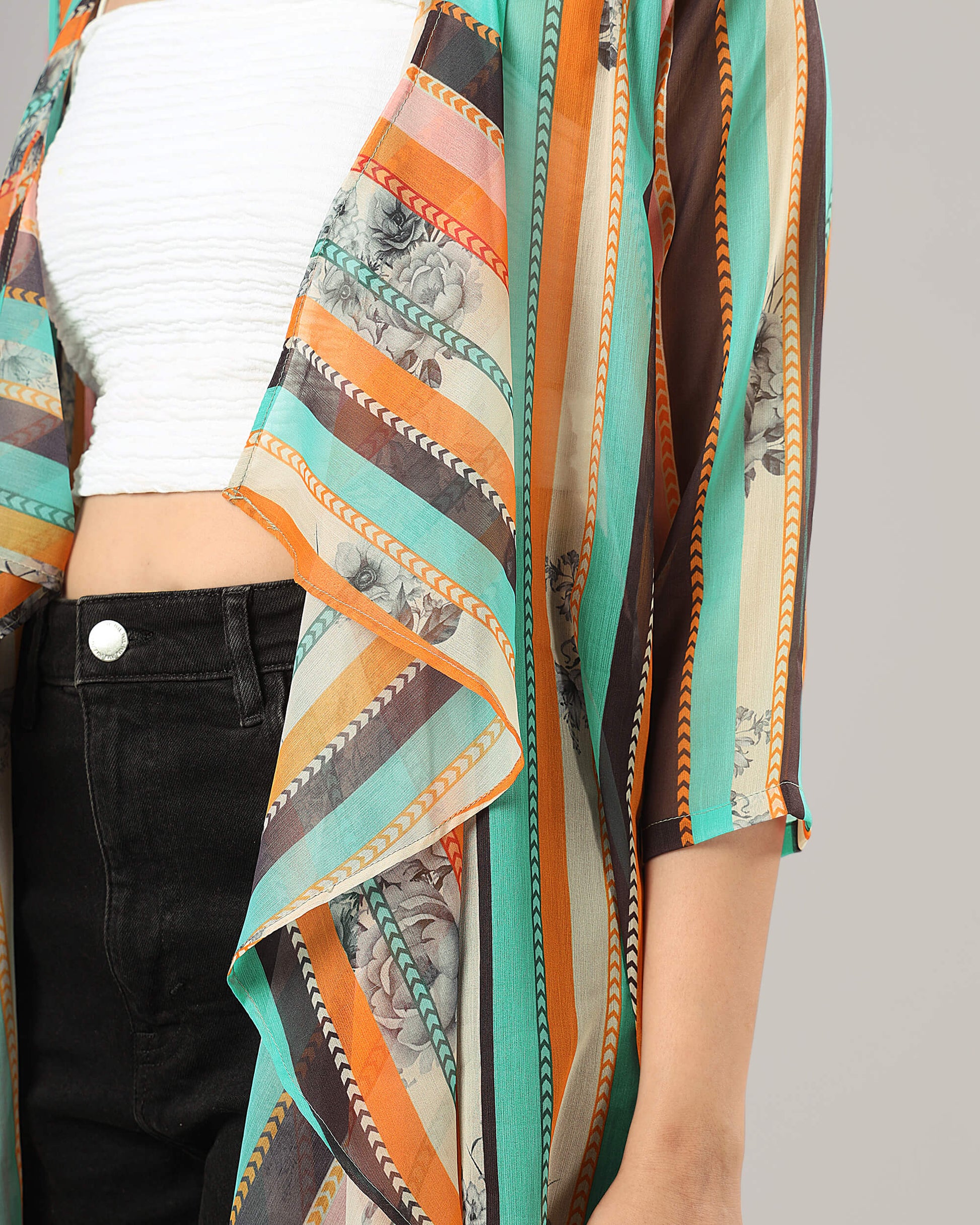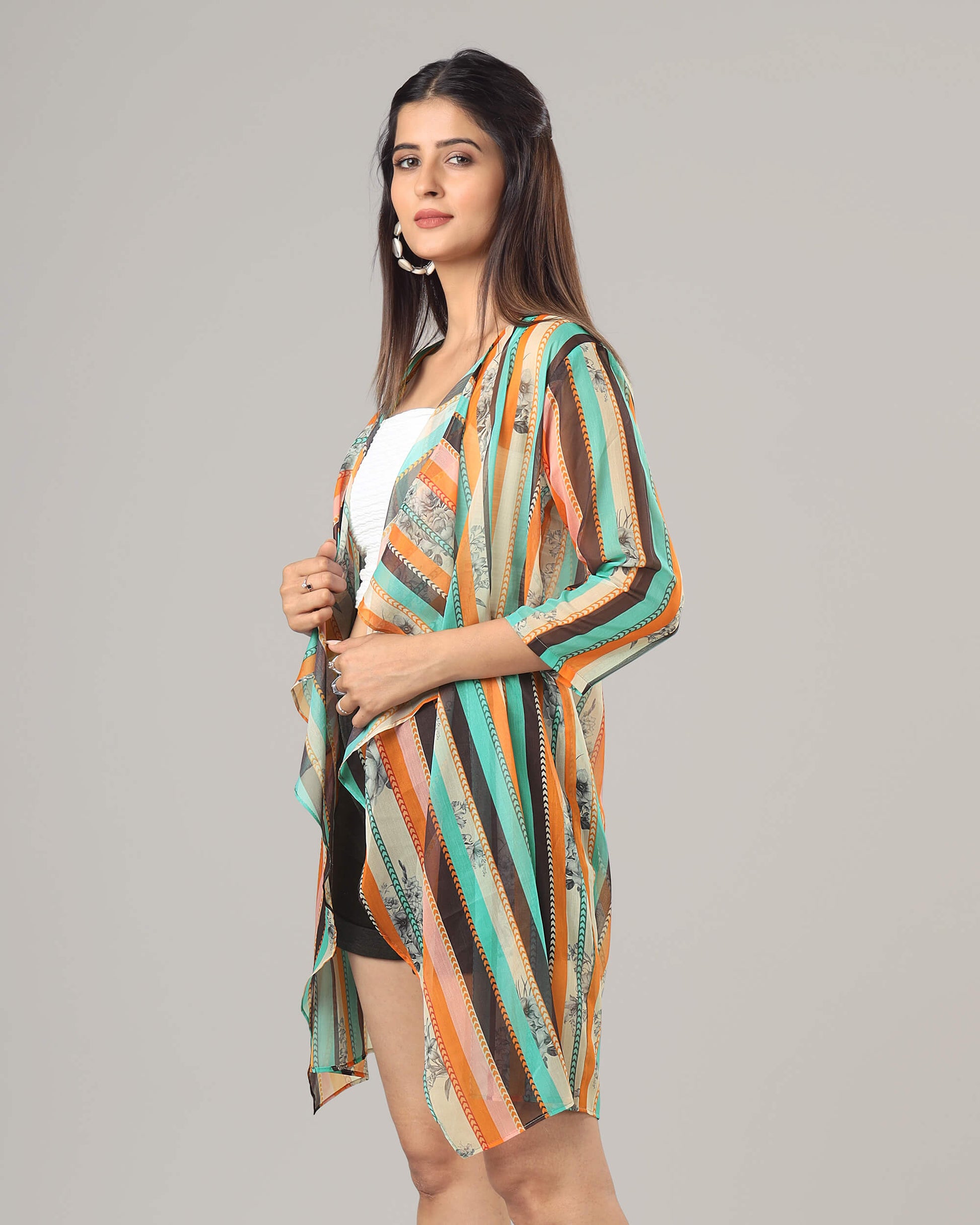 Trendy Stripes Waterfall Shrug For Women