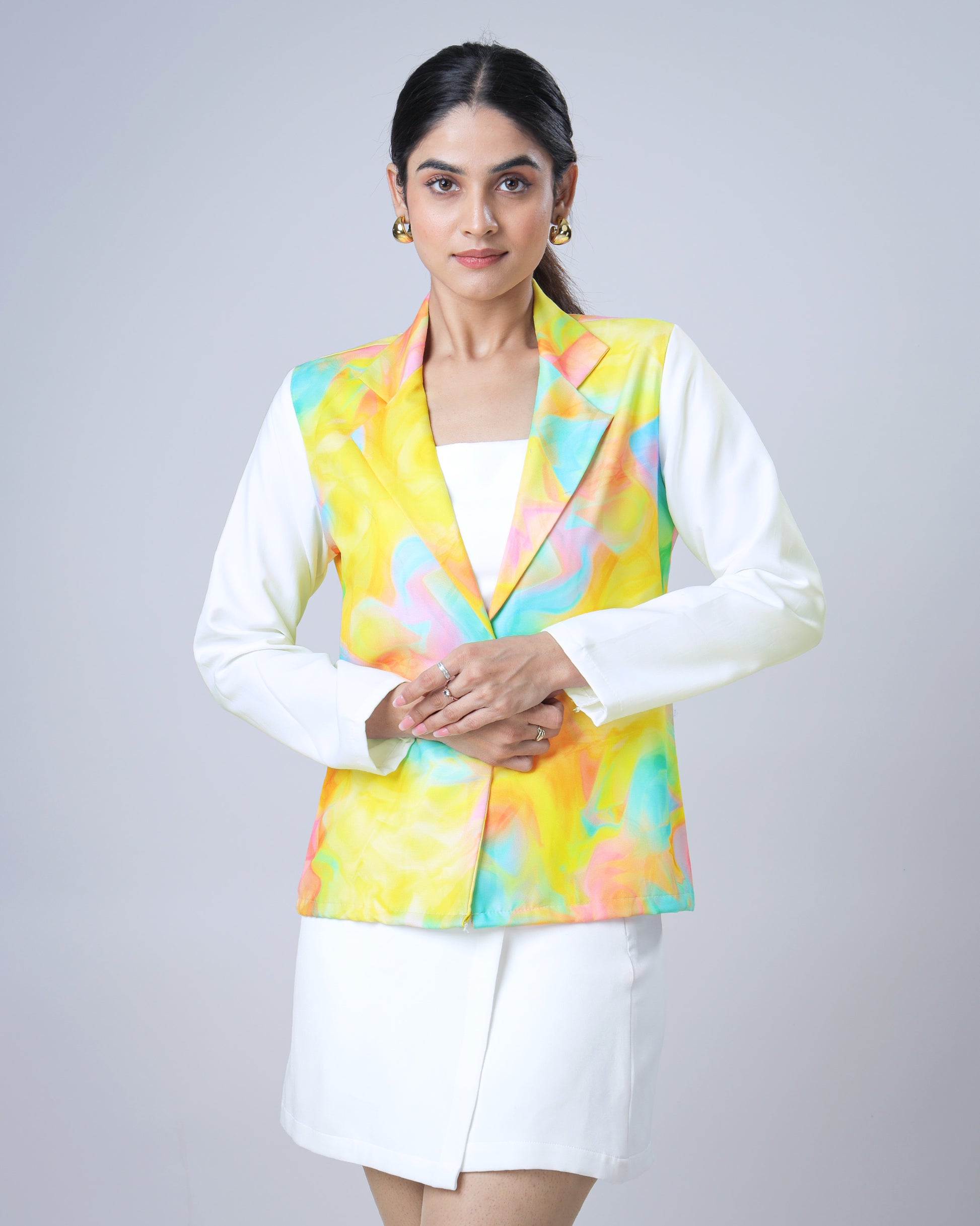 DescriptionDescriptionGive your layering game a stylish uplift with this amazing jacket from Fabcurate. Crafted from a comfortable fabric with a hint of versatility, this jacket separately features greatness to keep you snug and assures practicality. Style this all-season jacket with shorts, skirts, and pants, anytime and anywhere. MaterialRayon ColorMulti Color Neck TypeNotched Collar Sleeve TypeFull Sleeve Fit Type