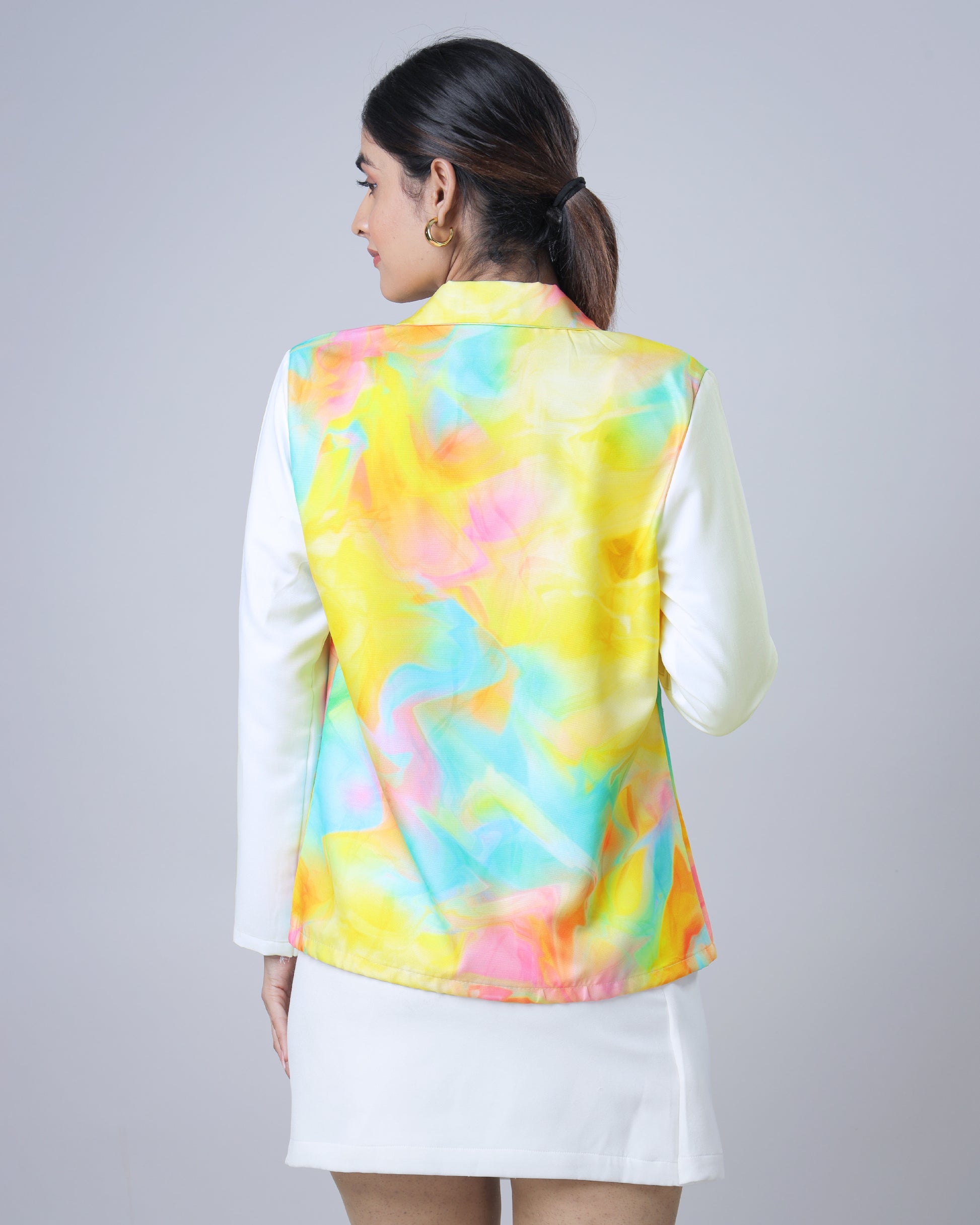 Trendy Tye And Dye Color Block Notched Collar Jacket