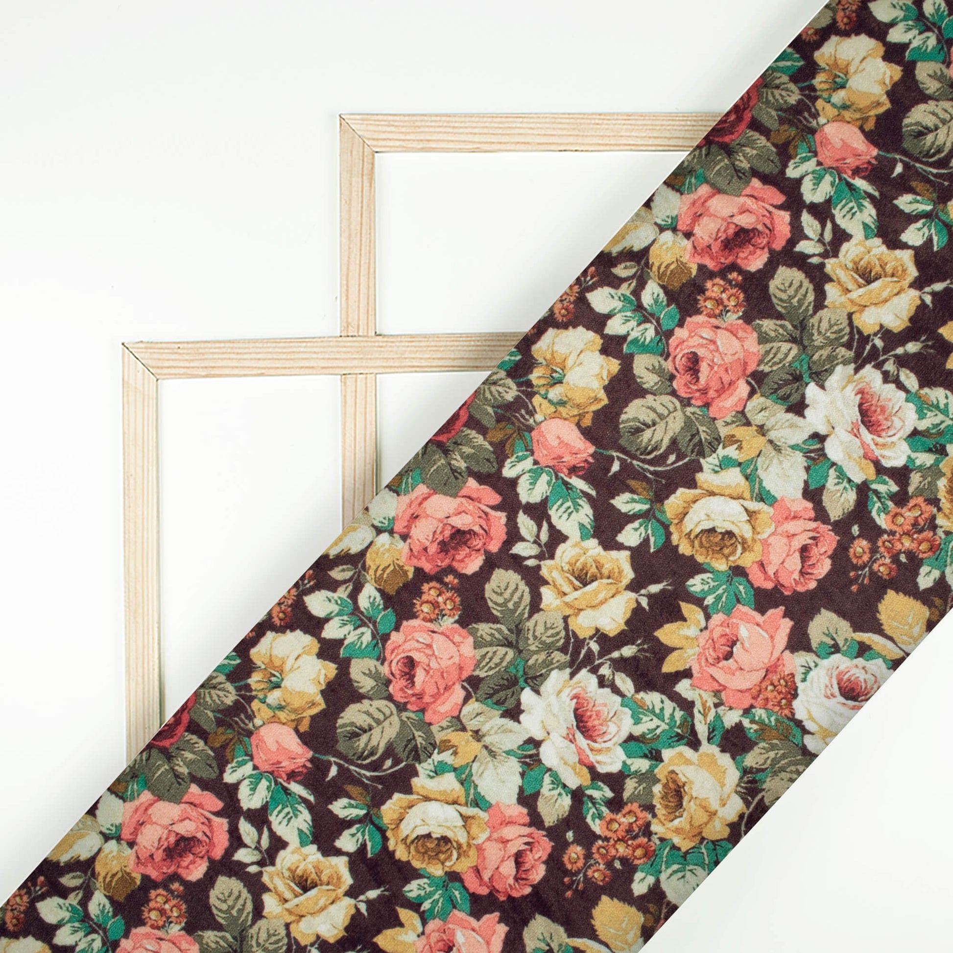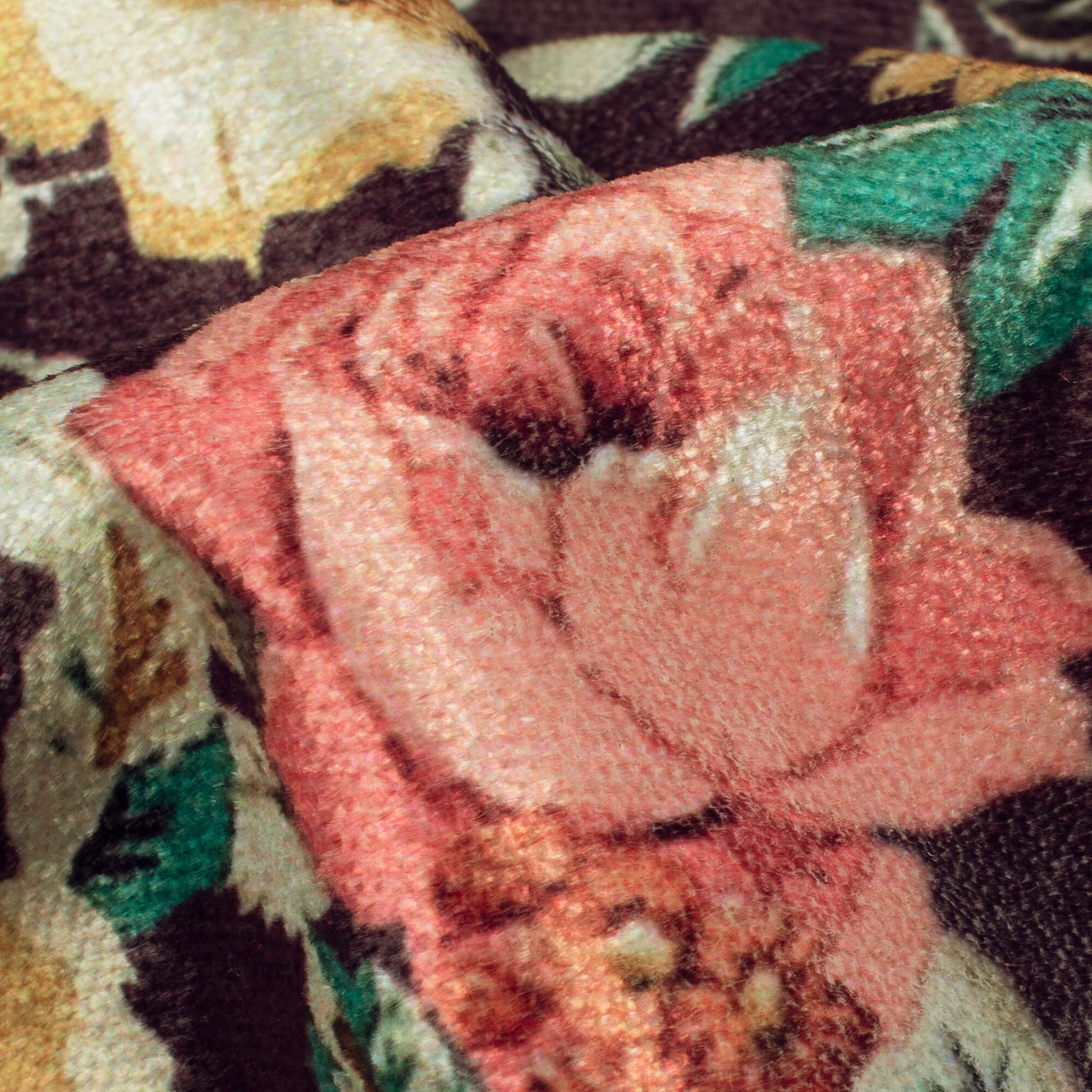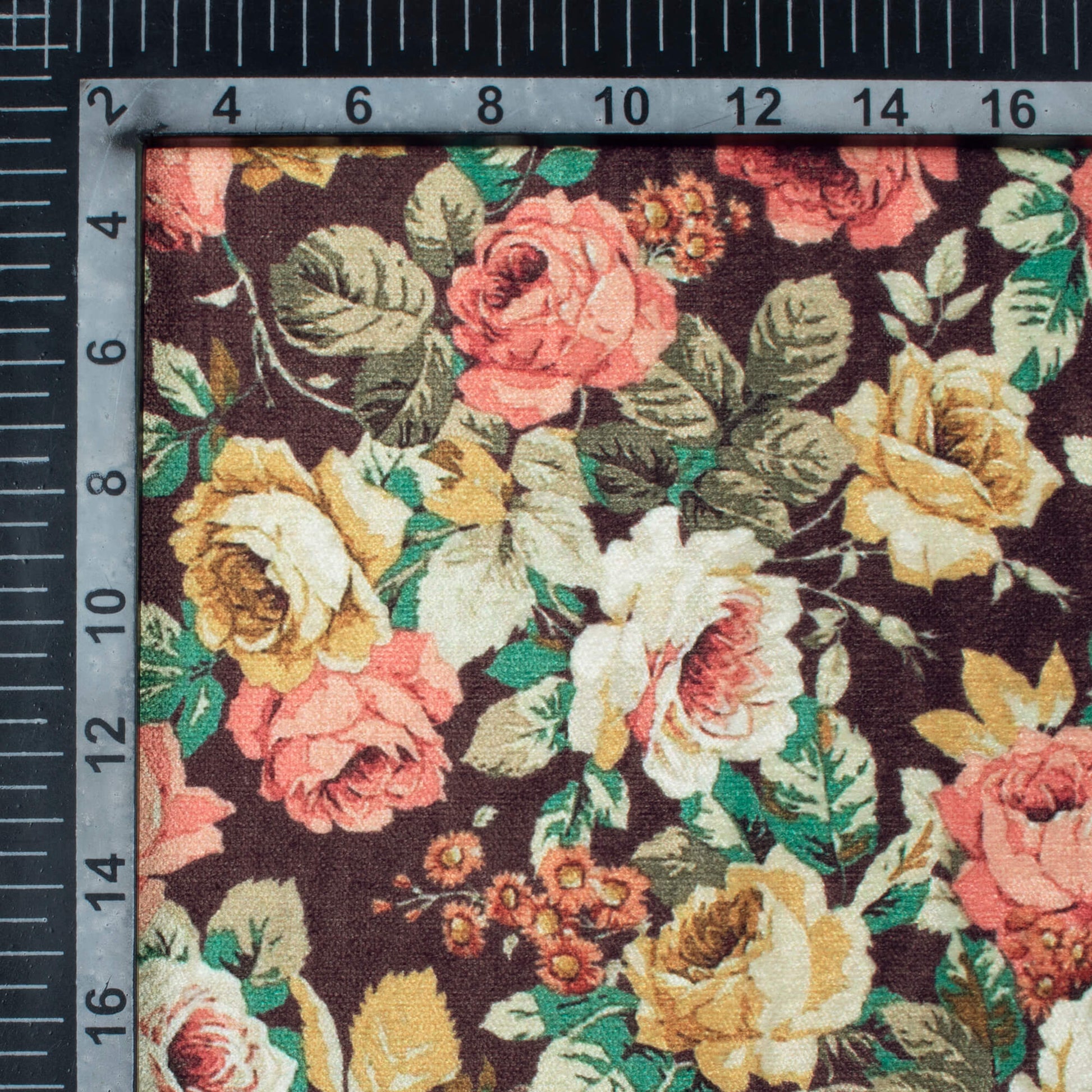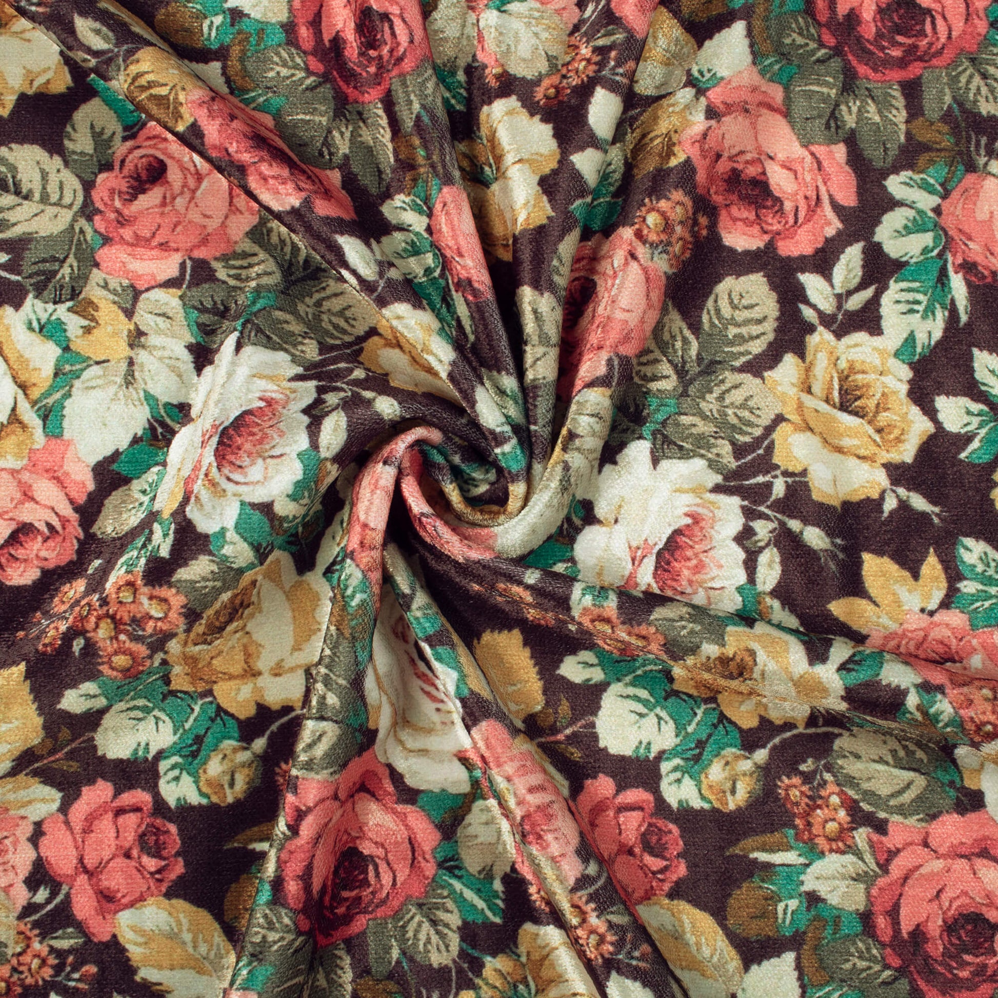 Trombone Yellow And Blush Red Floral Pattern Digital Print Premium Velvet Fabric