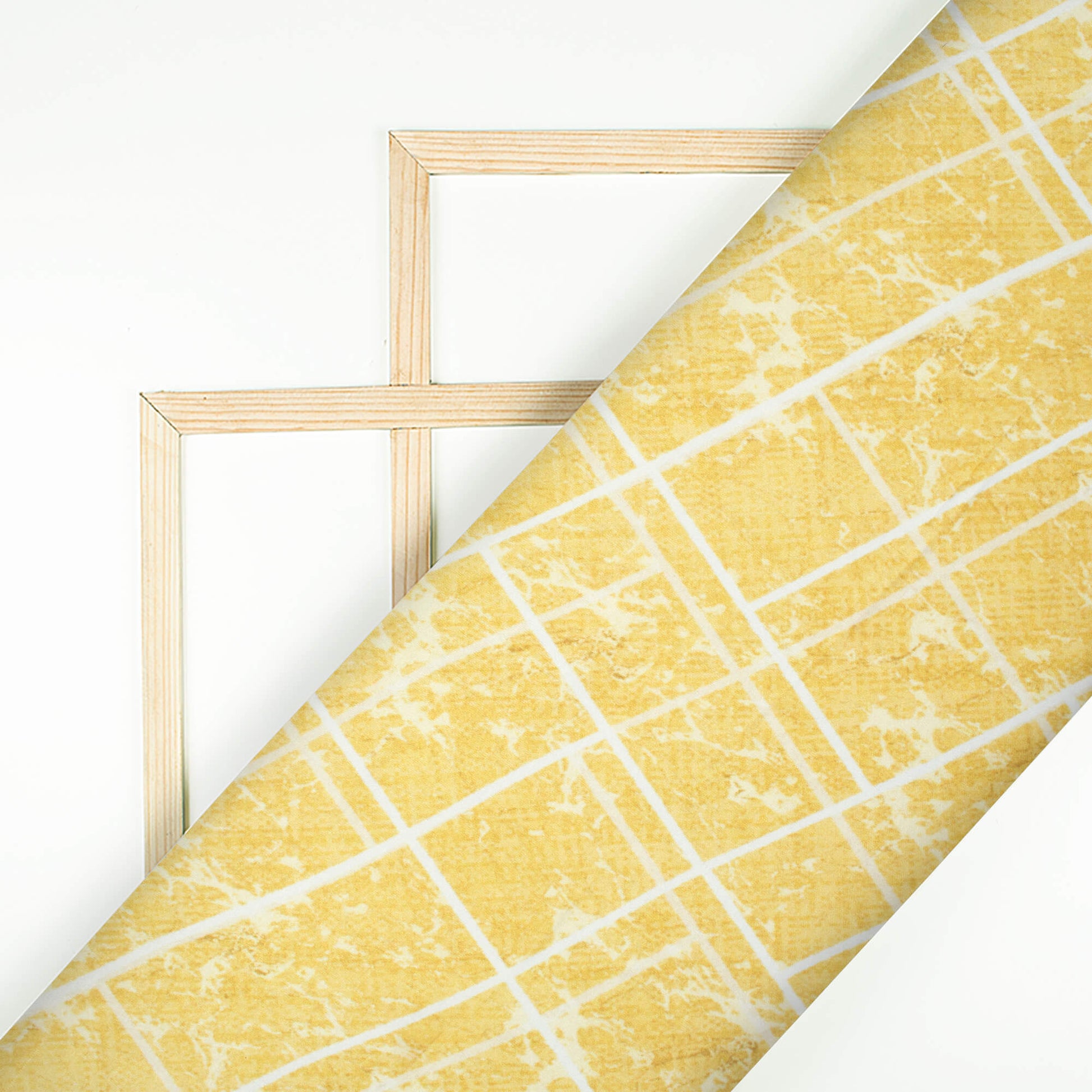 Trombone Yellow And White Geometric Pattern Digital Print Premium Lush Satin Fabric