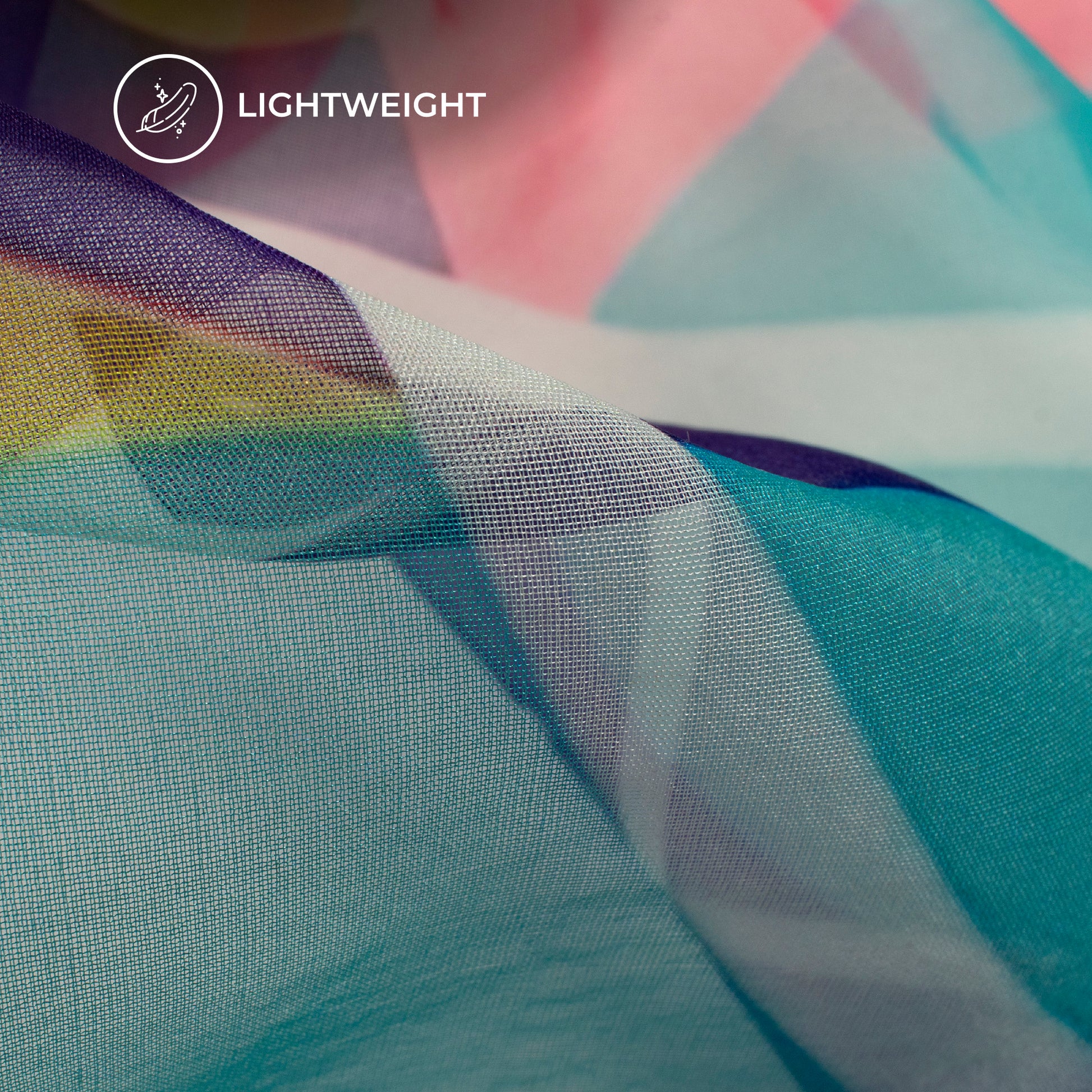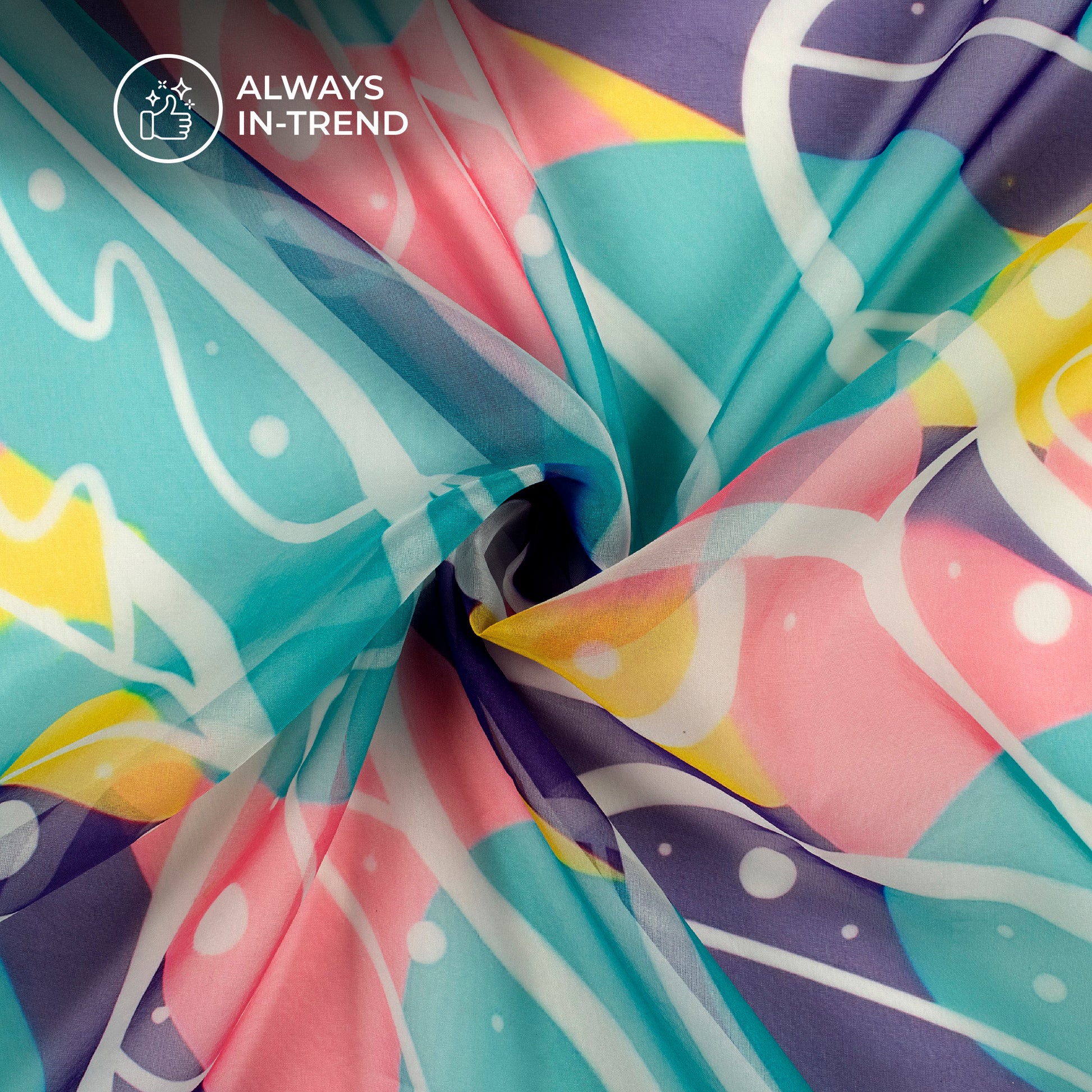 Turquoise Blue Abstract Digital Print Matt Organza Fabric