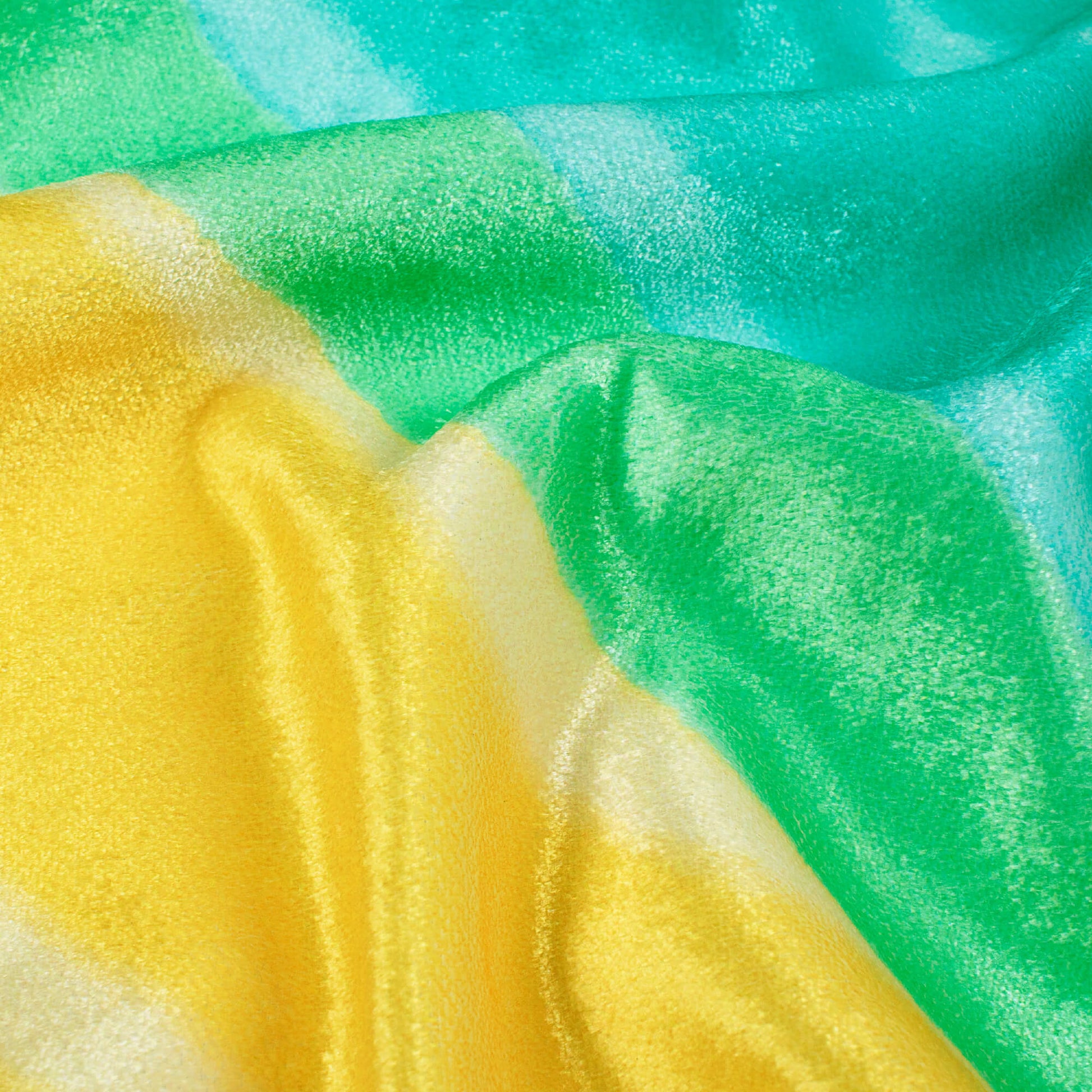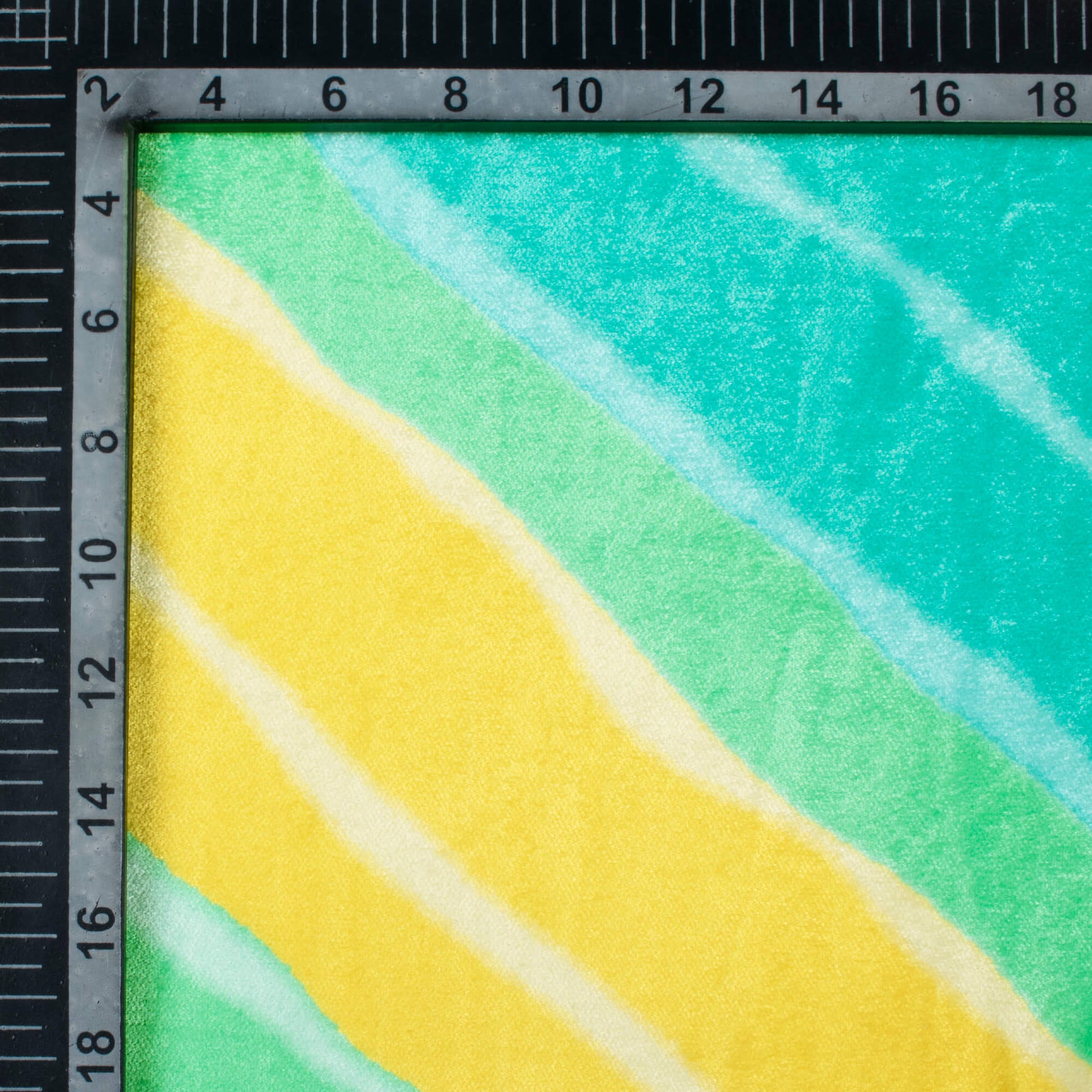 Turquoise Blue And Mustard Yellow Leheriya Pattern Digital Print Premium Velvet Fabric