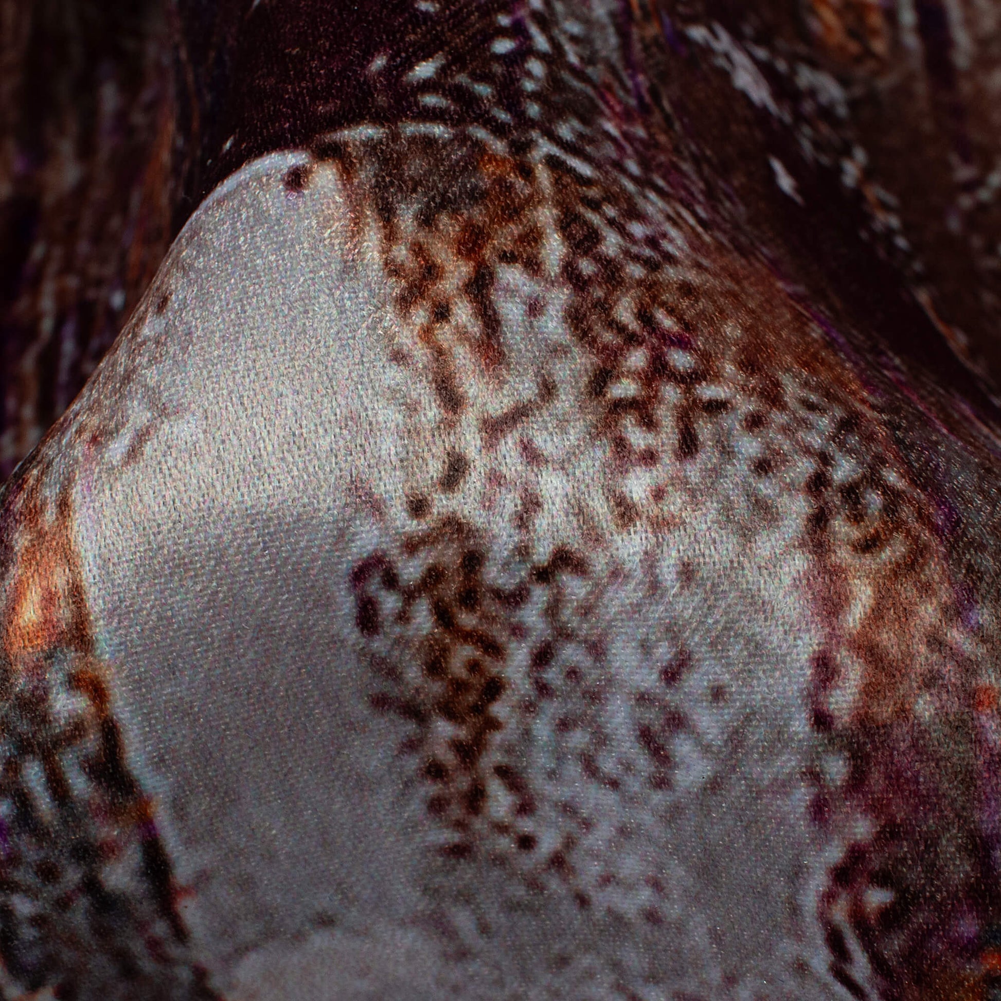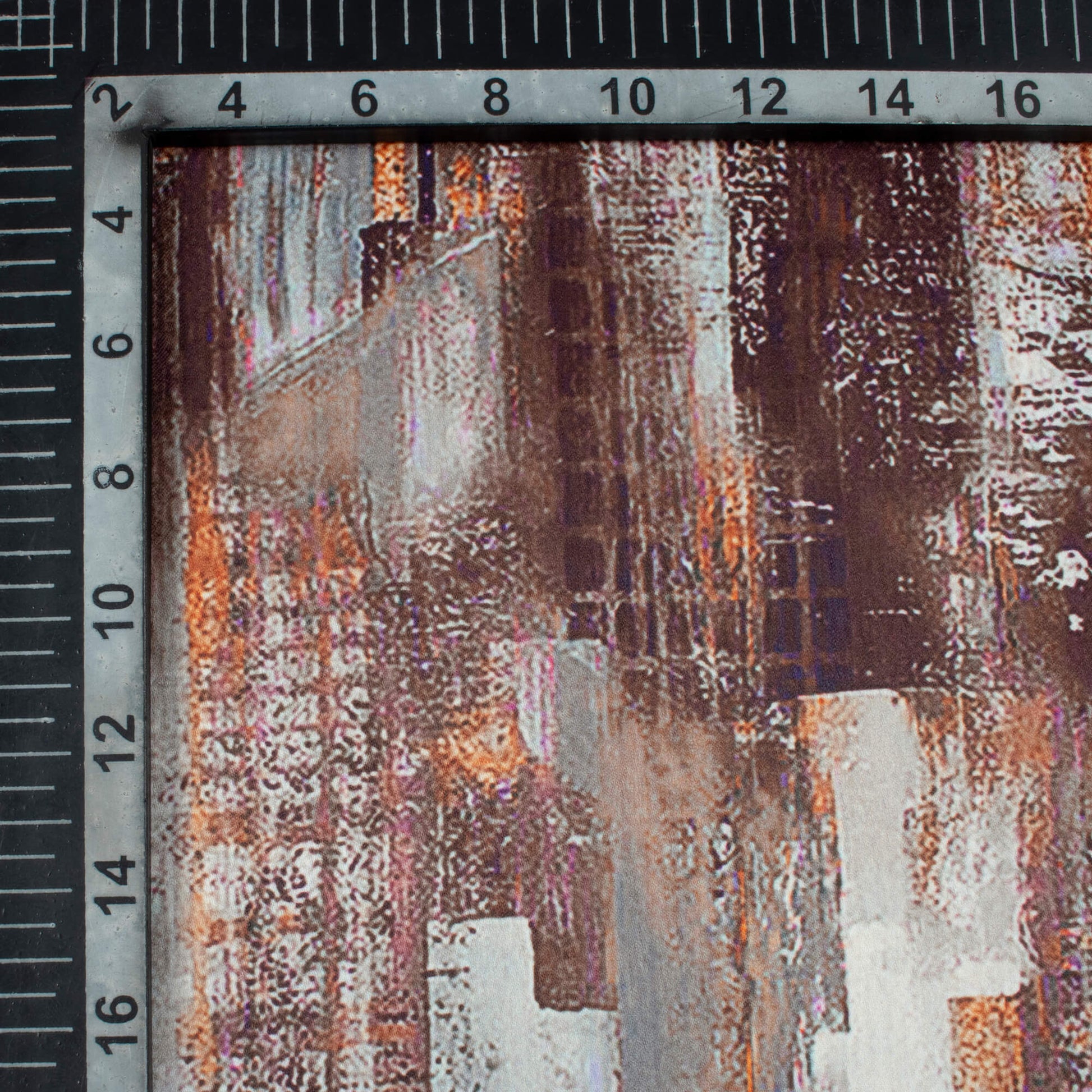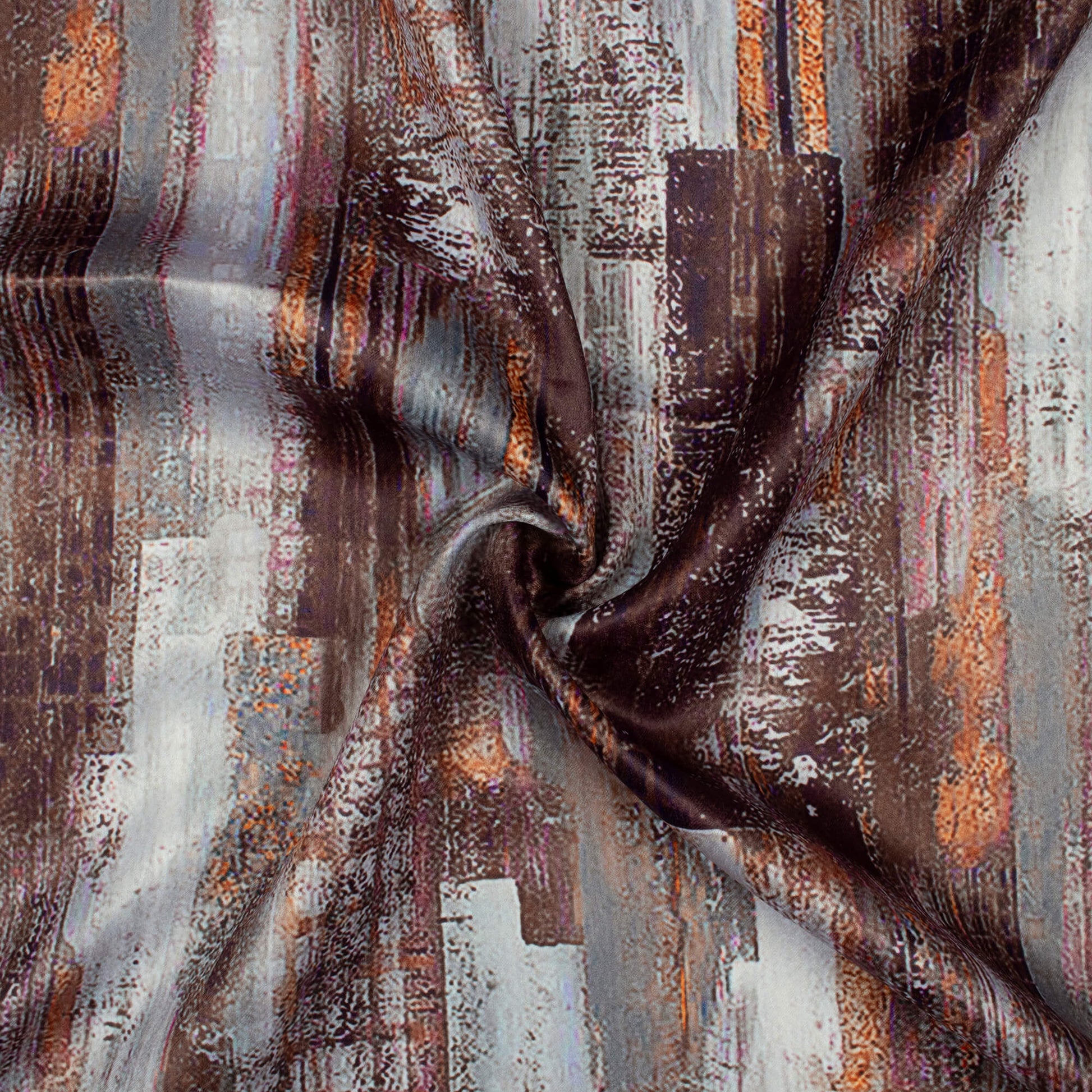 Umber Brown And Off White Abstract Pattern Digital Print Lush Satin Fabric