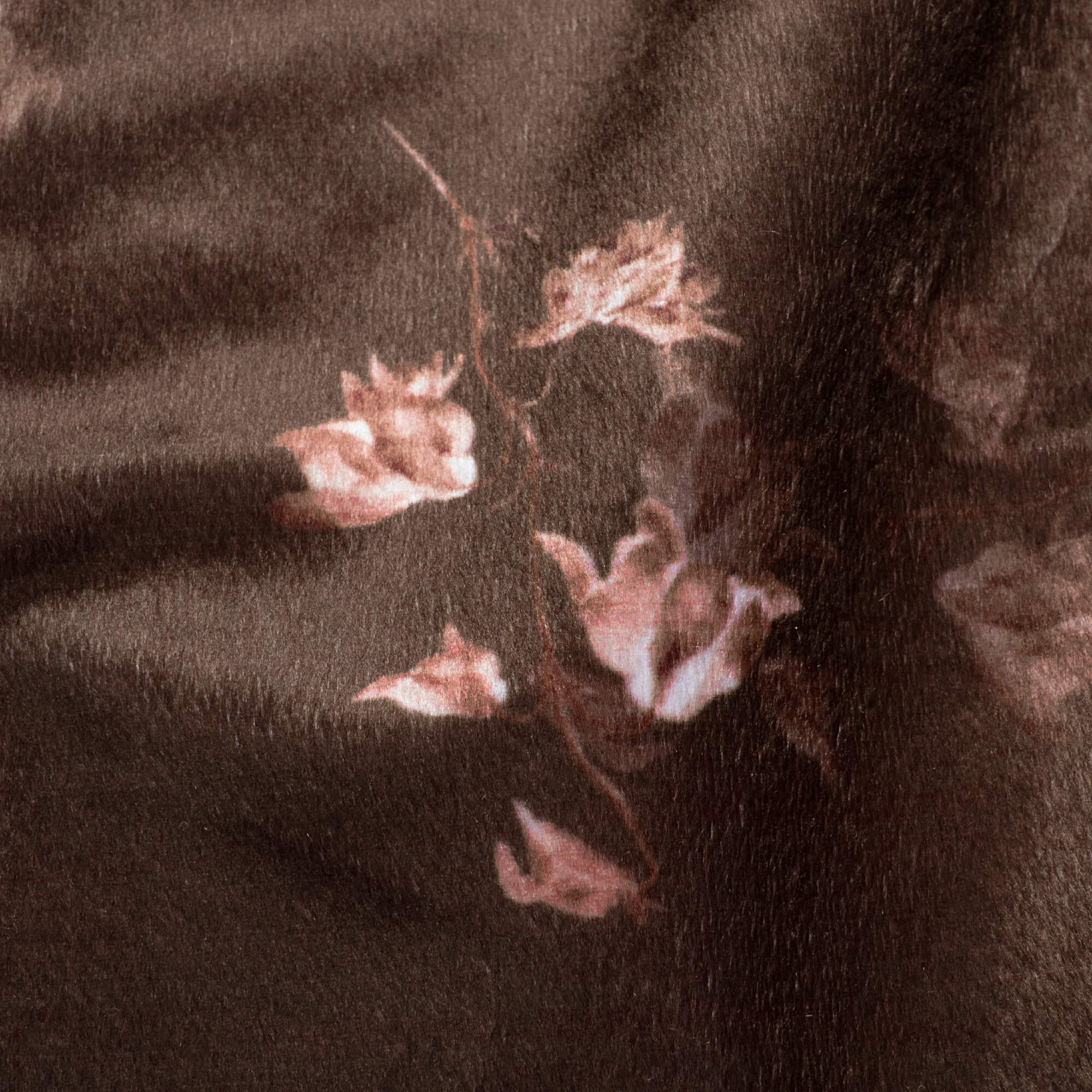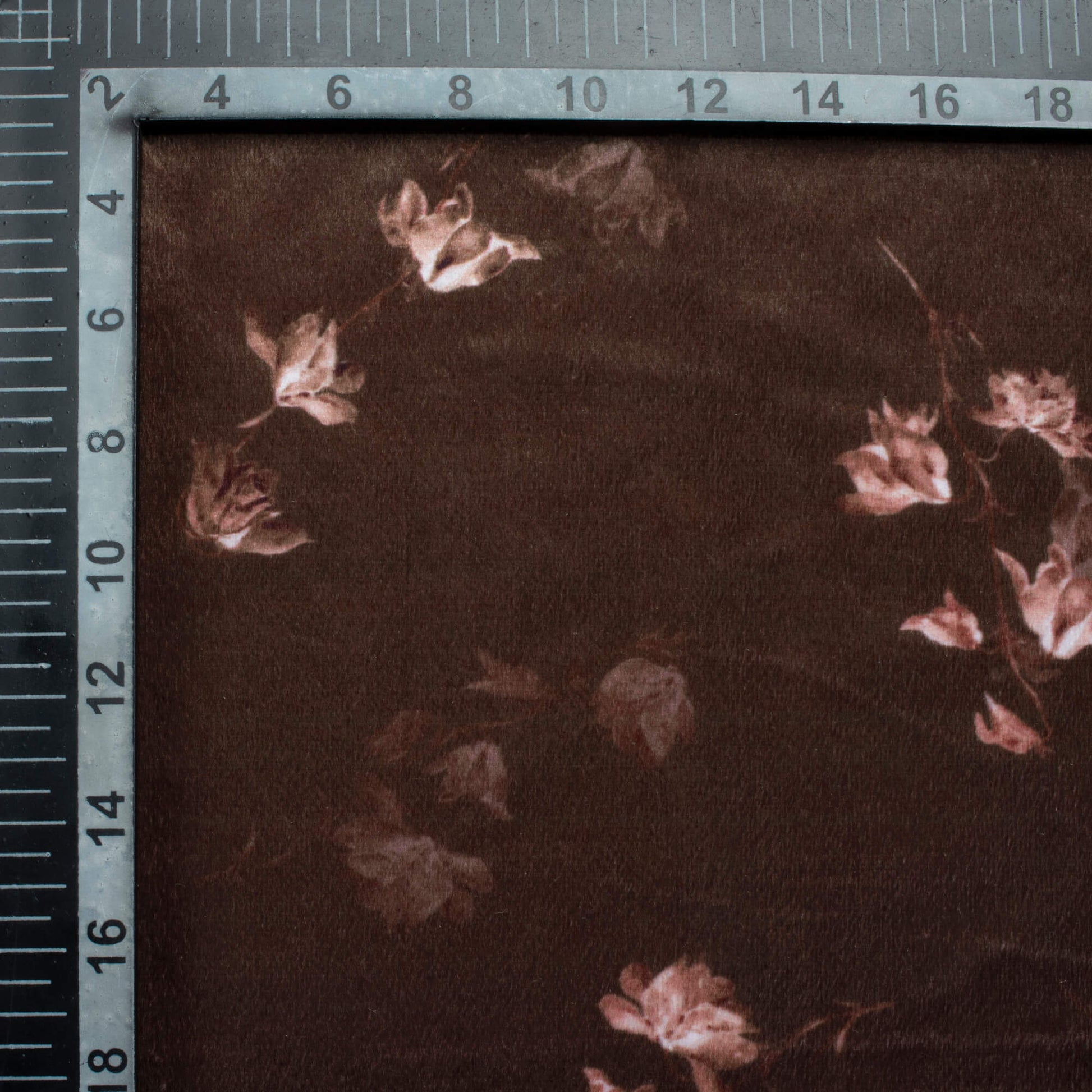 Umber Brown Floral Pattern Digital Print Velvet Fabric (Width 58 Inches)