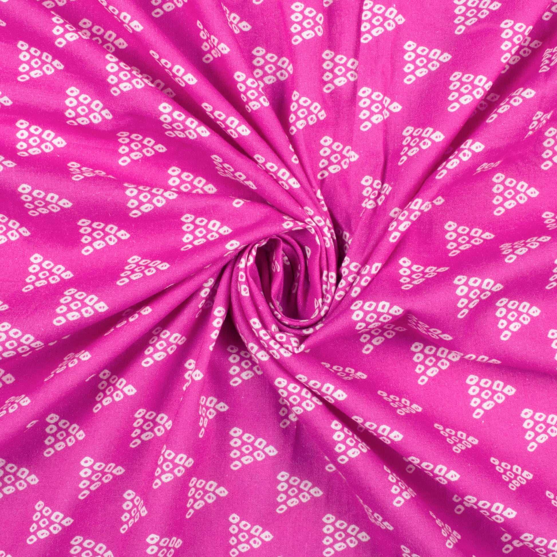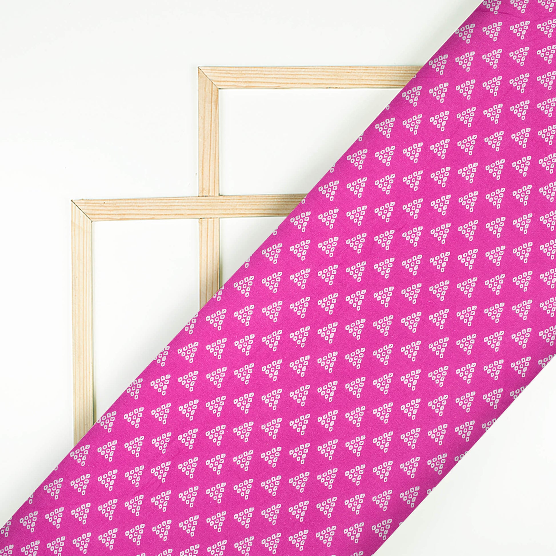 Varsha's Choice Magenta Pink And White Geometric Pattern Digital Print Cotton Cambric Fabric