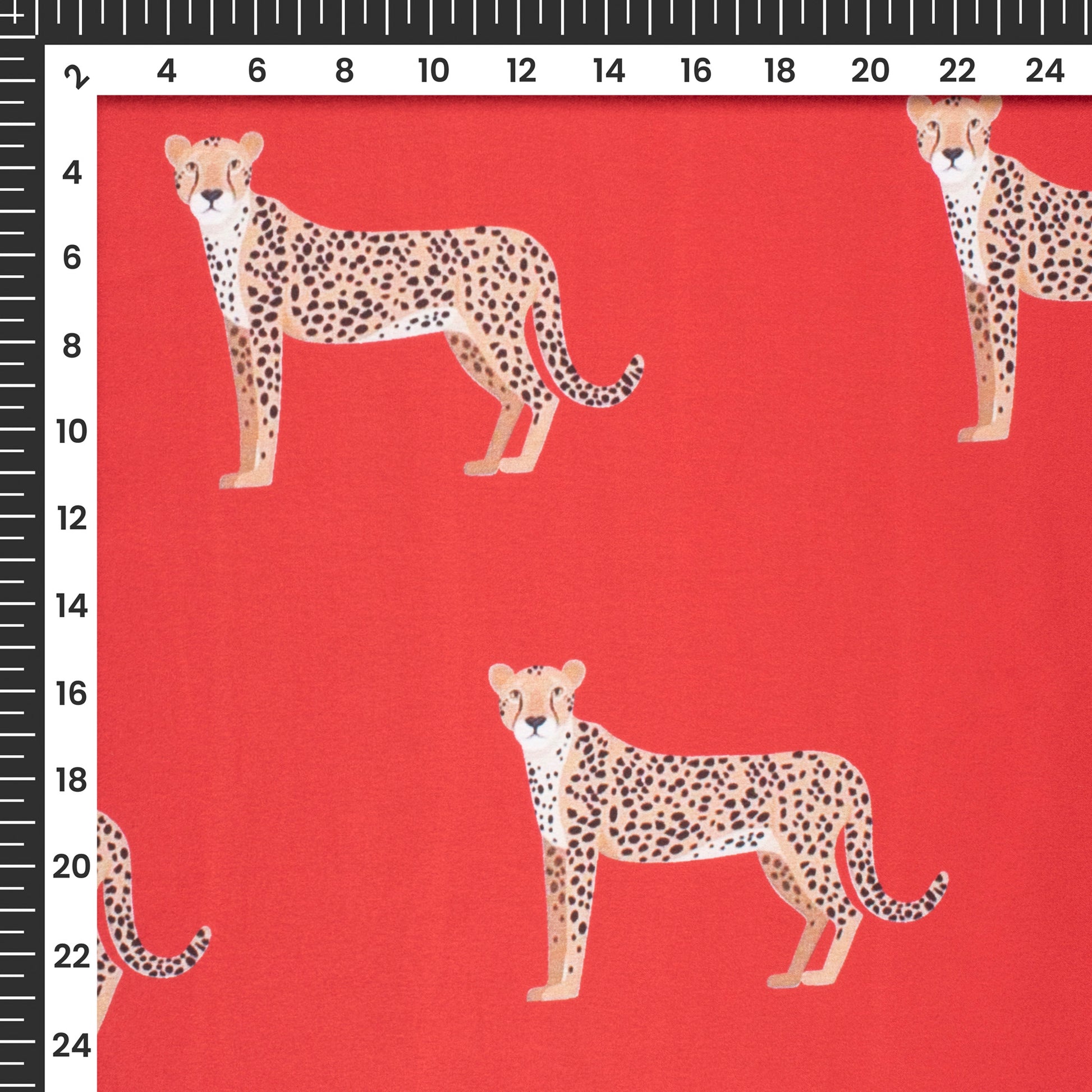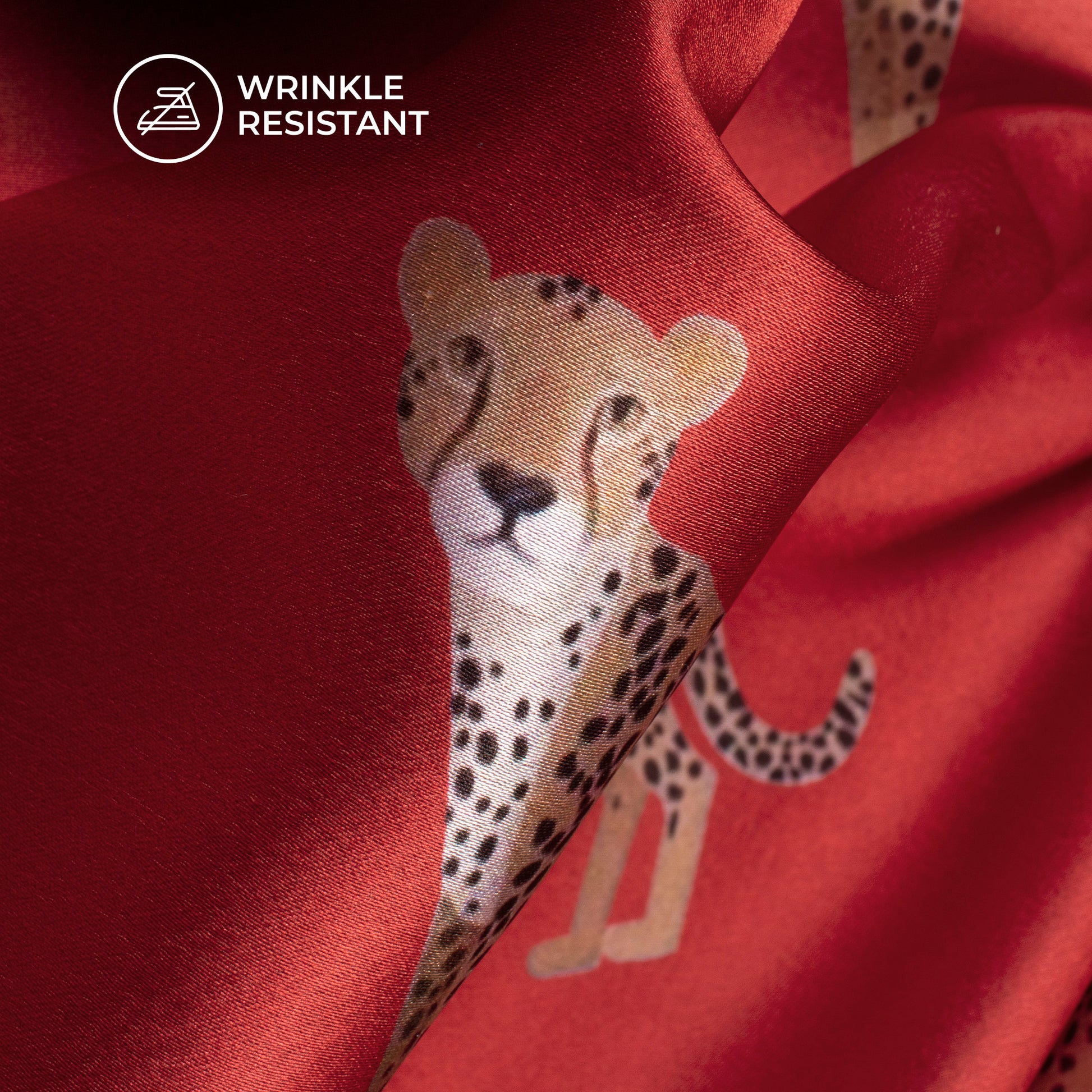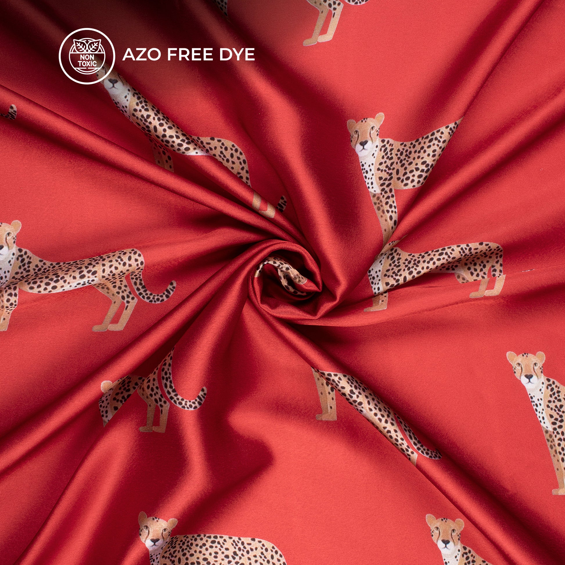 Venetien Red leopard Digital Print Japan Satin Fabric