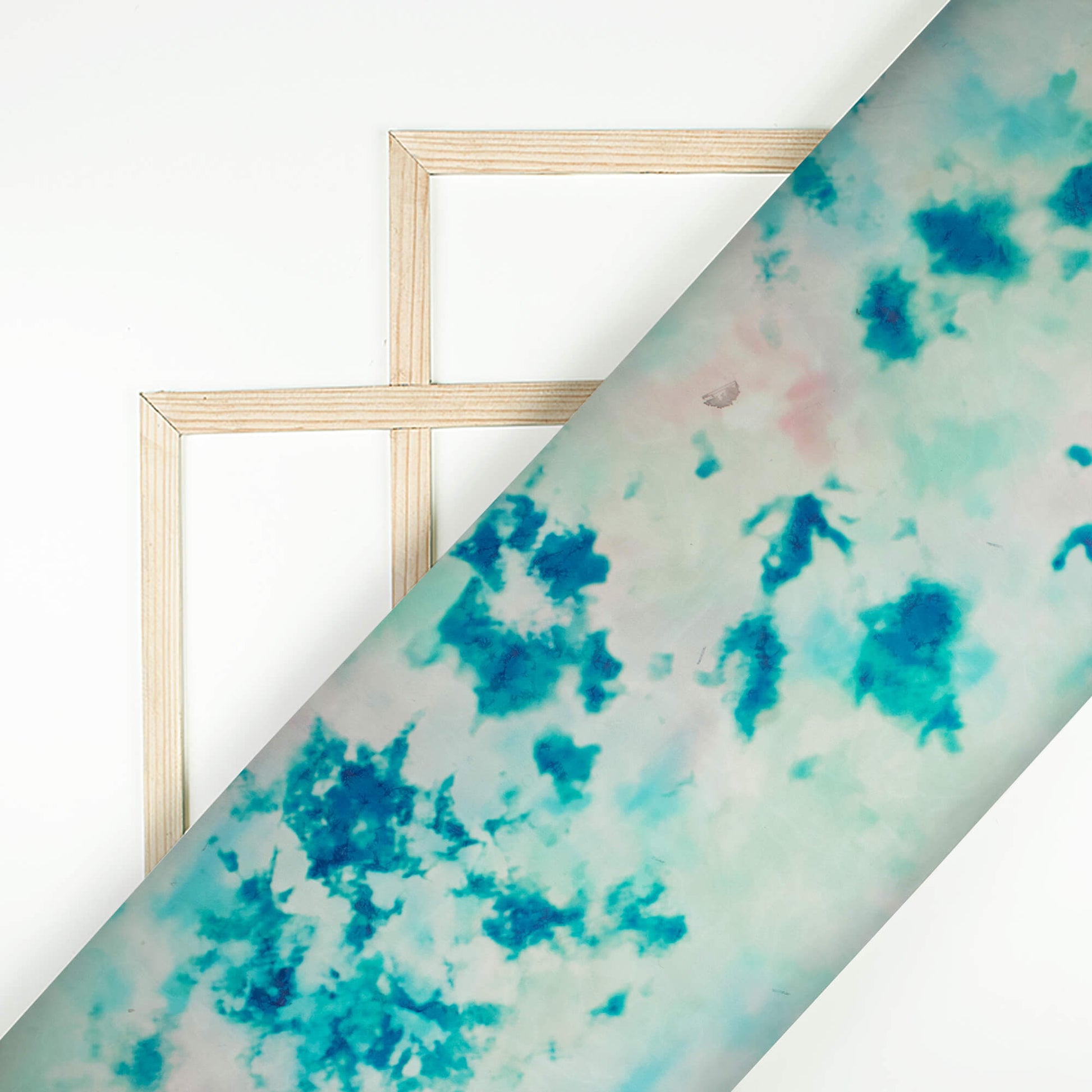 Veridian Green And Pink Tye And Dye Pattern Digital Print Organza Satin Fabric