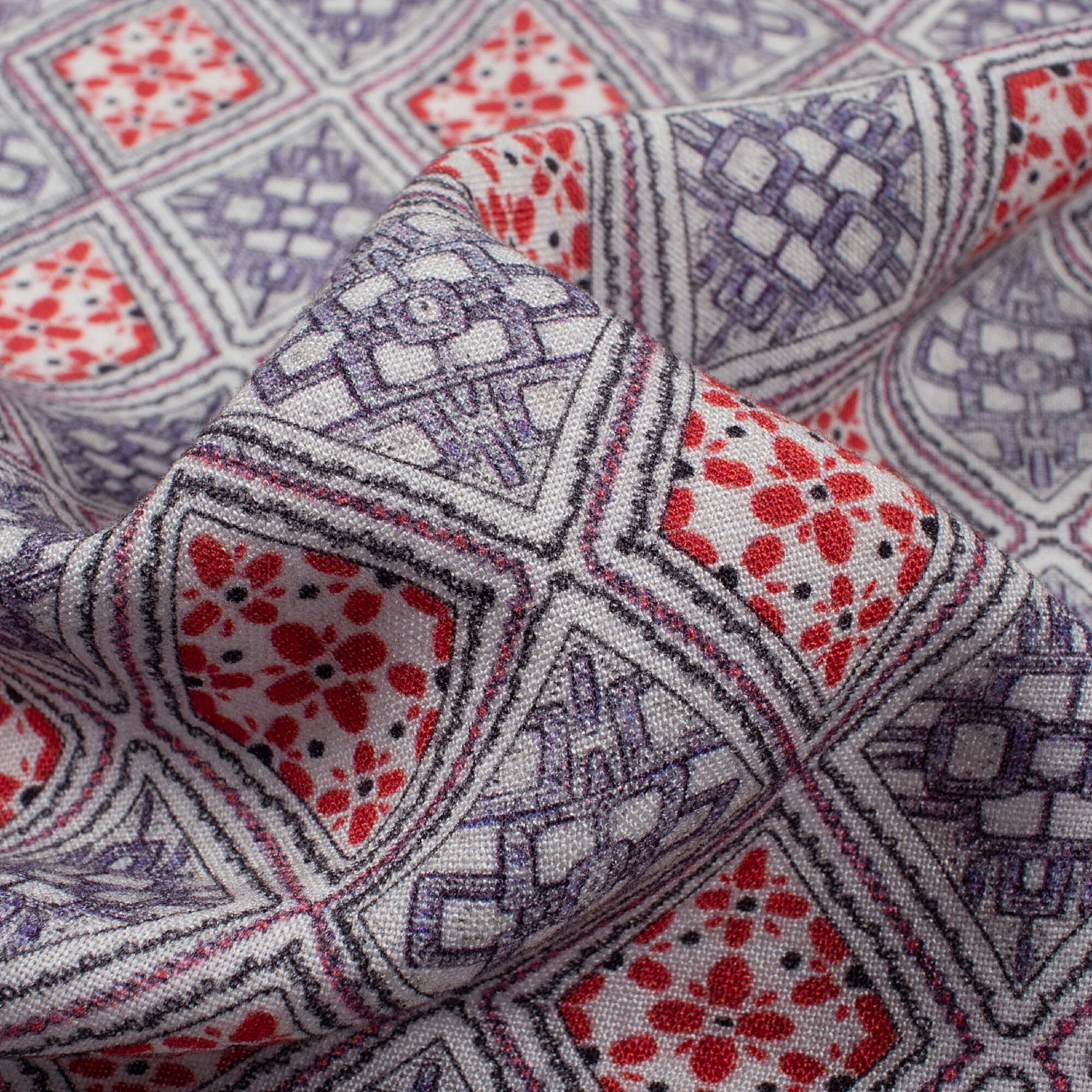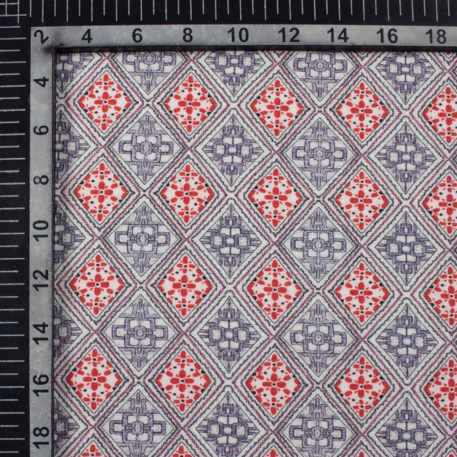 Vermilion Red And Blue Geometric Pattern Digital Print Viscose Rayon Fabric (Width 58 Inches)