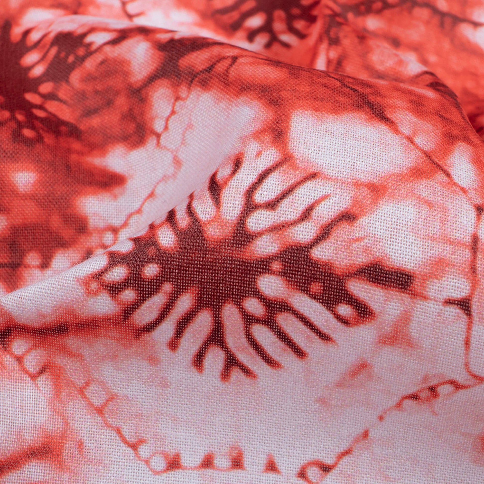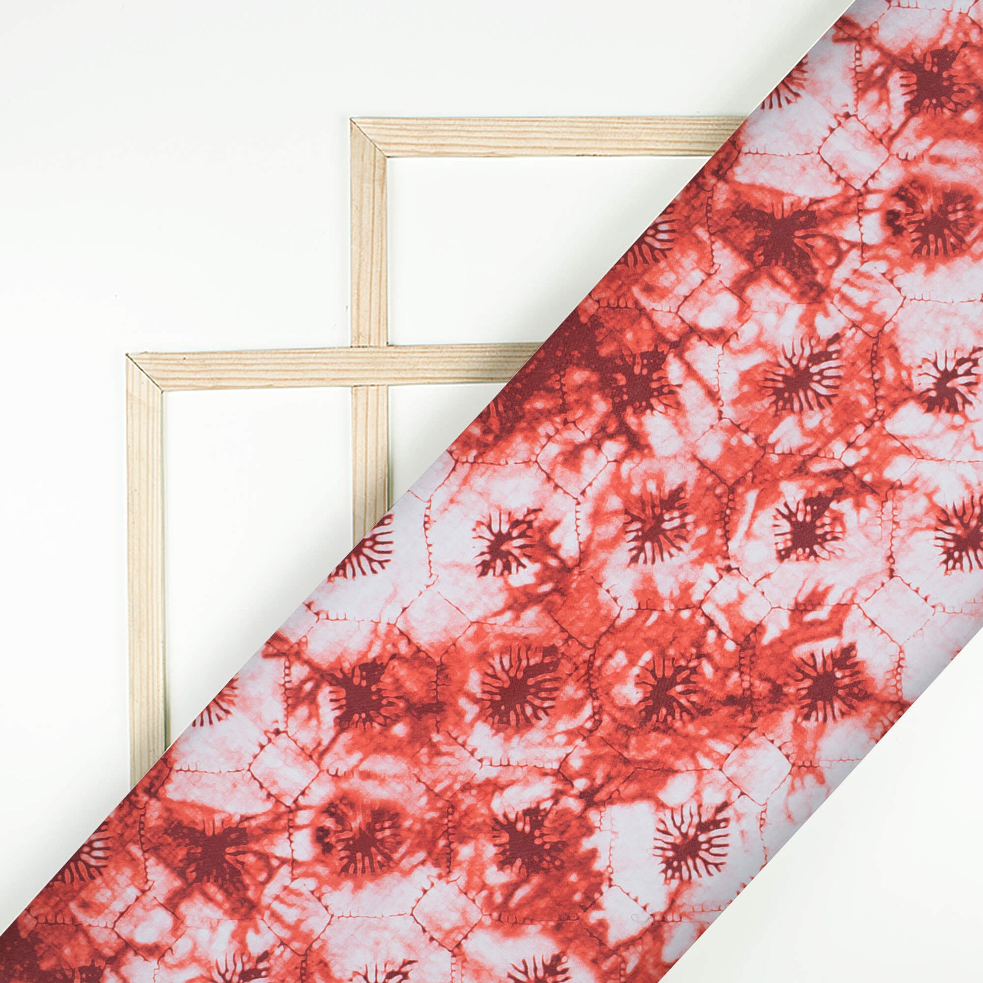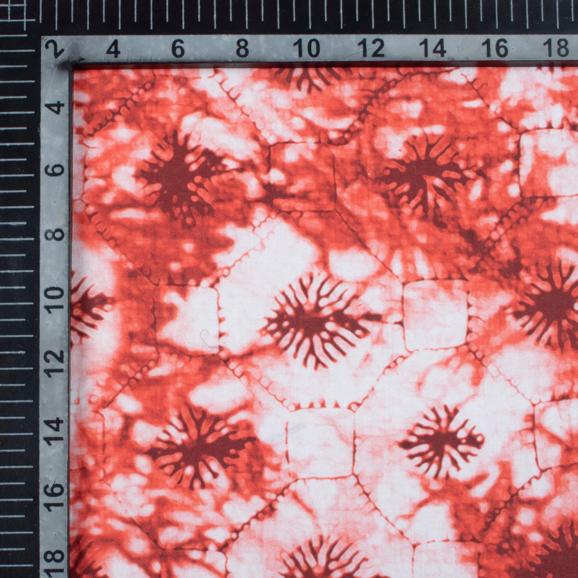 Vermilion Red And White Abstract Pattern Digital Print Poly Cambric Fabric