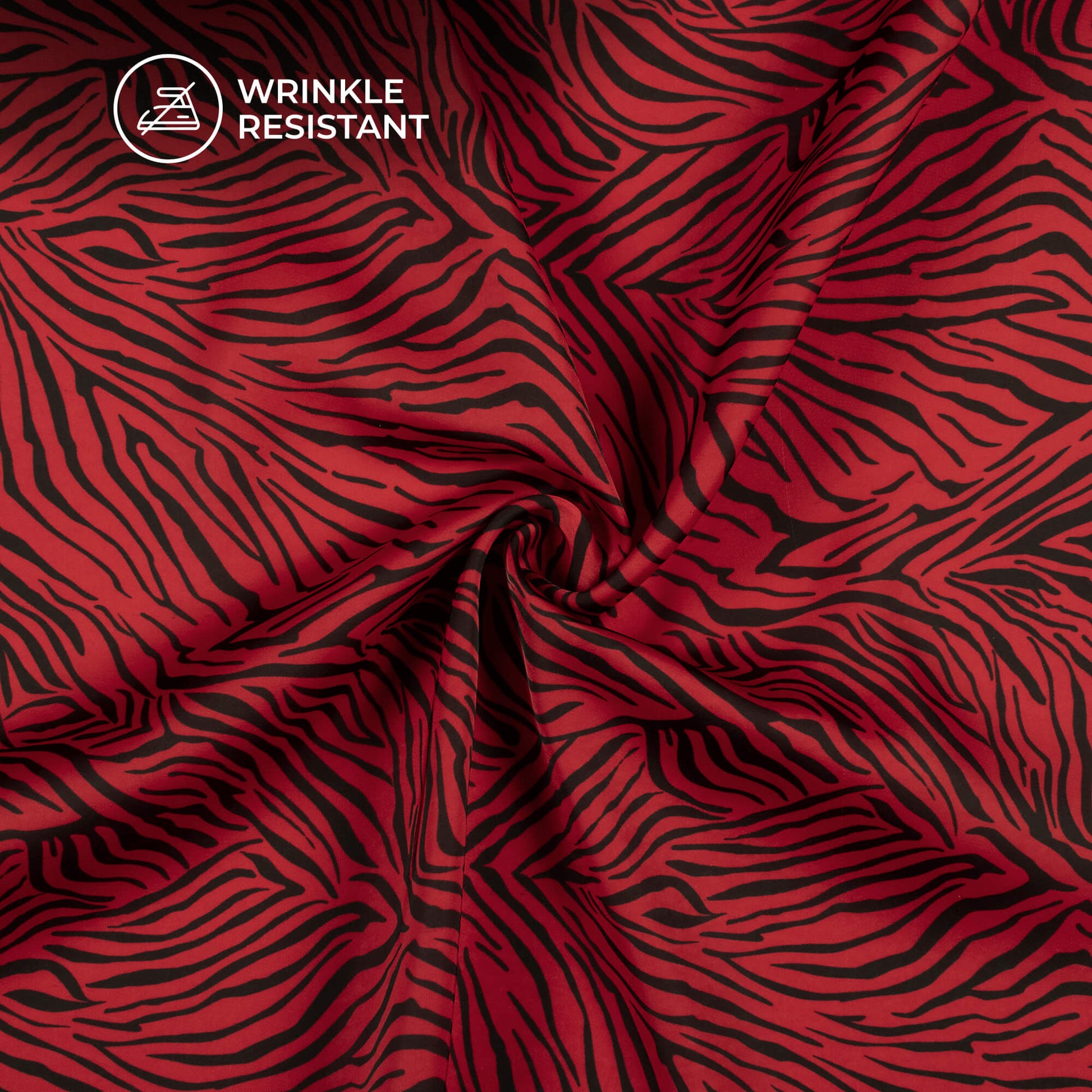 Vermilion Red Animal Digital Print Imported Satin Fabric