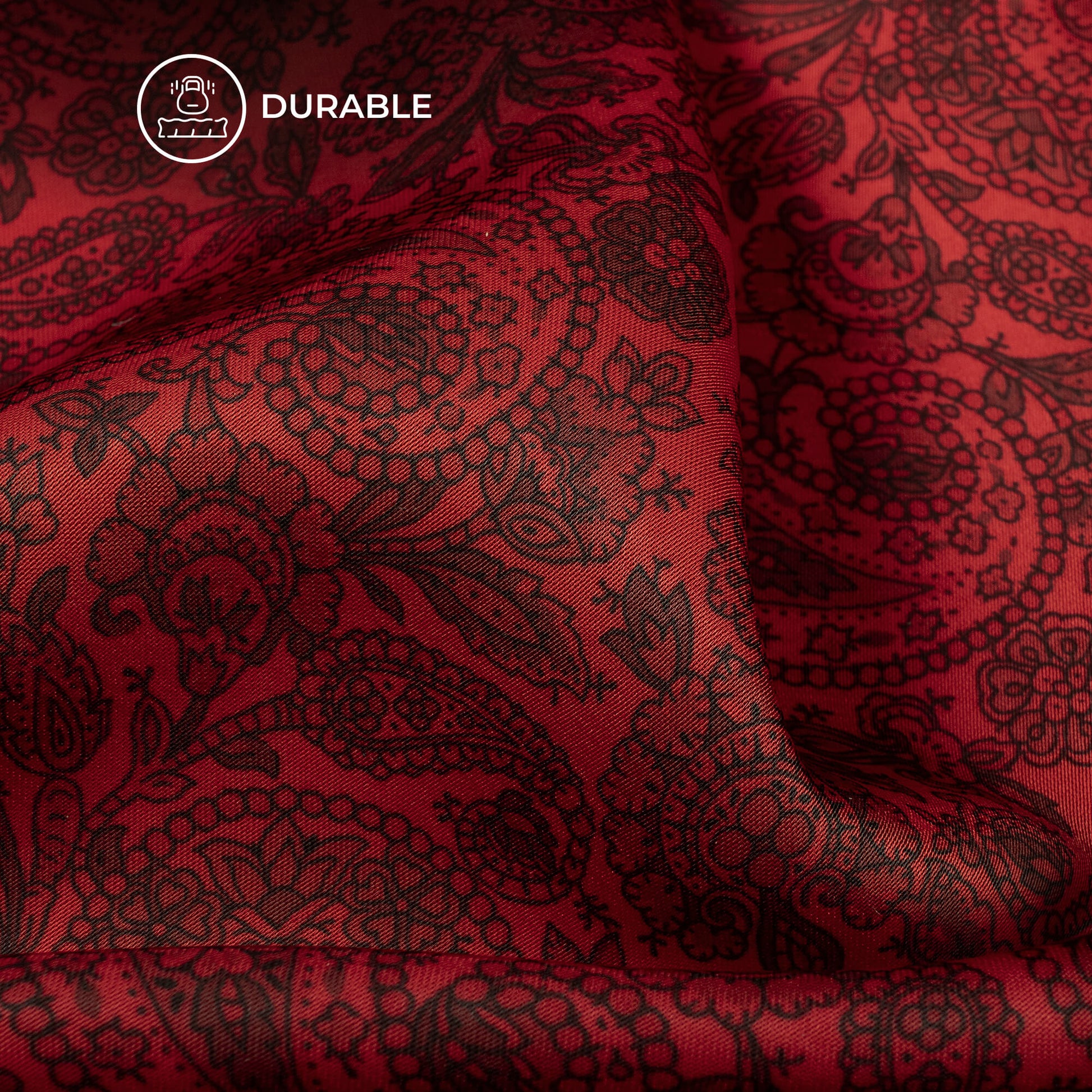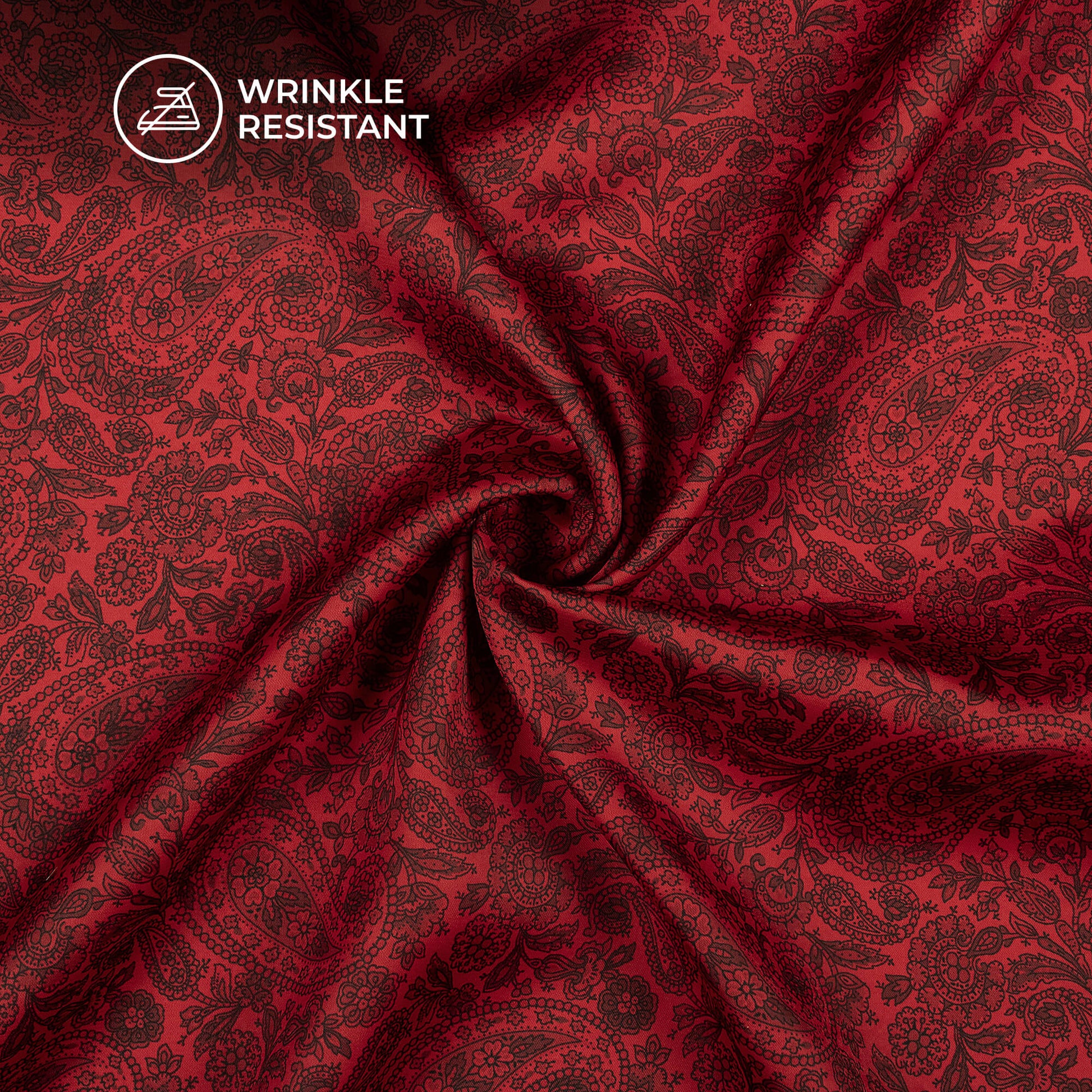 Vermilion Red Paisley Digital Print Imported Satin Fabric
