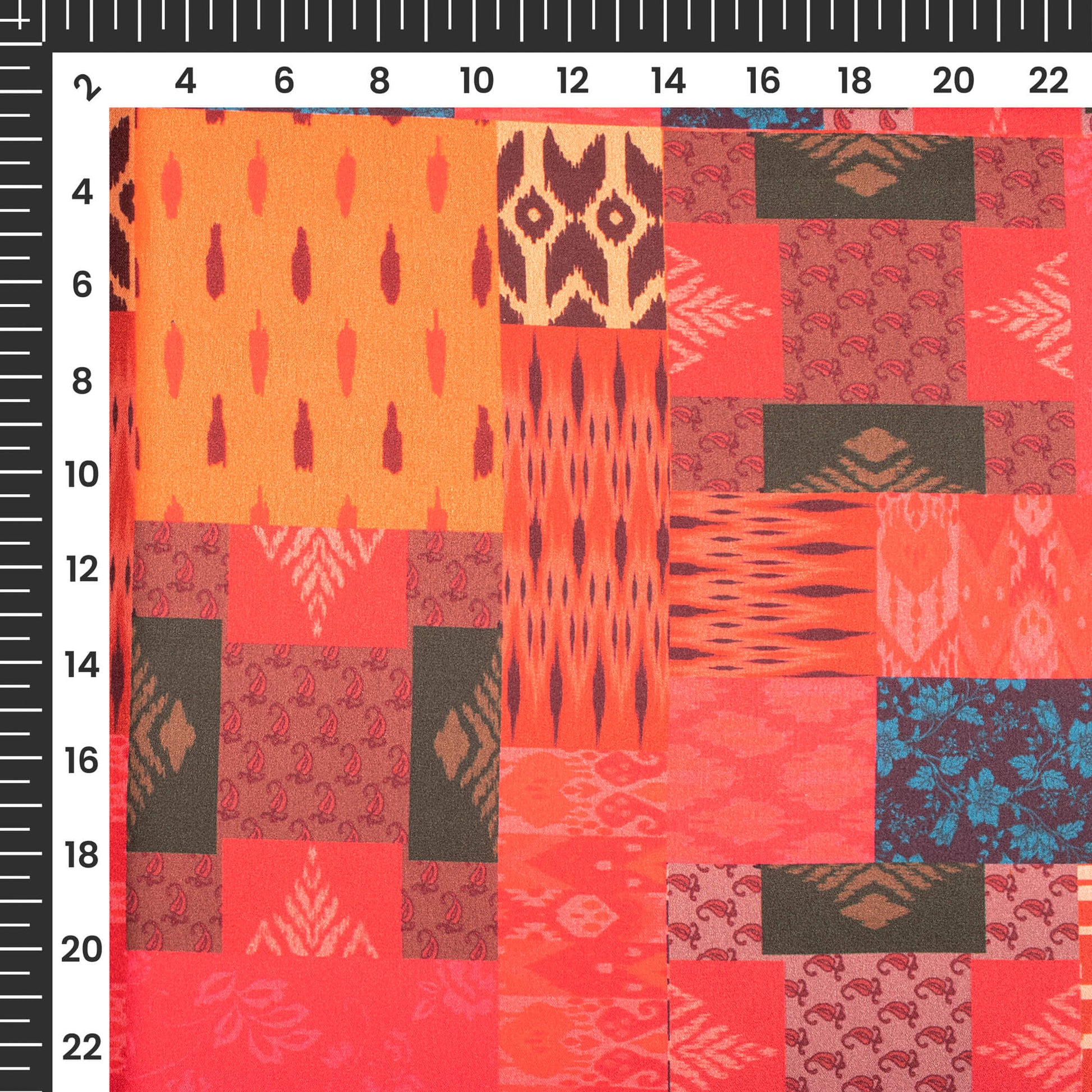 Vermillion Red And Balck Geometric Digital Print Japan Satin Fabric