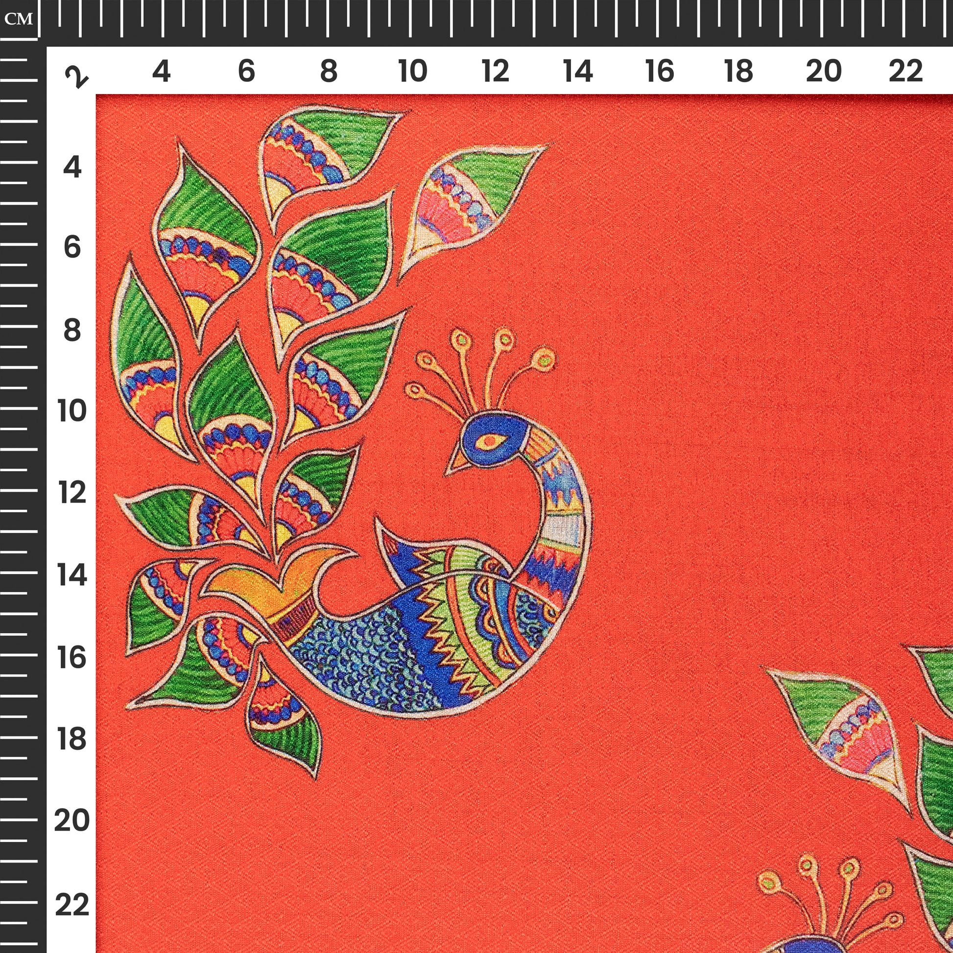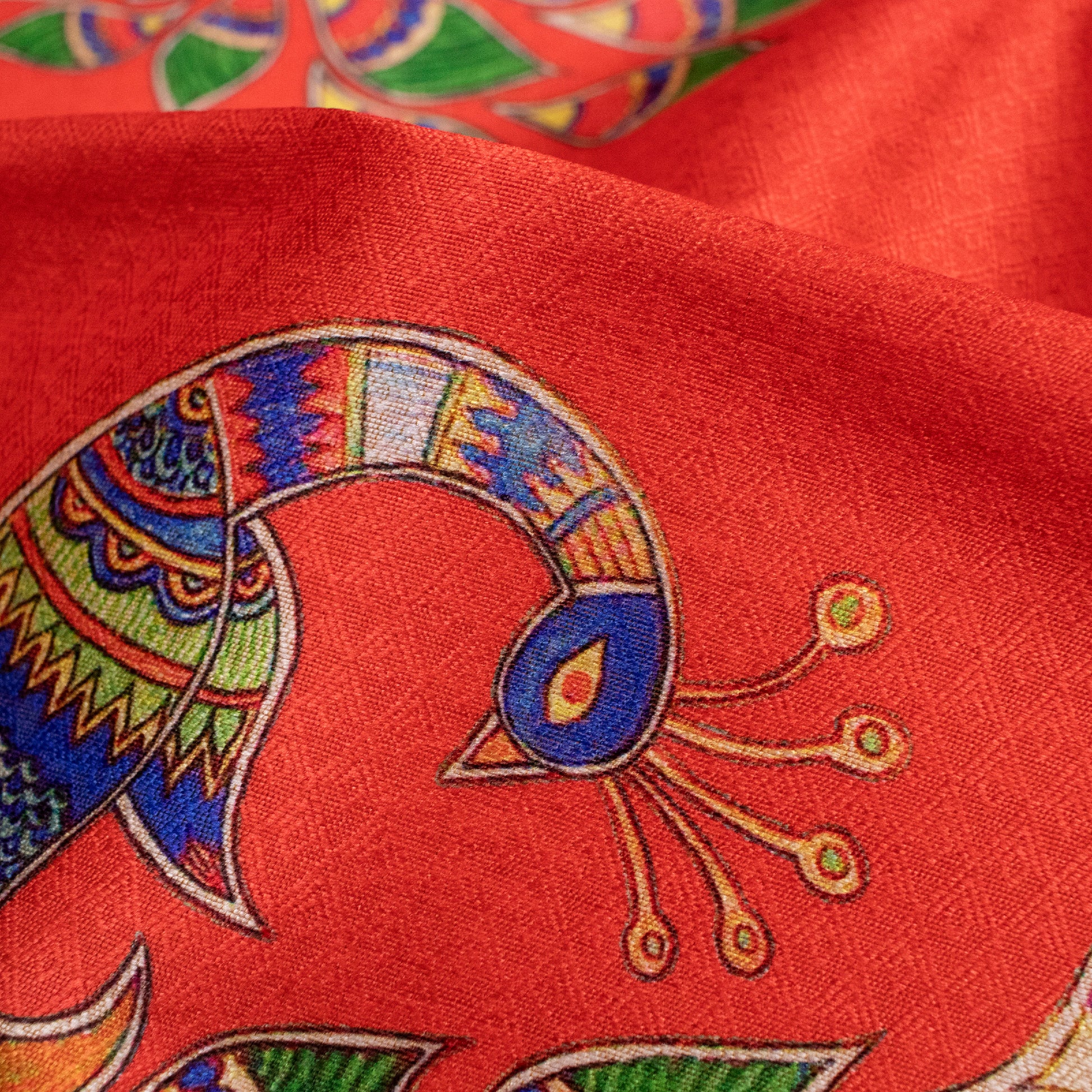 Vermillon Red Madhuvanii Jacquard Booti Art Silk Fabric (Width 56 Inches)