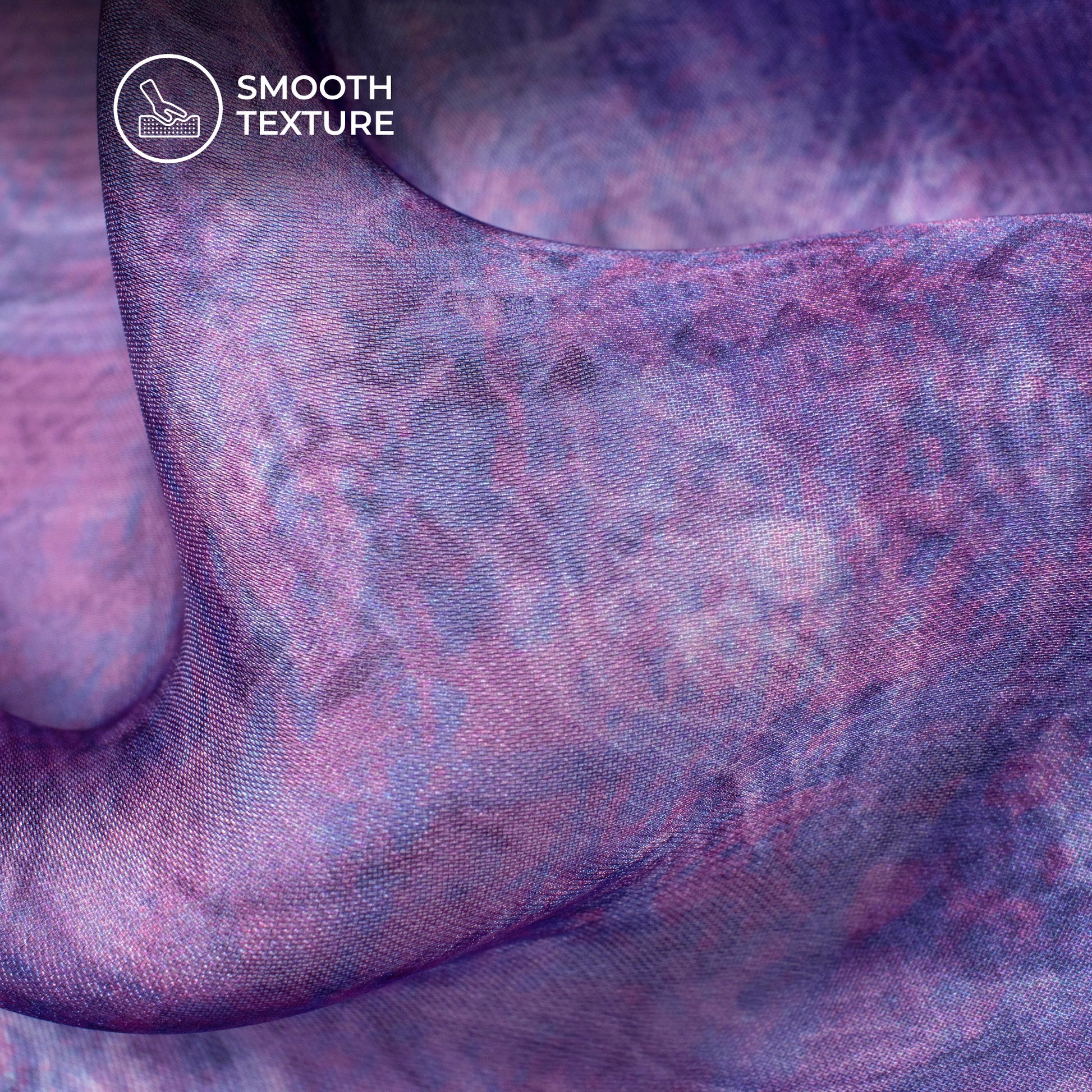 Violet Abstract Tye And Dye Digital Print Georgette Satin Fabric