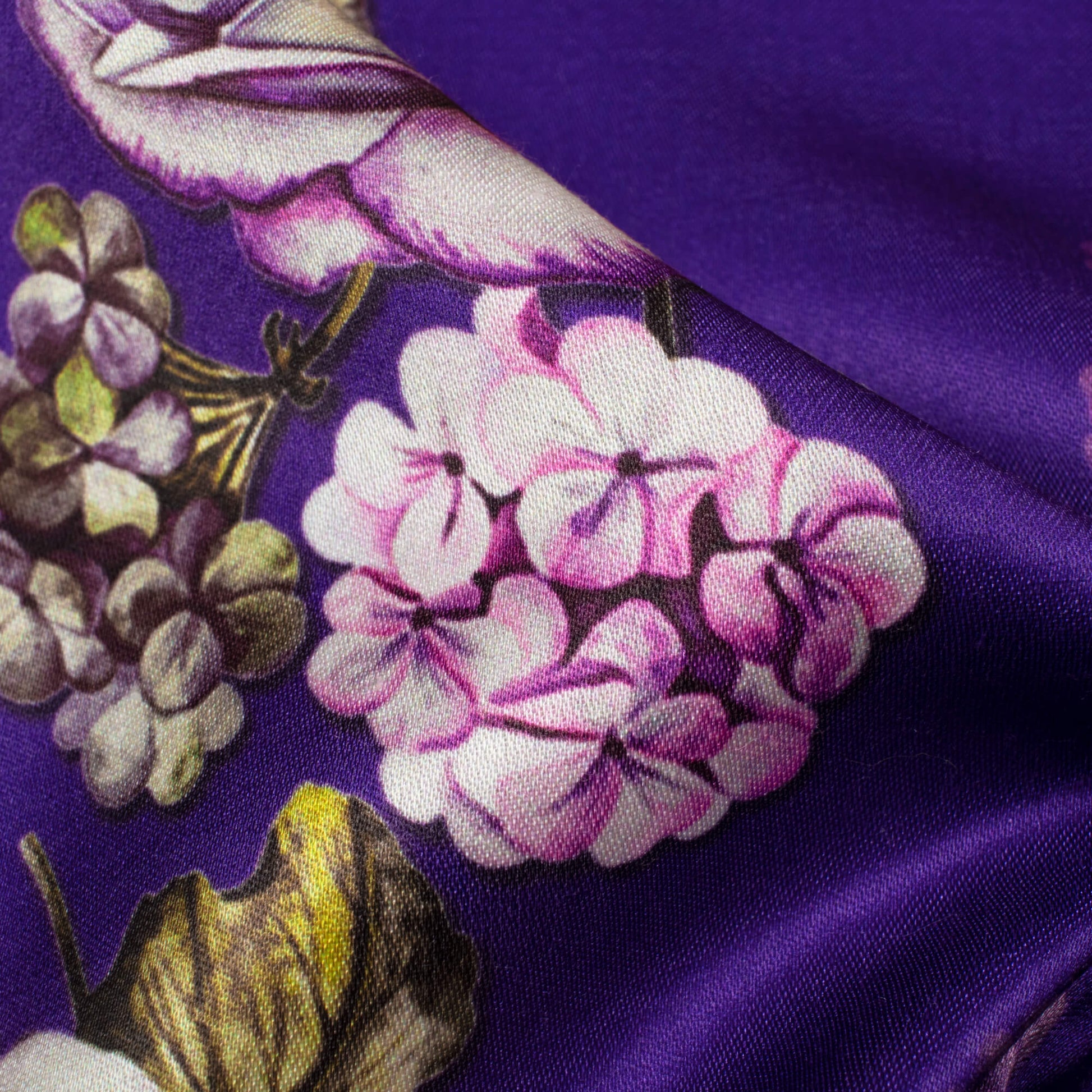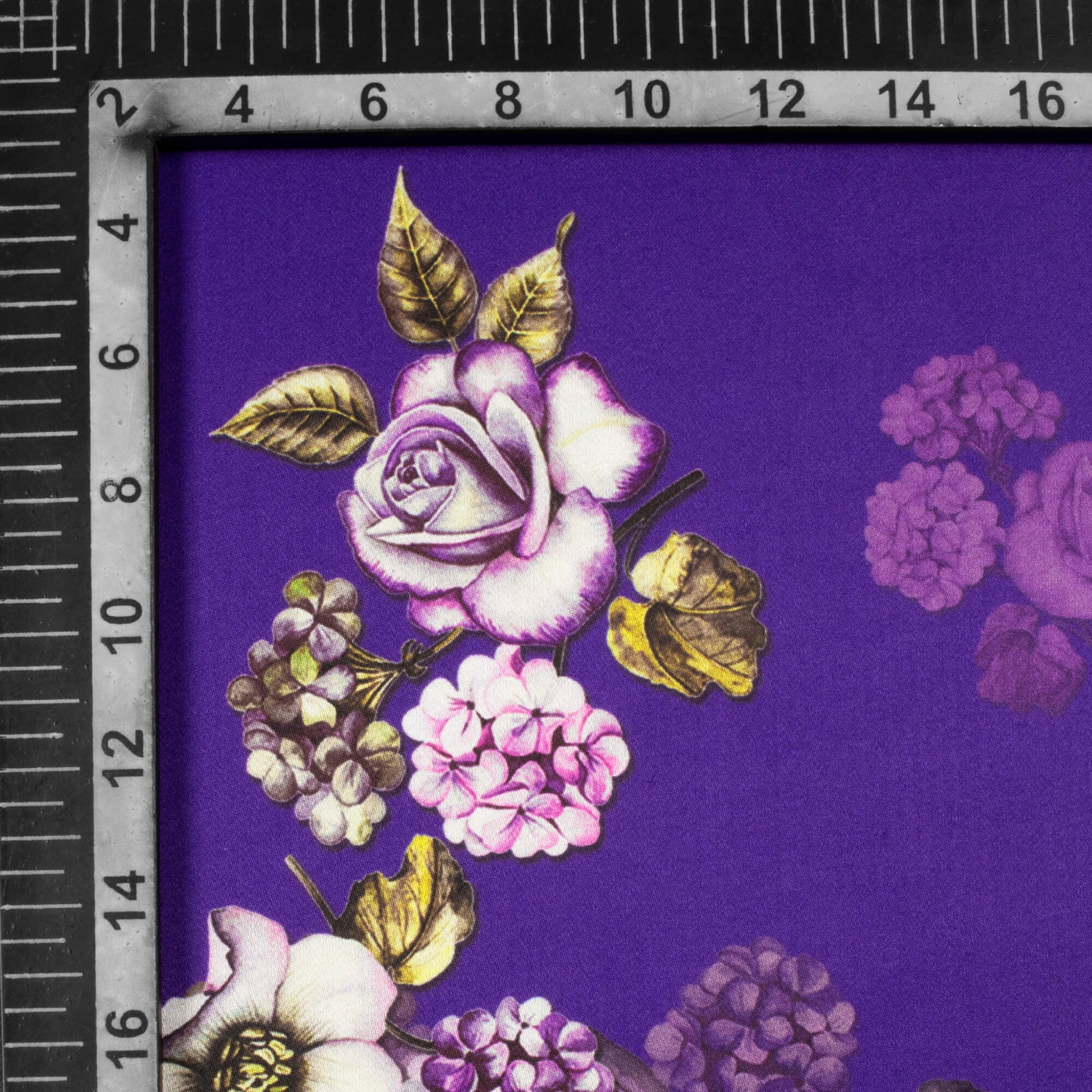 Violet Purple And White Floral Pattern Digital Print Premium Lush Satin Fabric