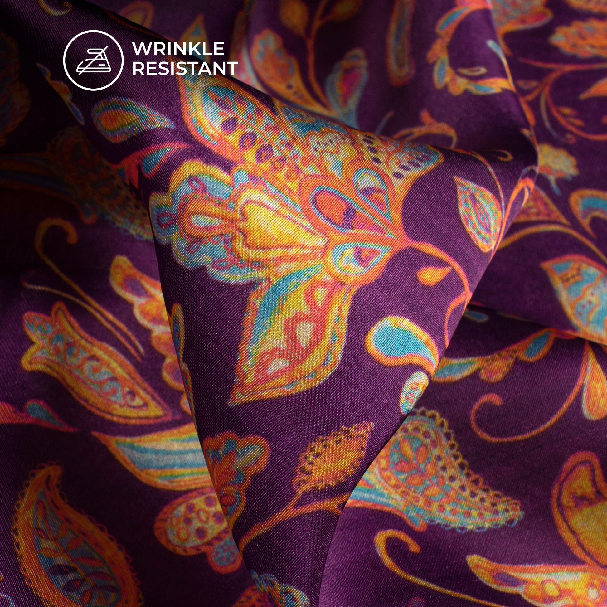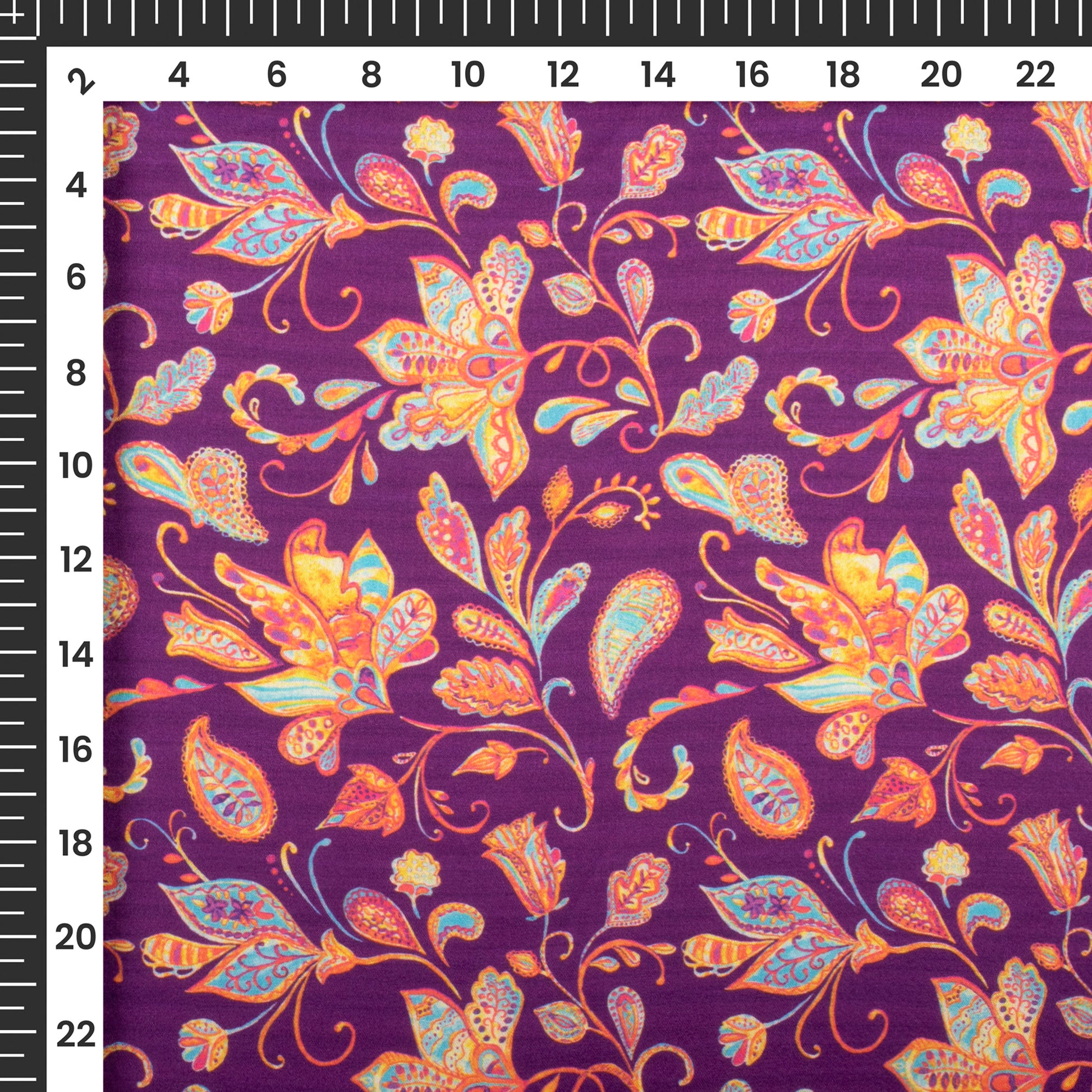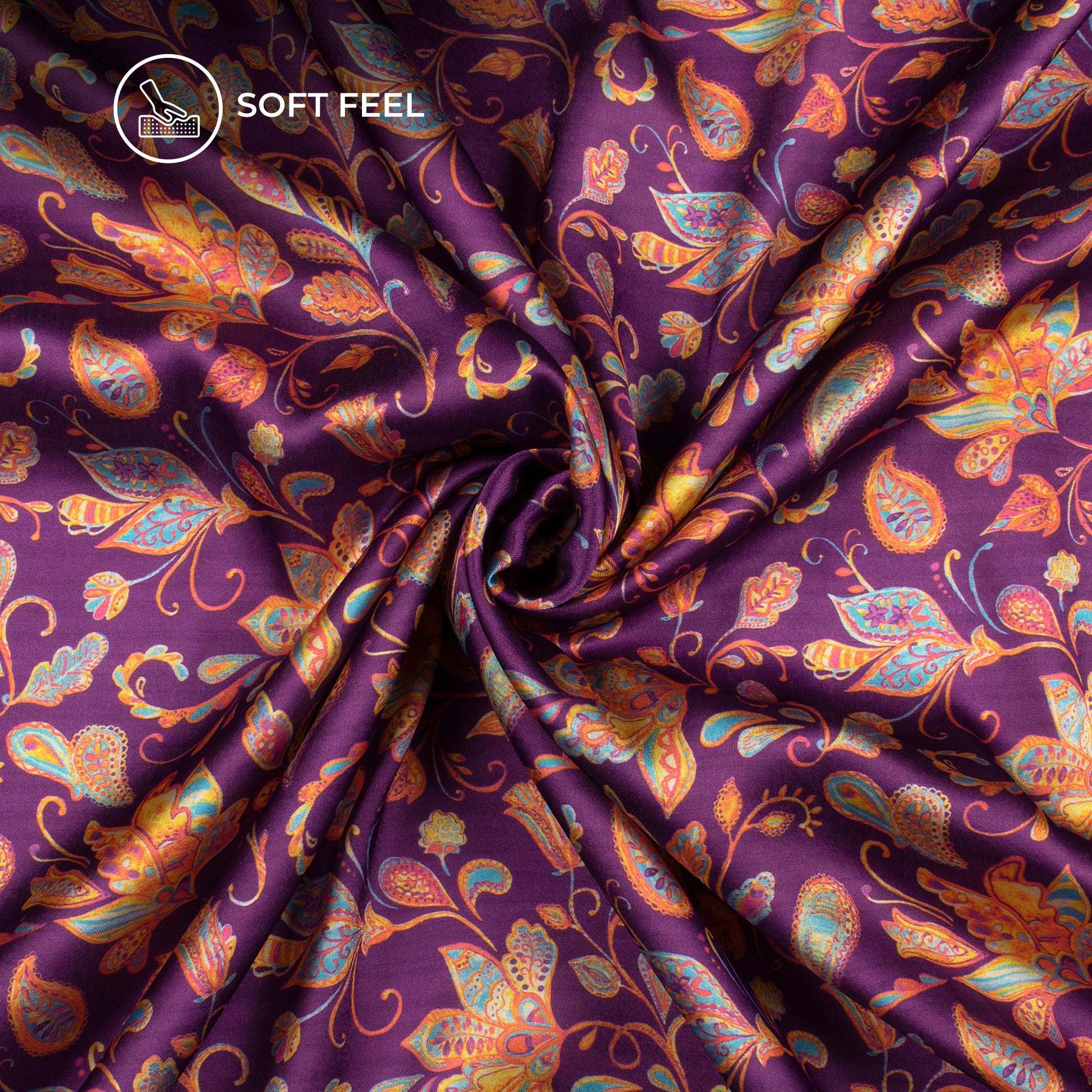 Violet Purple Floral Digital Print Japan Satin Fabric