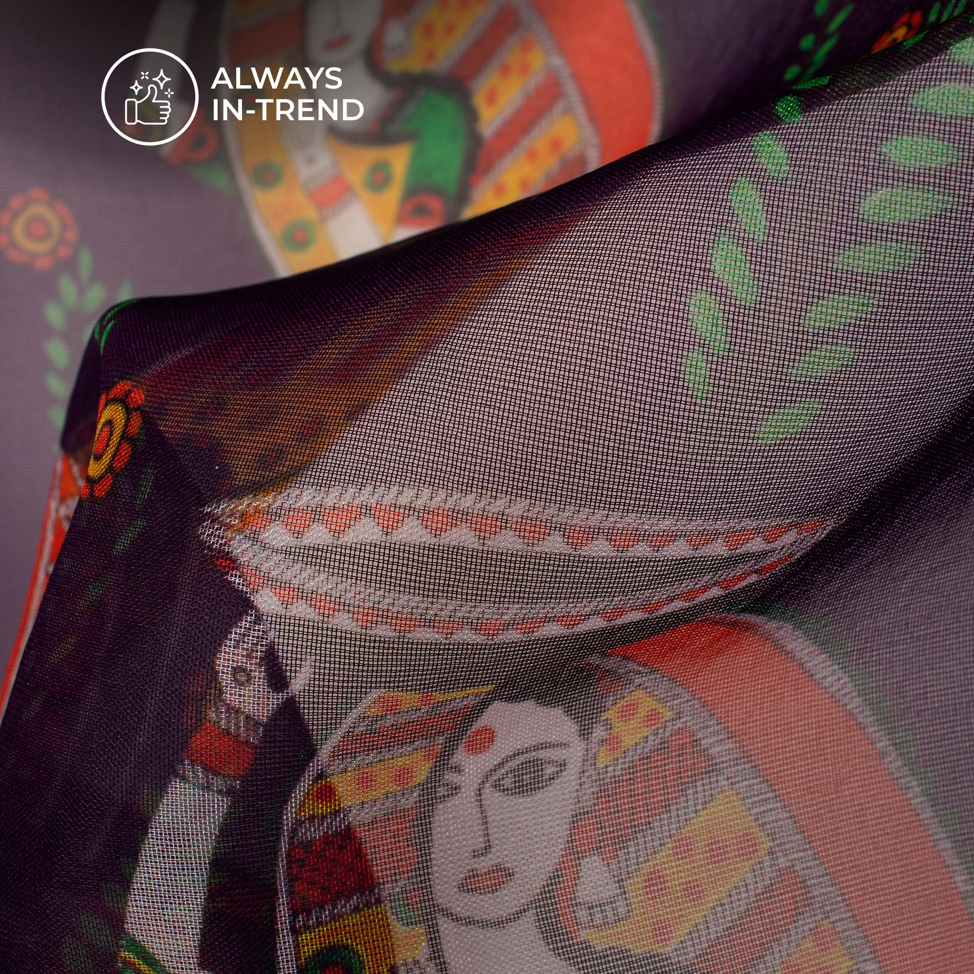 Violet Purple Madhuvanii Digital Print Matt Organza Fabric