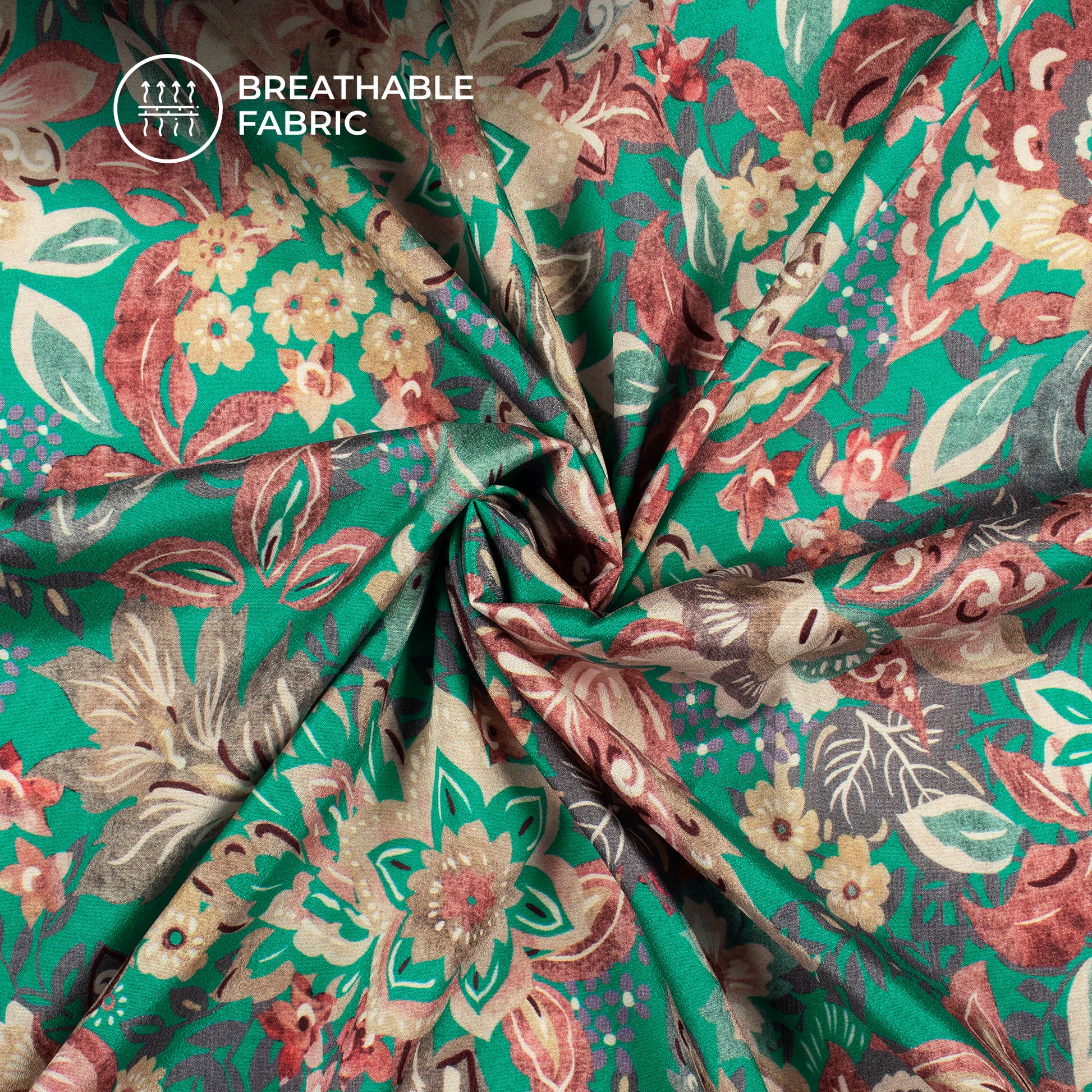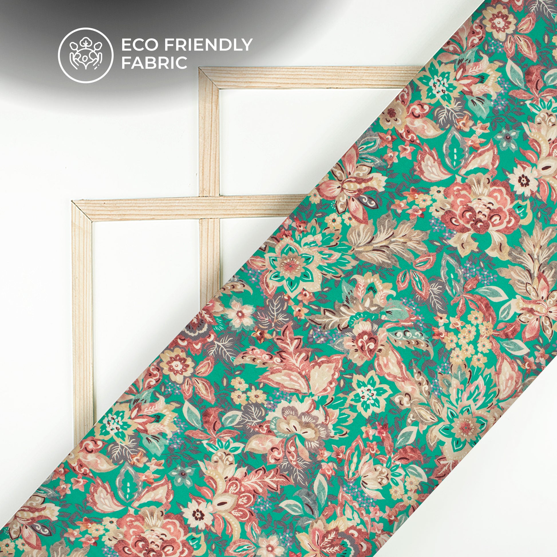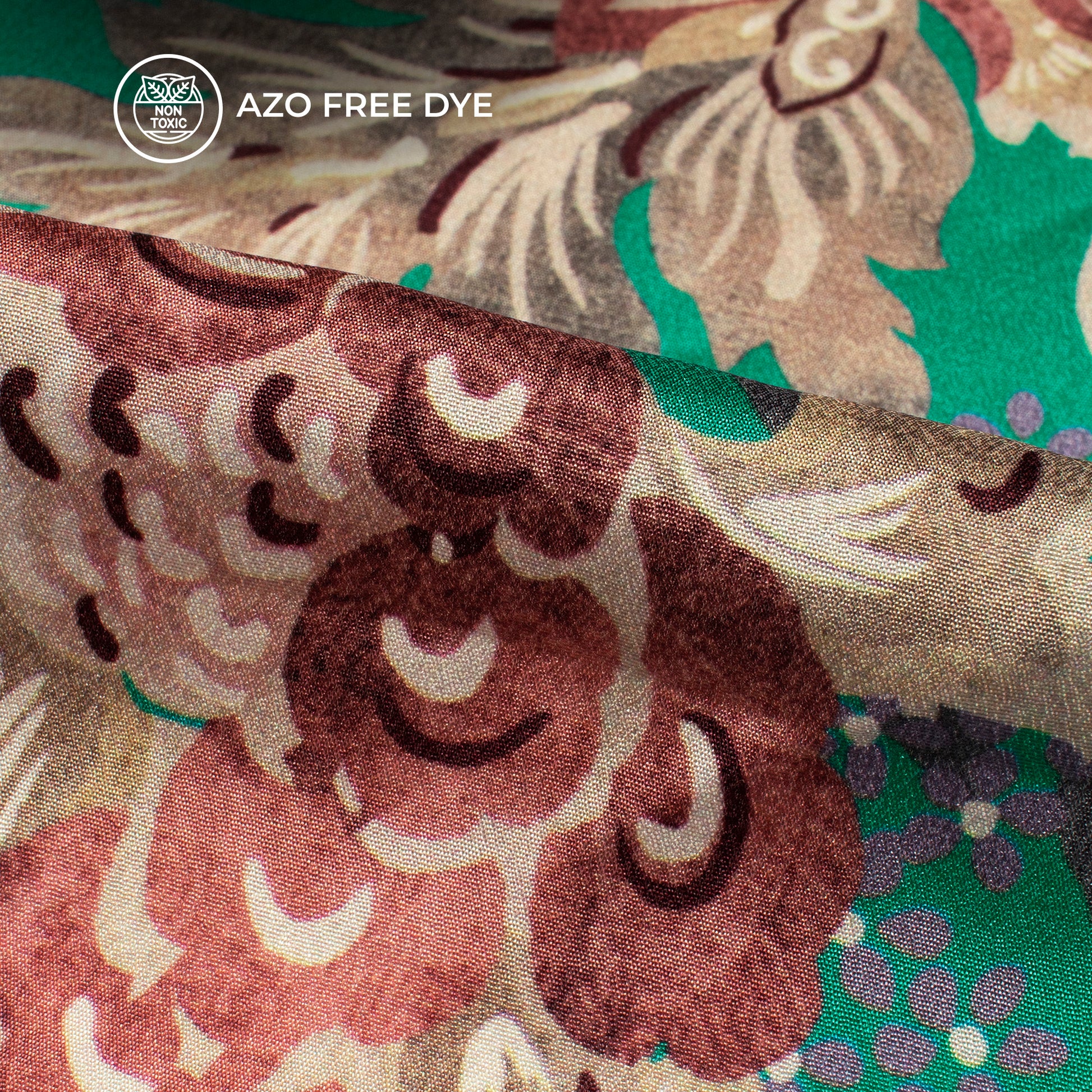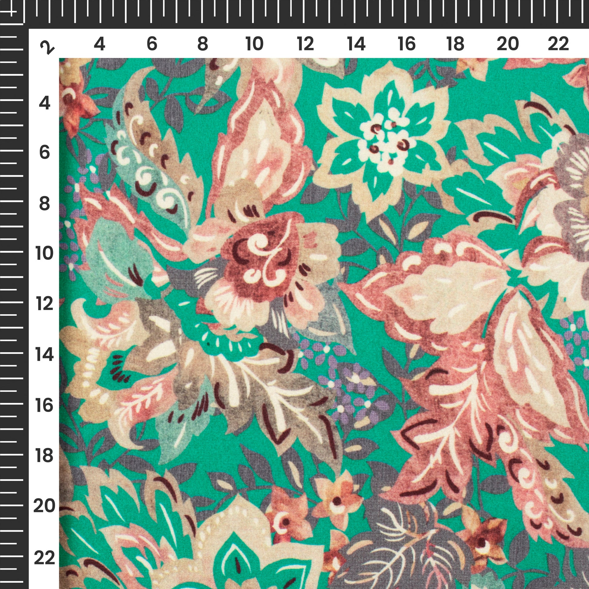Viridian Green Floral Digital Print Crepe Silk Fabric