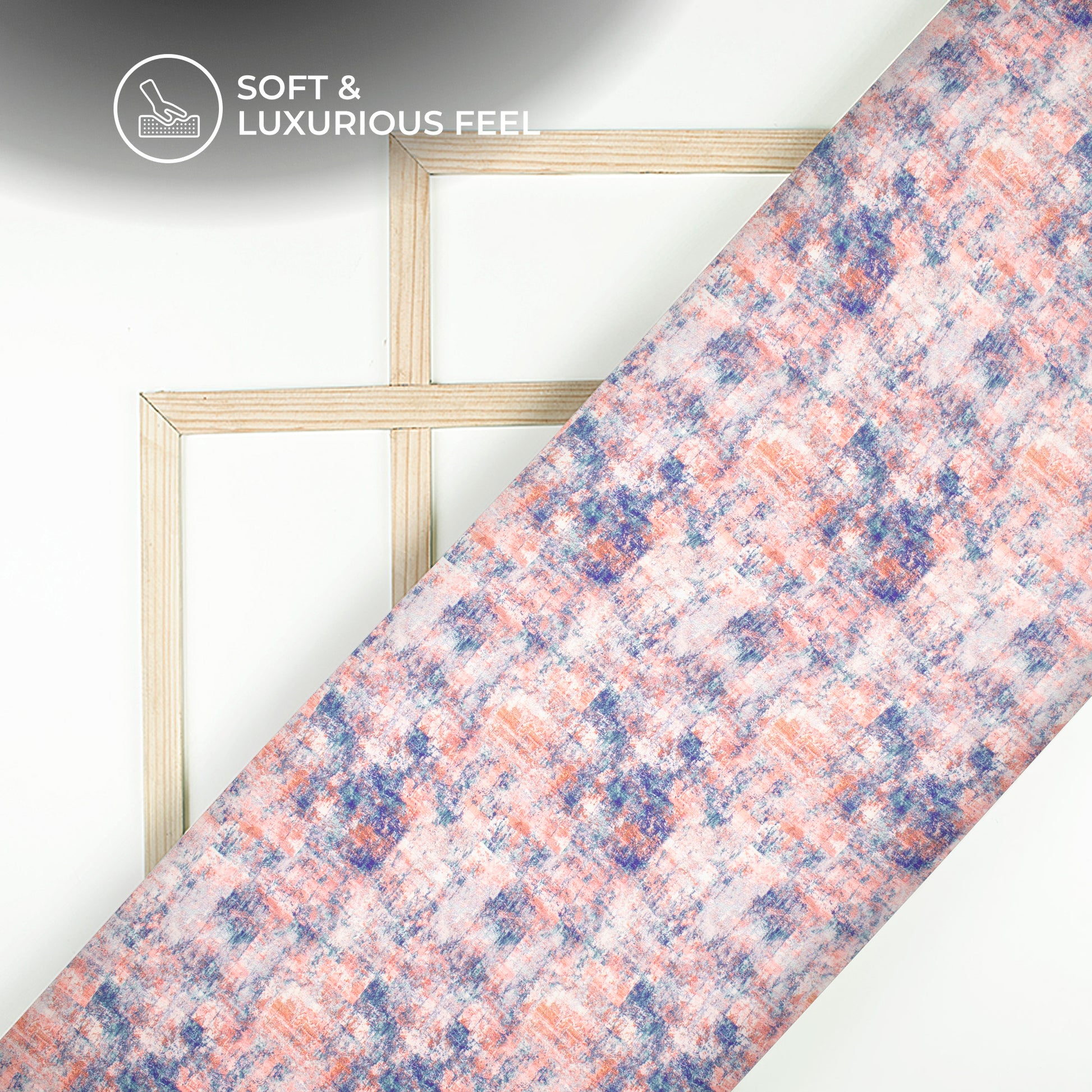 Watermelon Pink Abstract Tye And Dye Digital Print Chiffon Satin Fabric