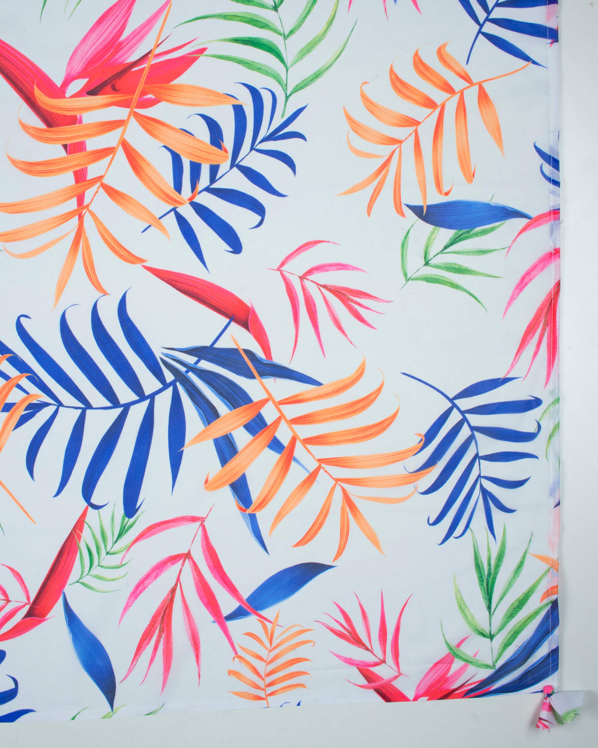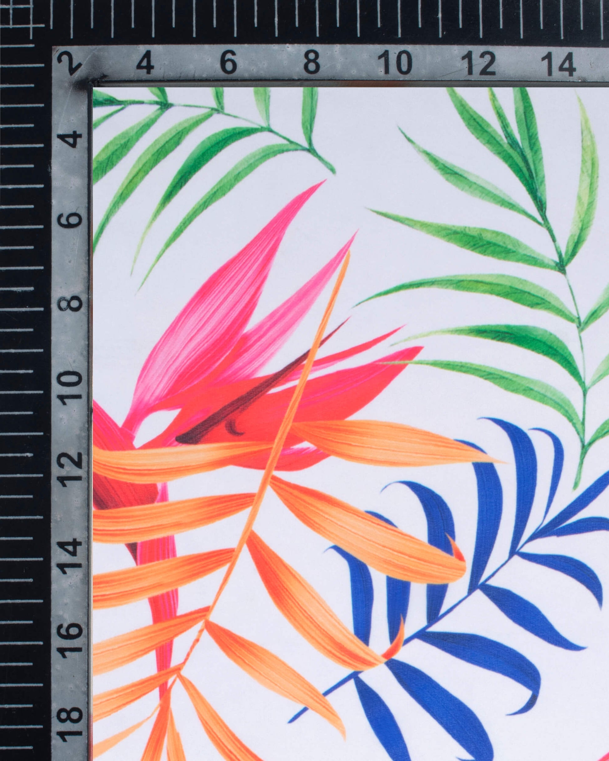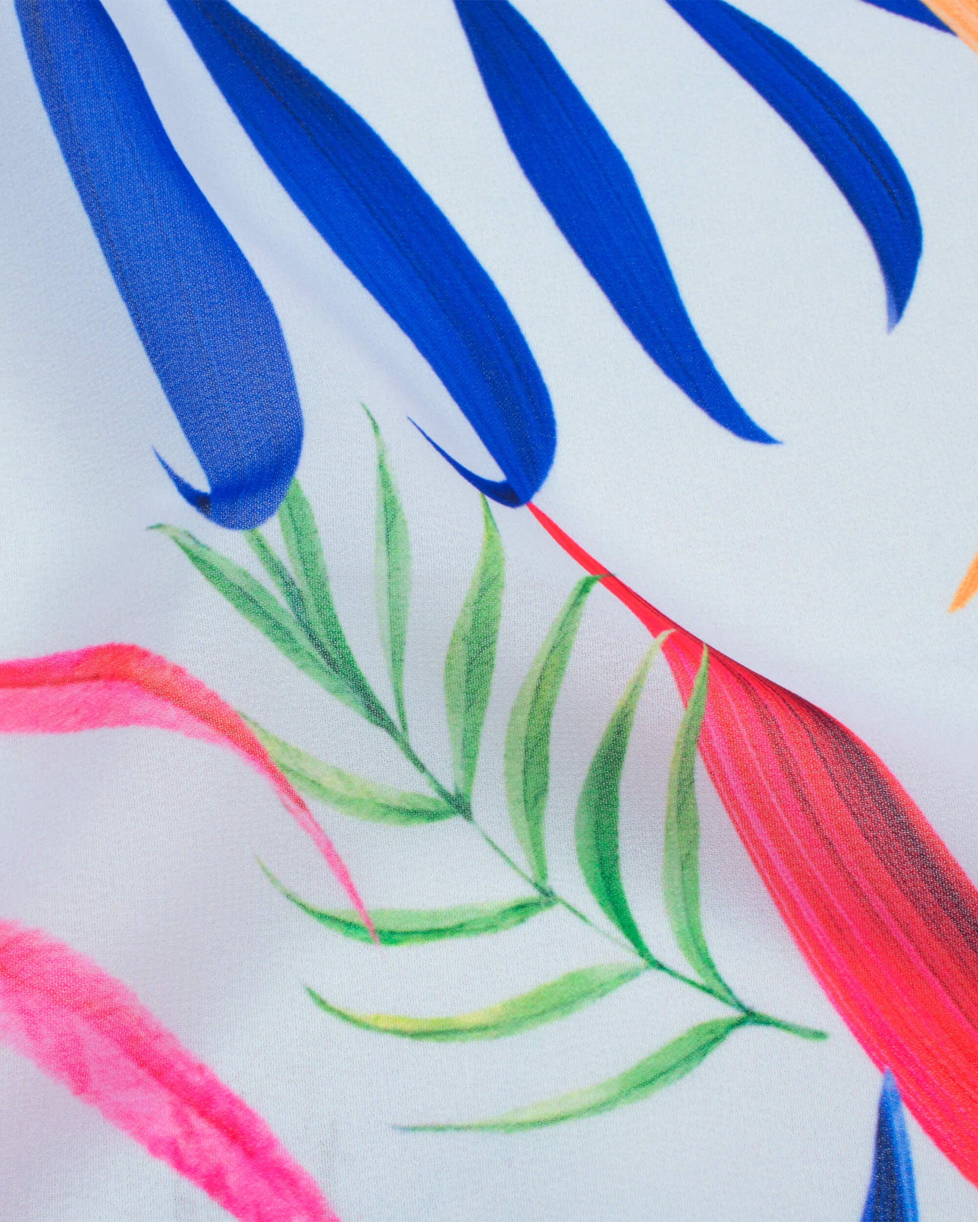 White And Azure Blue Tropical Pattern Digital Print Georgette Scarf