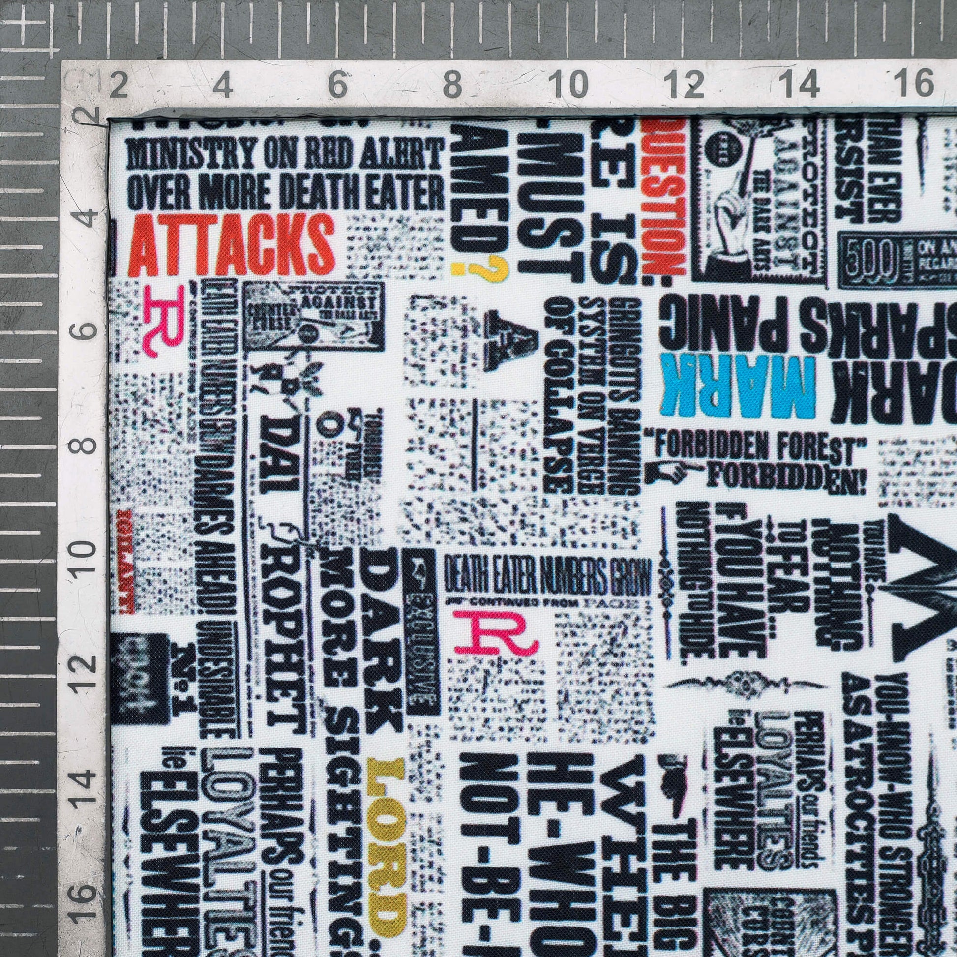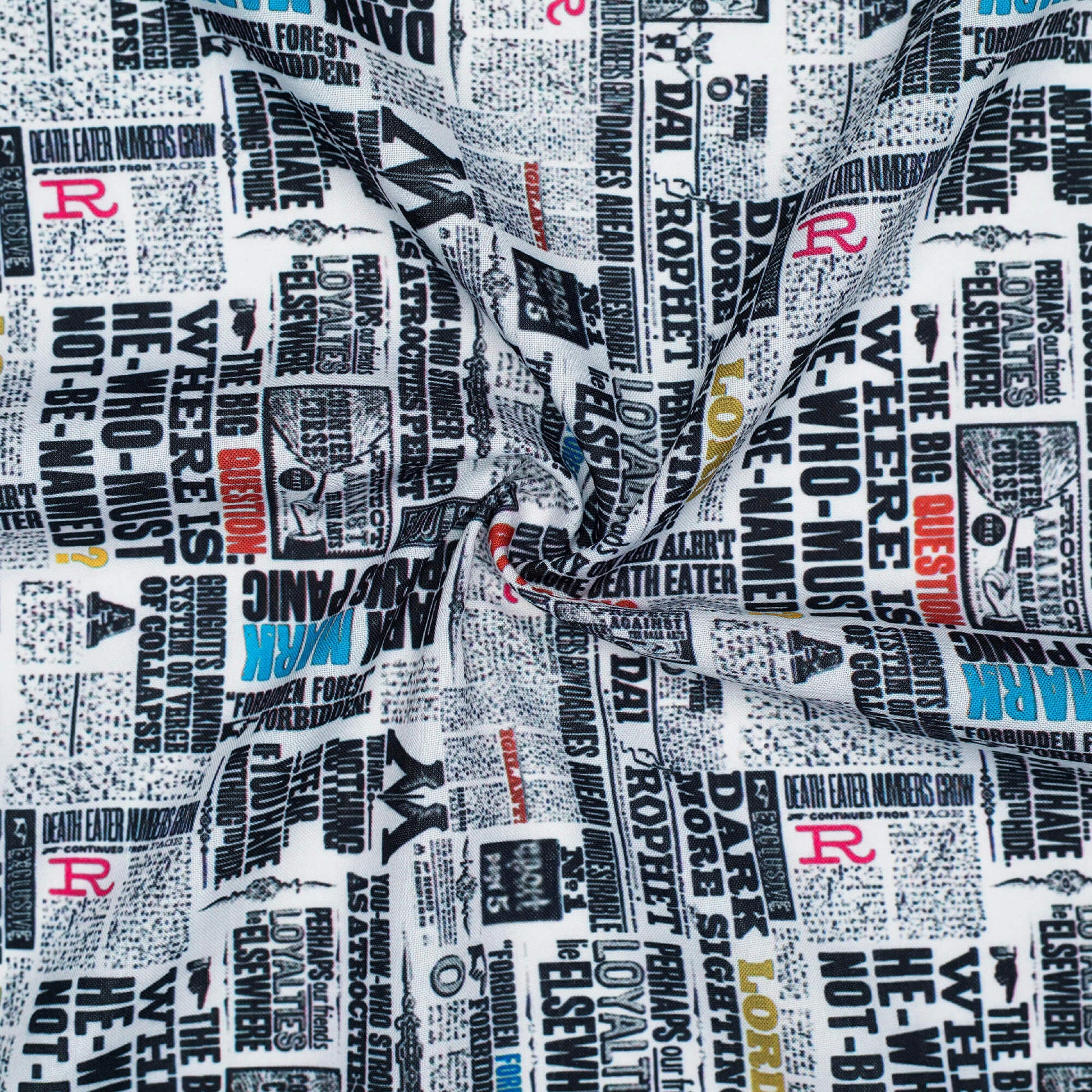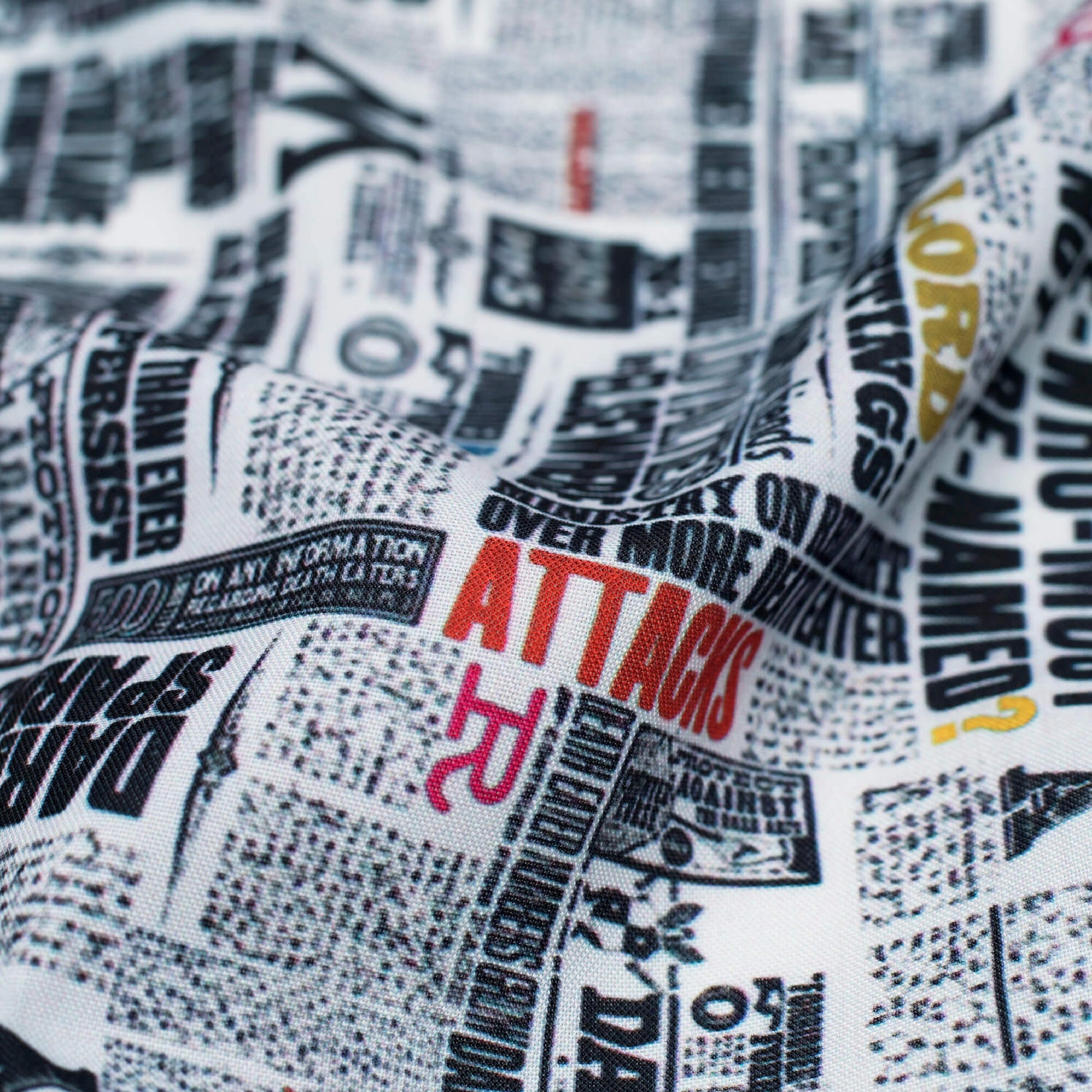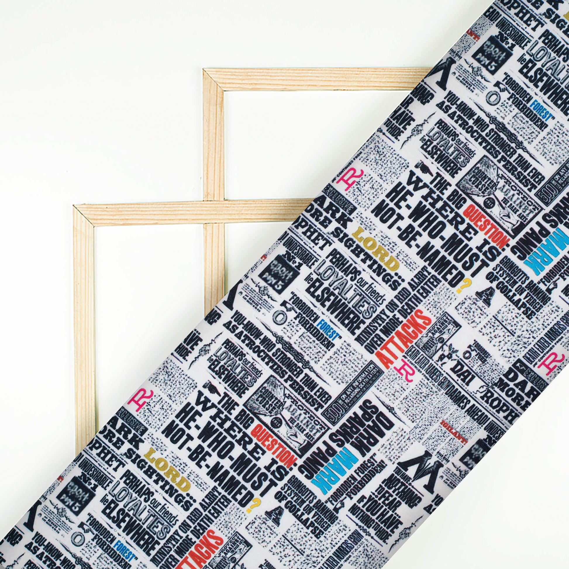 White And Black Newspaper Pattern Digital Print Rayon Fabric