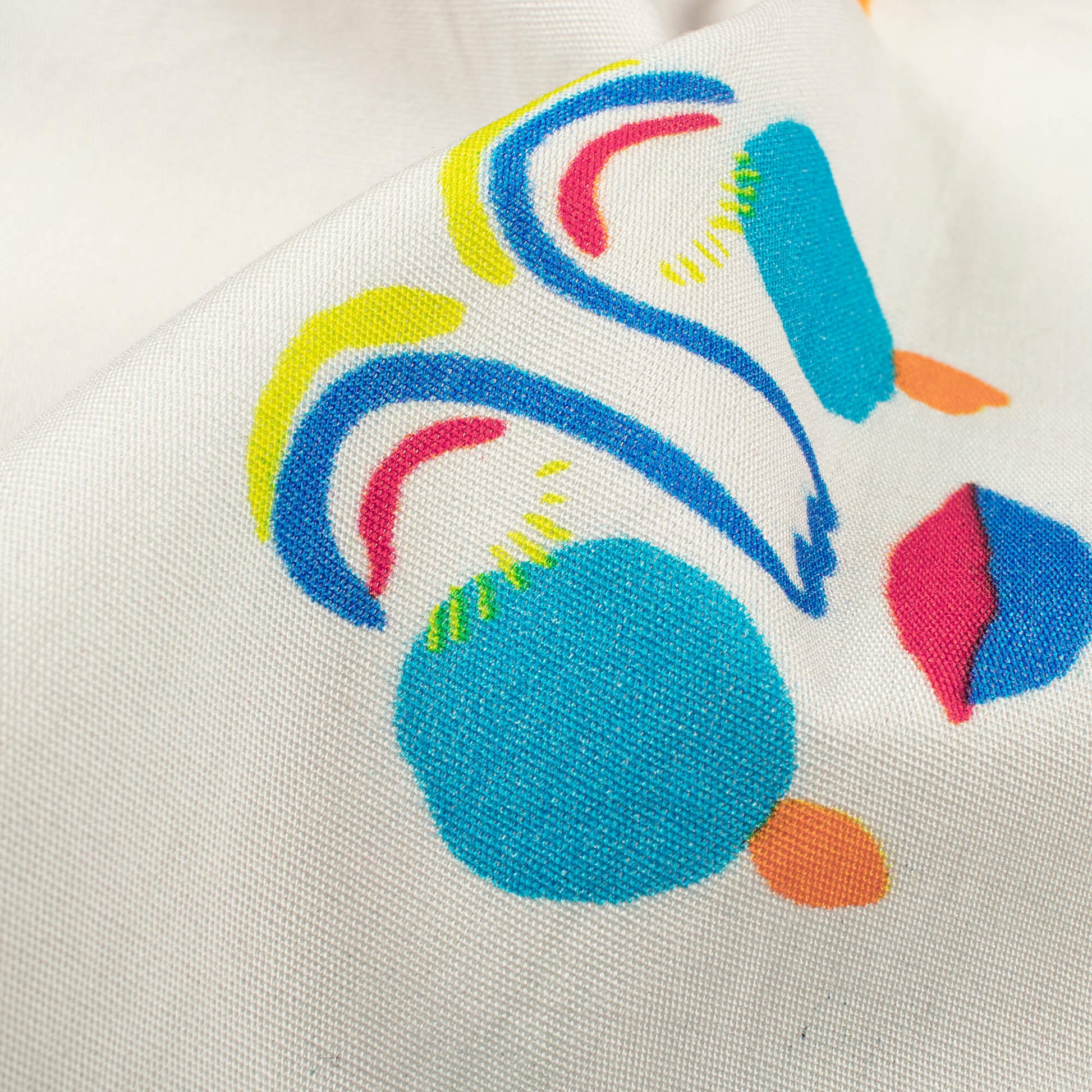 White And Blue Geometric Digital Print Poly Linen Fabric