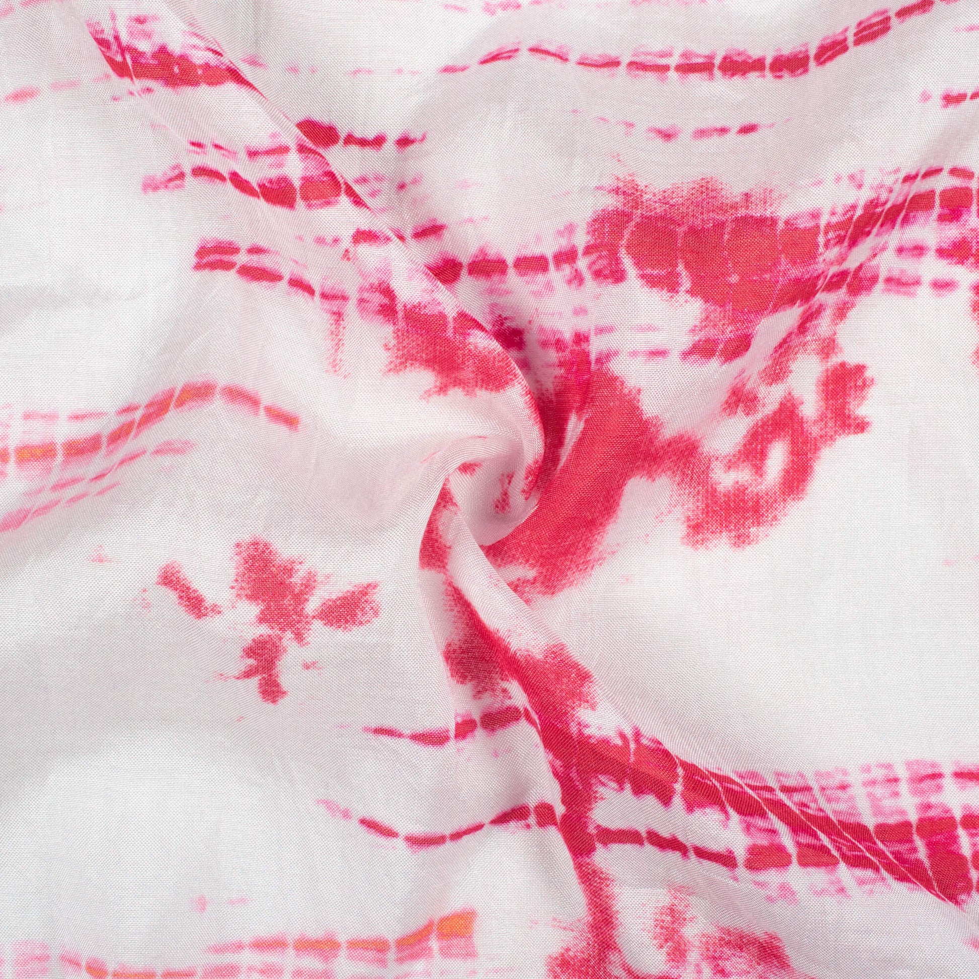 White And Dark Red Shiiborii Pattern Digital Print Viscose Muslin Fabric