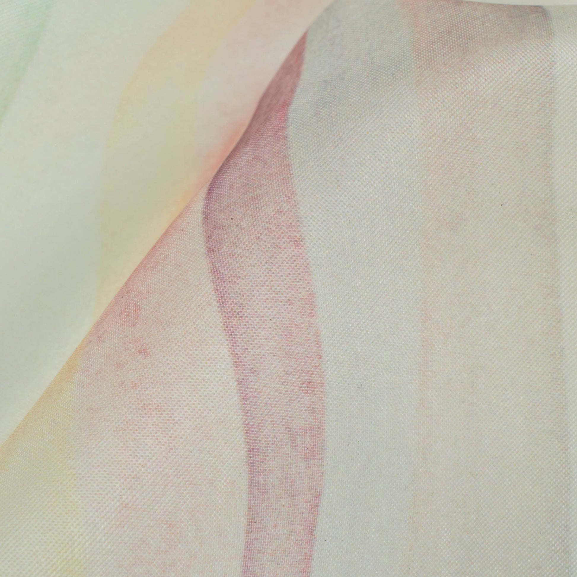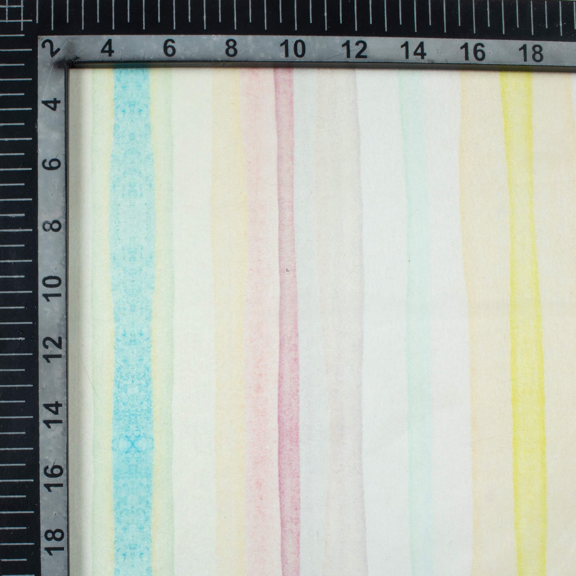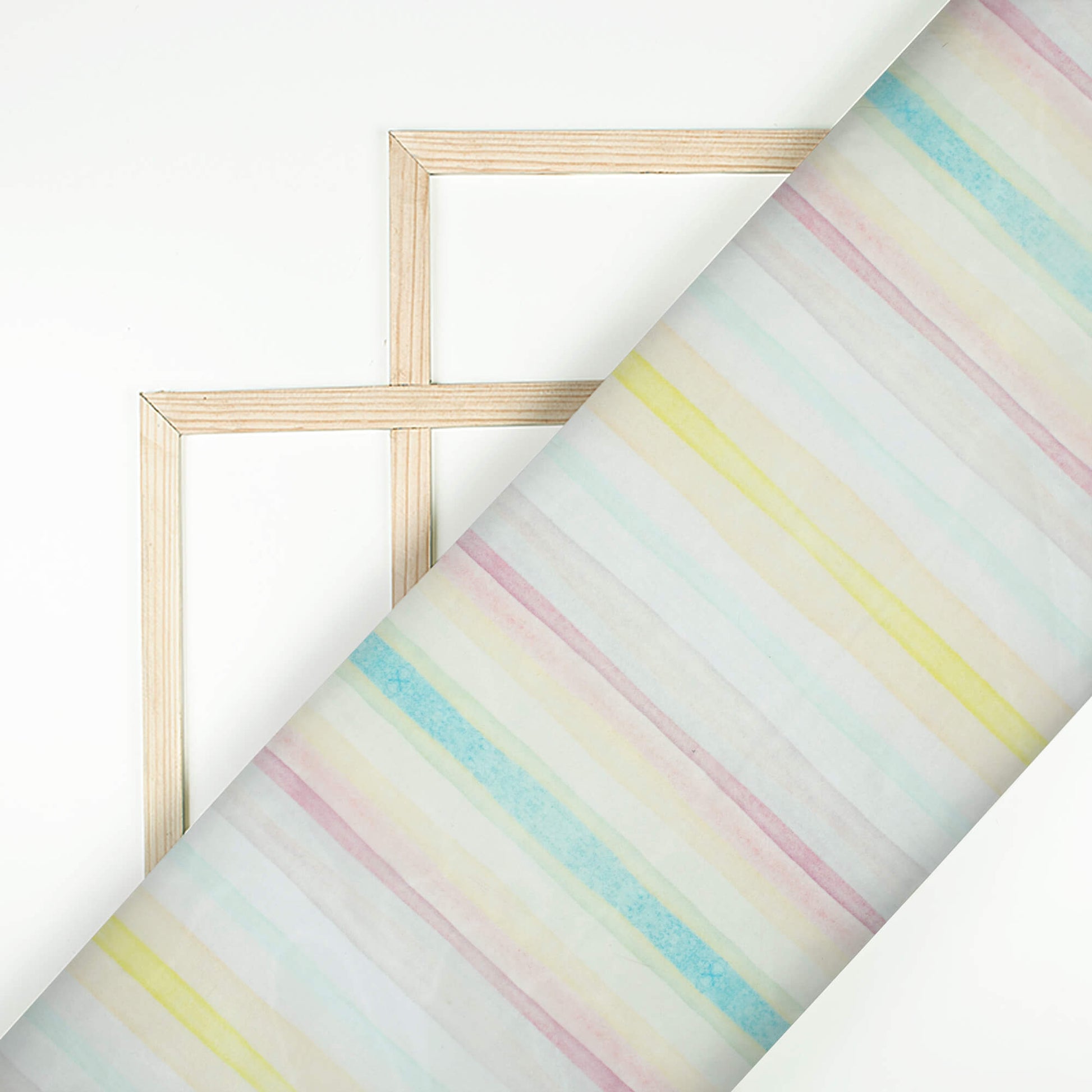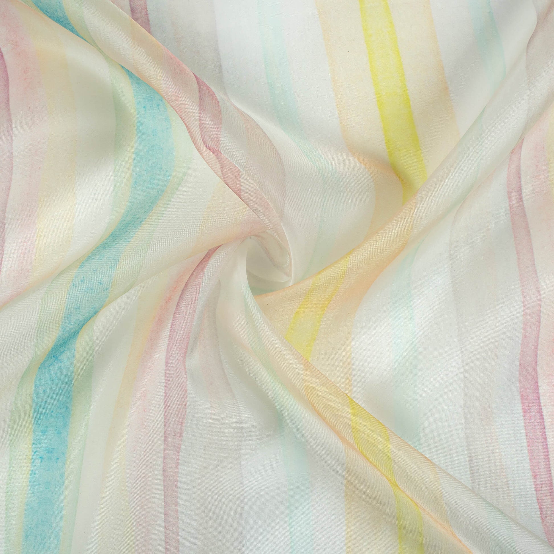 White And Lemon Yellow Stripes Pattern Digital Print Organza Satin Fabric