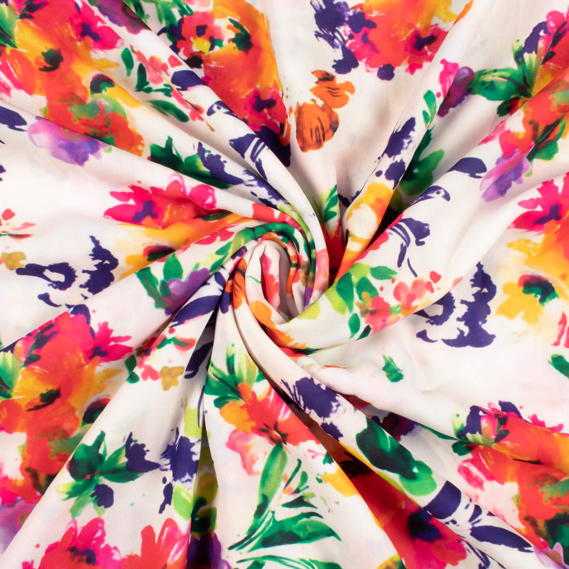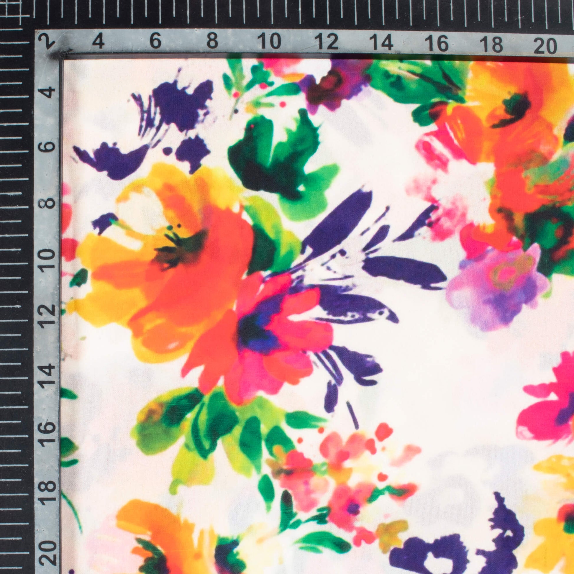 White And Mystic Pink Floral Pattern Ultra Premium Butter Crepe Fabric