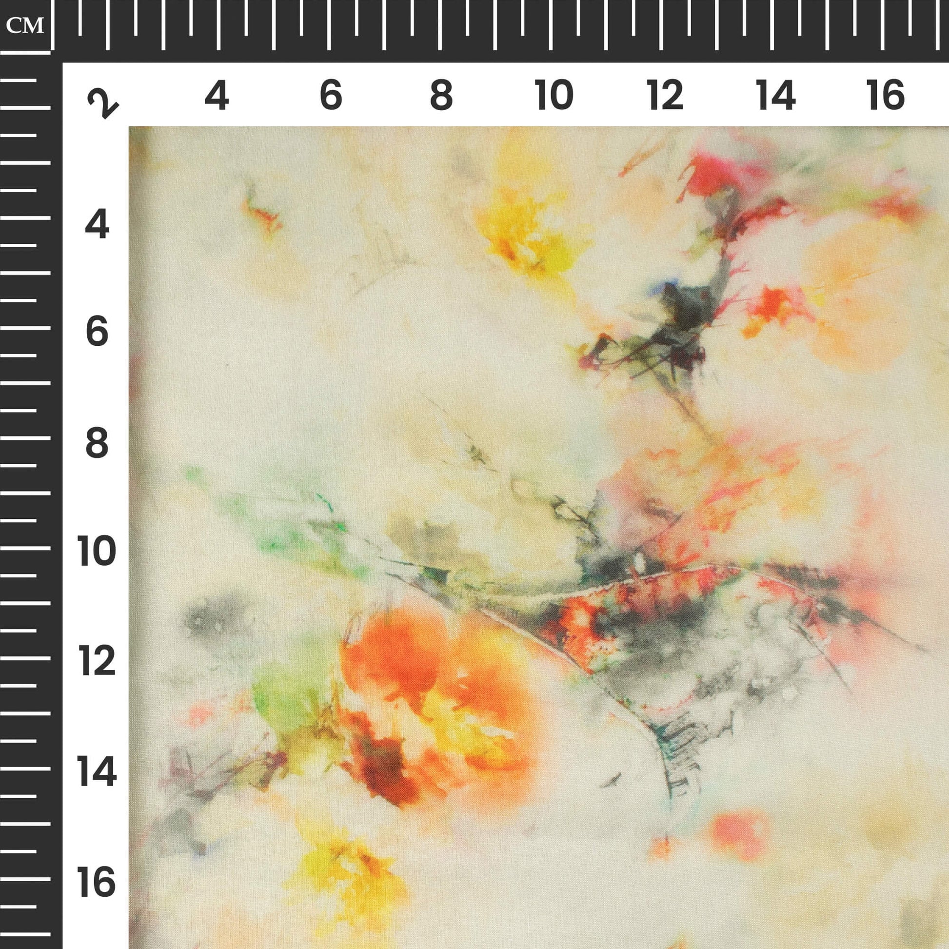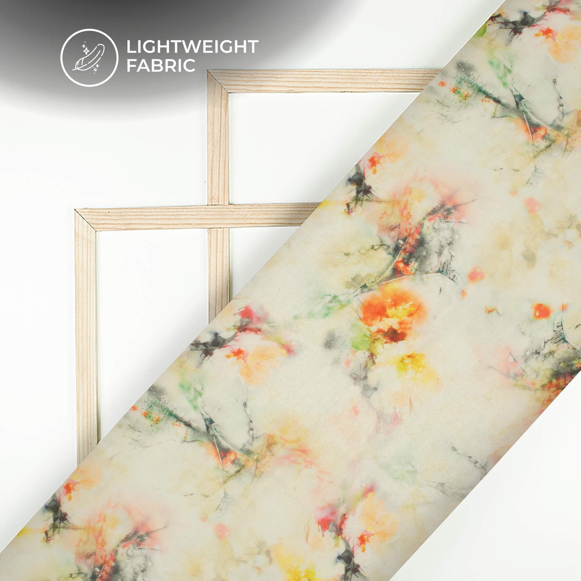 White And Orange Floral Printed Organza Satin Fabric