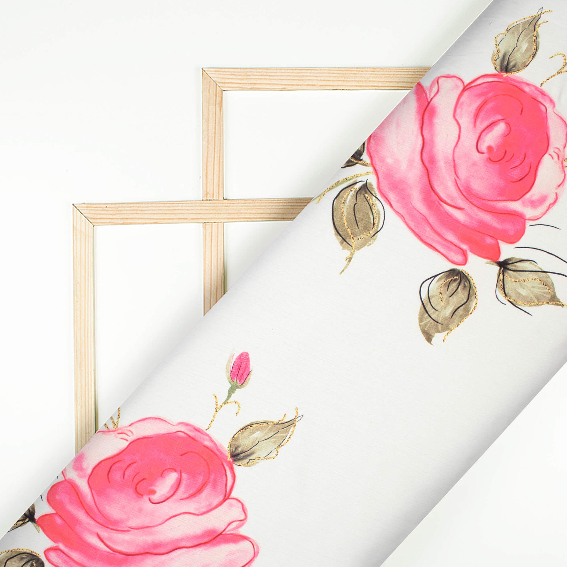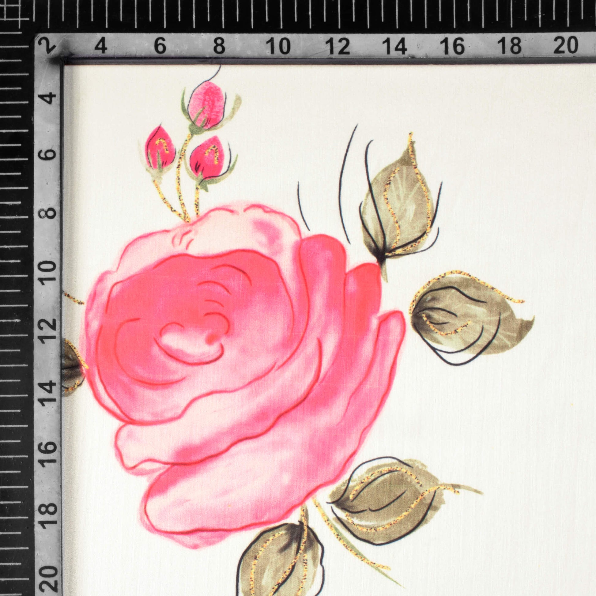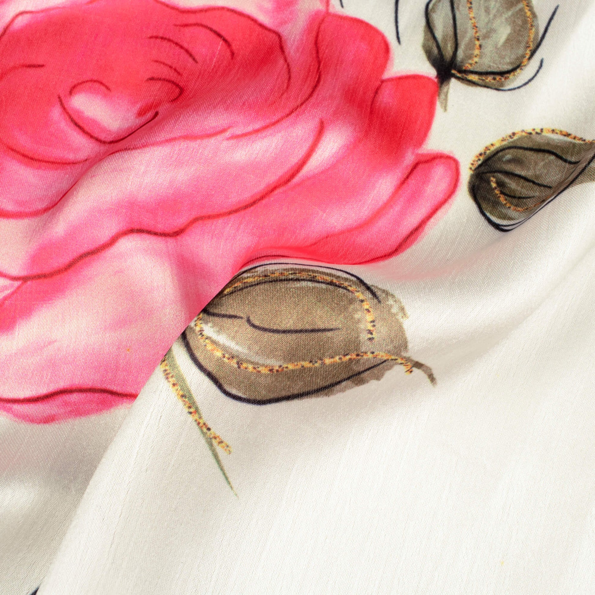 White And Punch Pink Floral Pattern Hand Paint Effect Digital Print Chiffon Satin Fabric